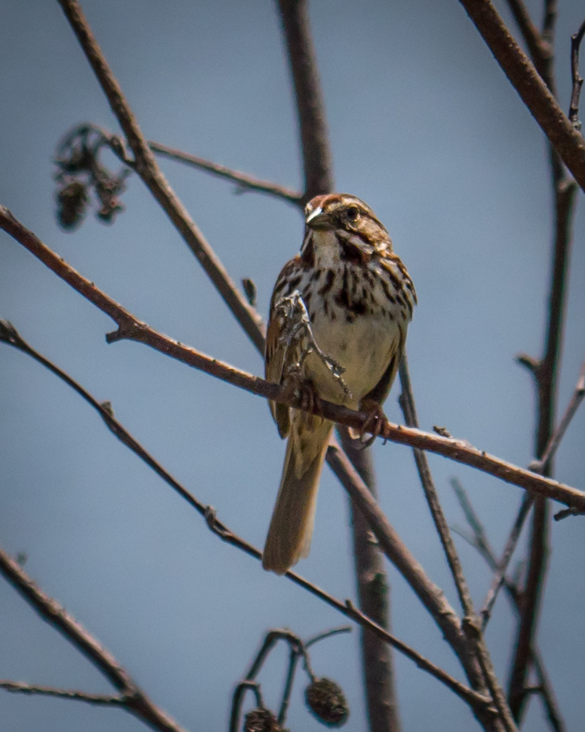 The streaky breast distinguishes it from the Chipping Sparrow and American Tree Sparrow.