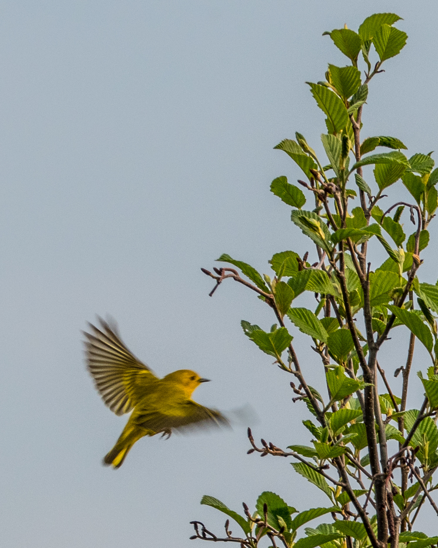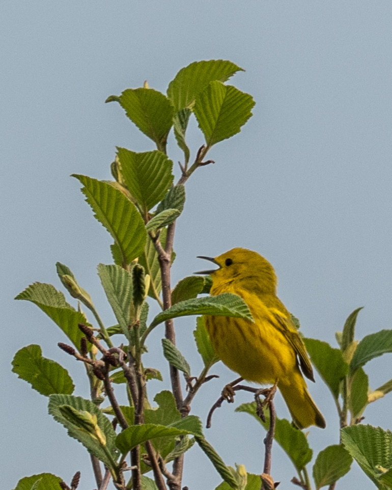 These fellows are flitting around in the tag alders and other thickets, singing their hearts out: