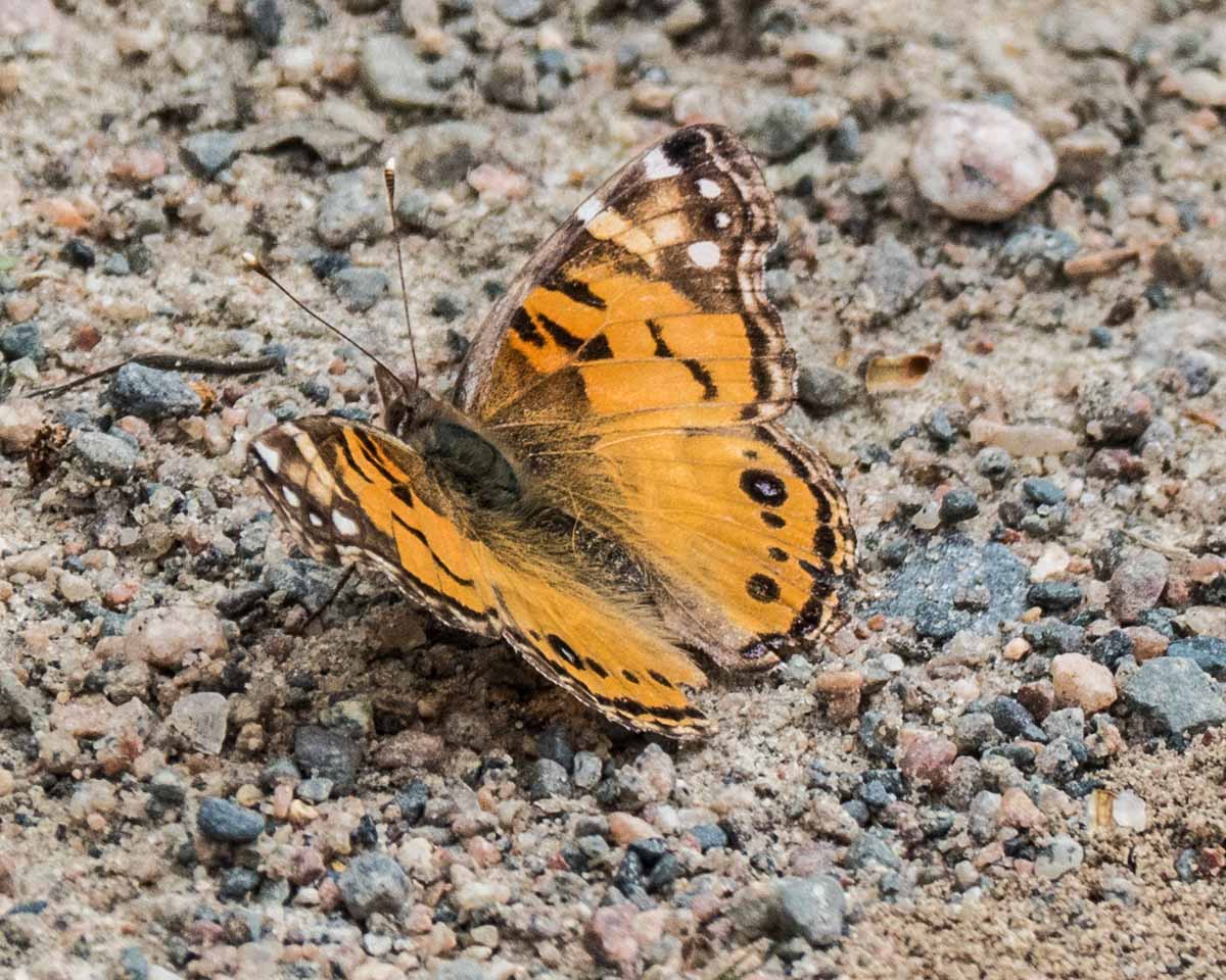 New butterfly for me, IIRC:  American Lady.   Another good site: Butterflies of Ontario.