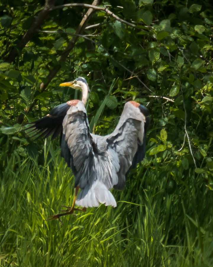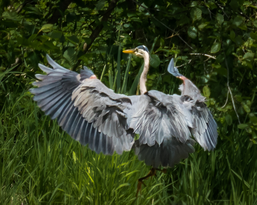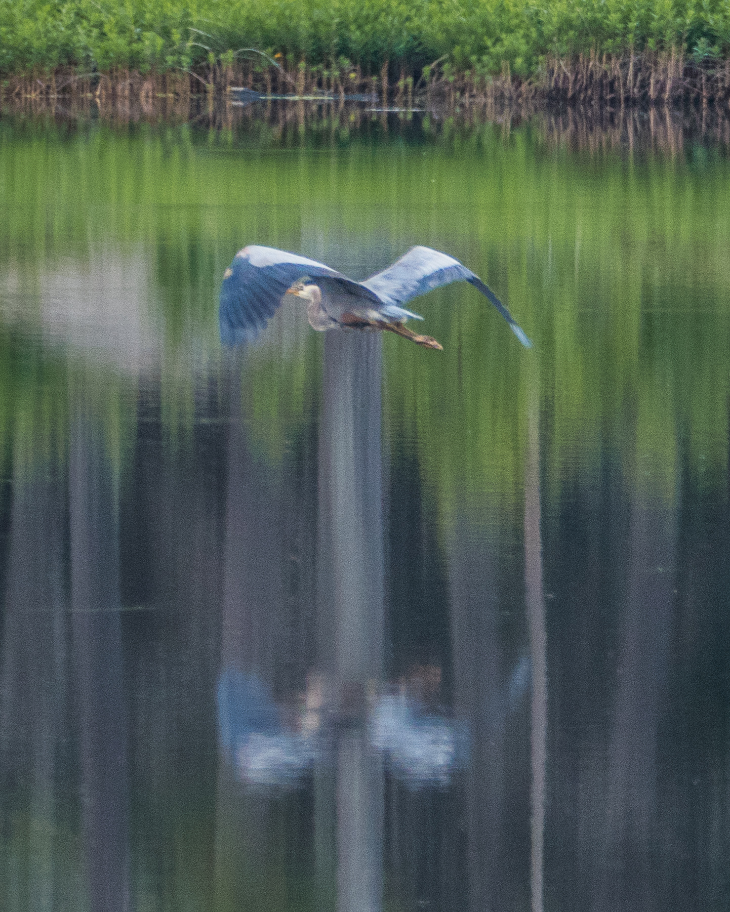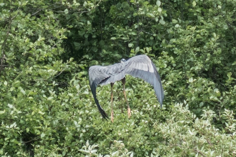 My intent was to zero the unit in at Burwash, which took about 3 minutes. I left it mounted on the camera and when going by Neilly Lake saw a Great Blue Heron flying. I took the camera out of its bag; turned it on; clicked to “C2”; raised the RDS and took this first photograph with the Oly RDS: