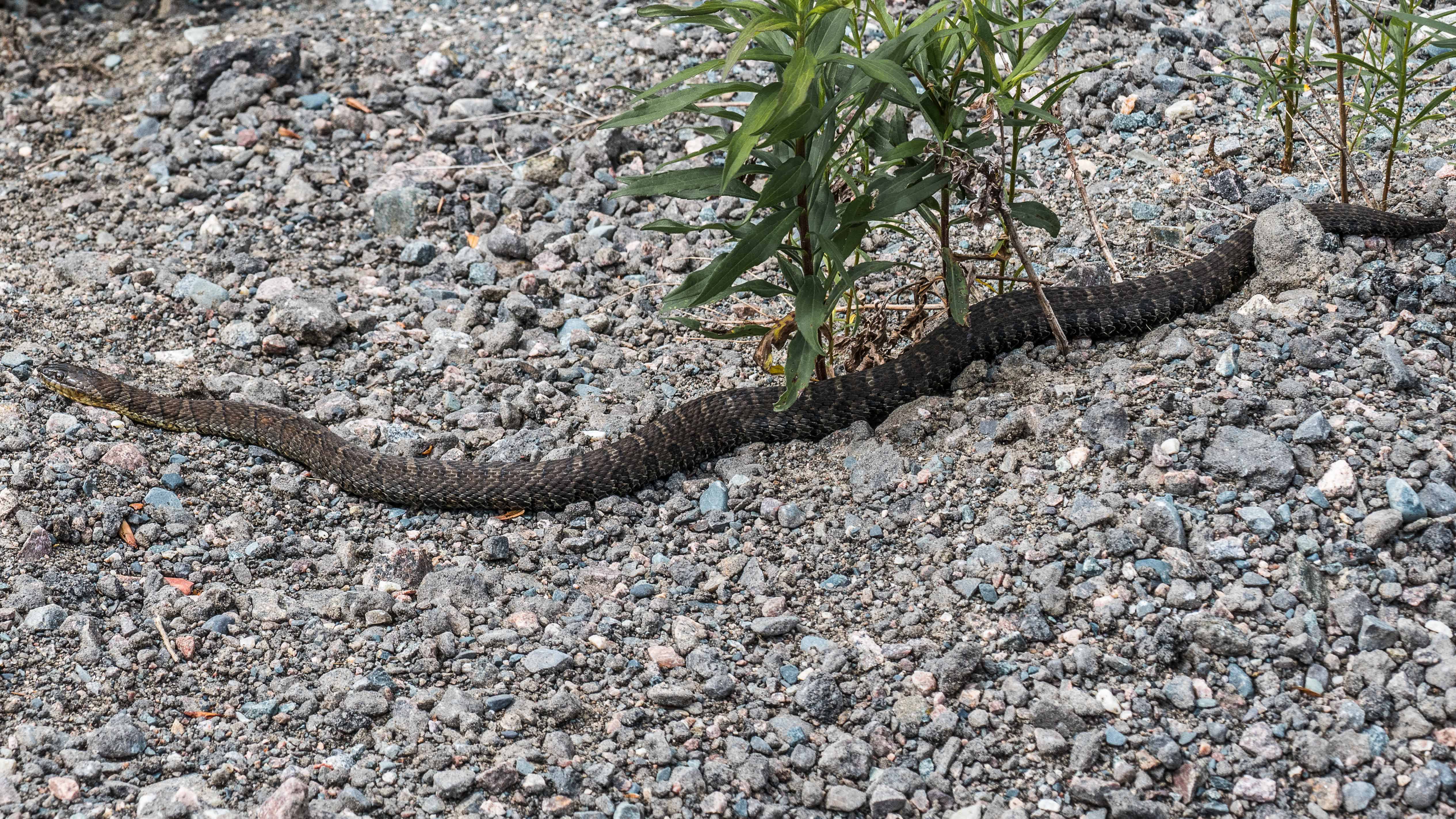 Later I came across this very curious bird pecking in the gravel alongside the lake. I photographed it conventionally since it was patient and not moving quickly. Halfway in size between a dove and a grouse.