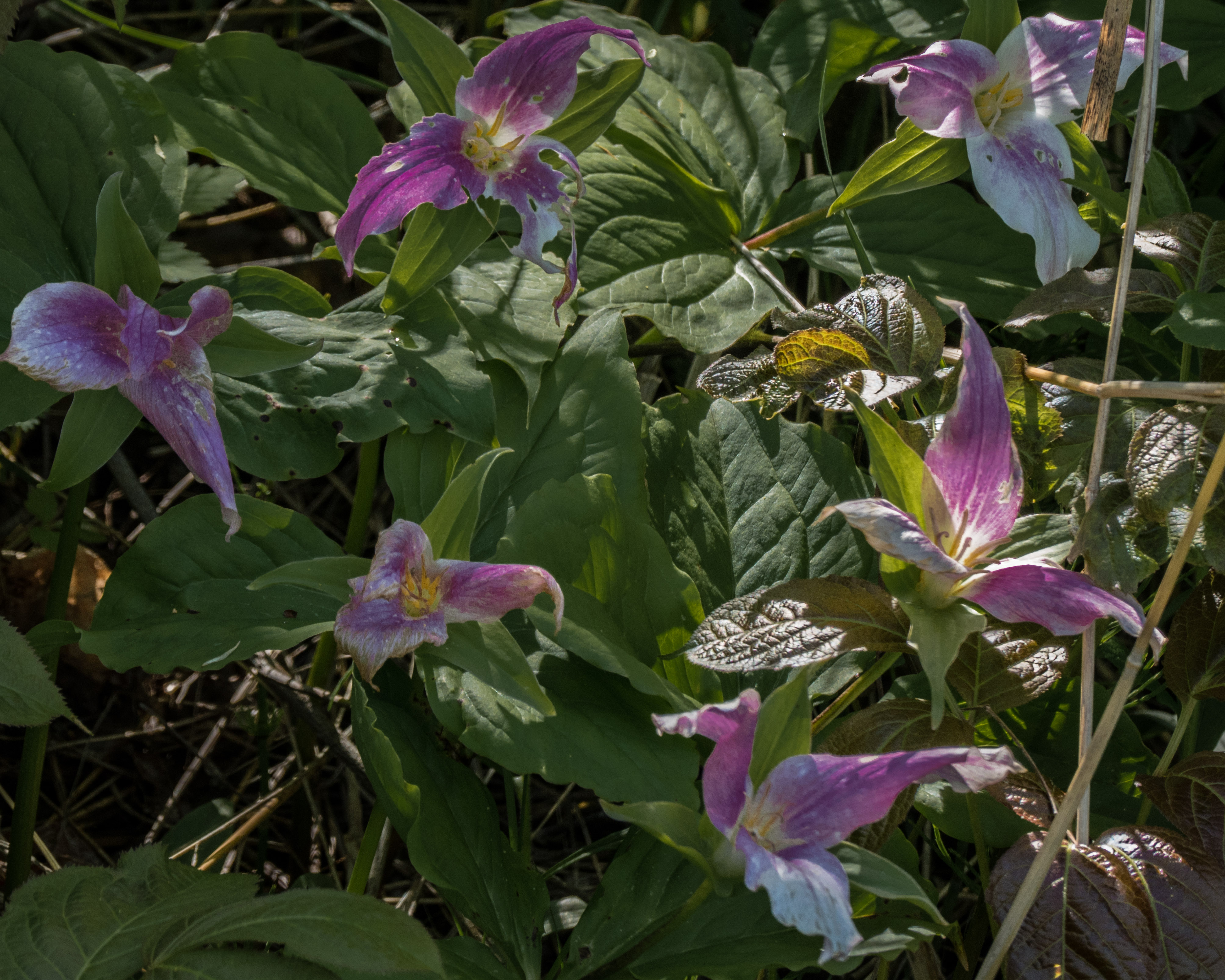 The Trilliums continue to fade and lose their blooms, but the leaves are working hard making food stored in those rhizomes.