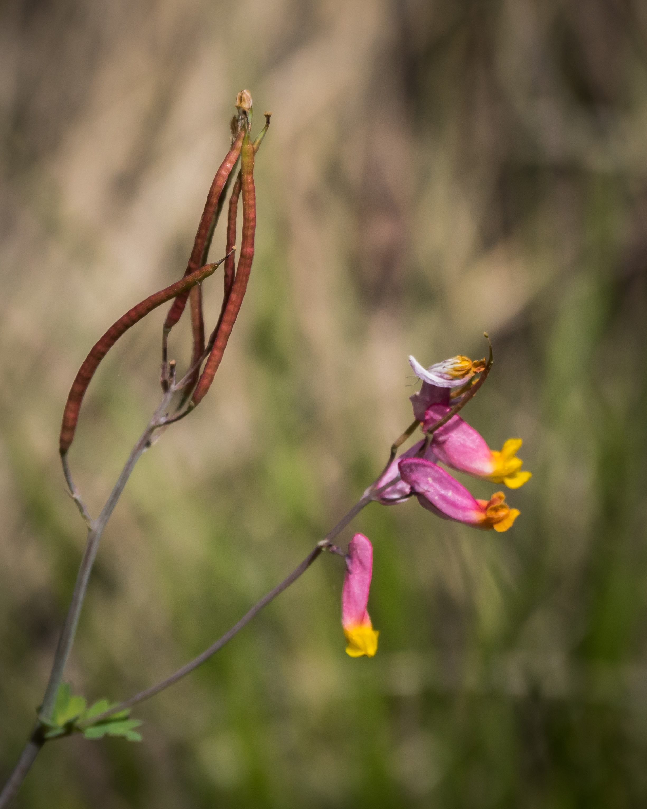 The Pale Corydalis are fading quickly now. But the seed pods are ripening.