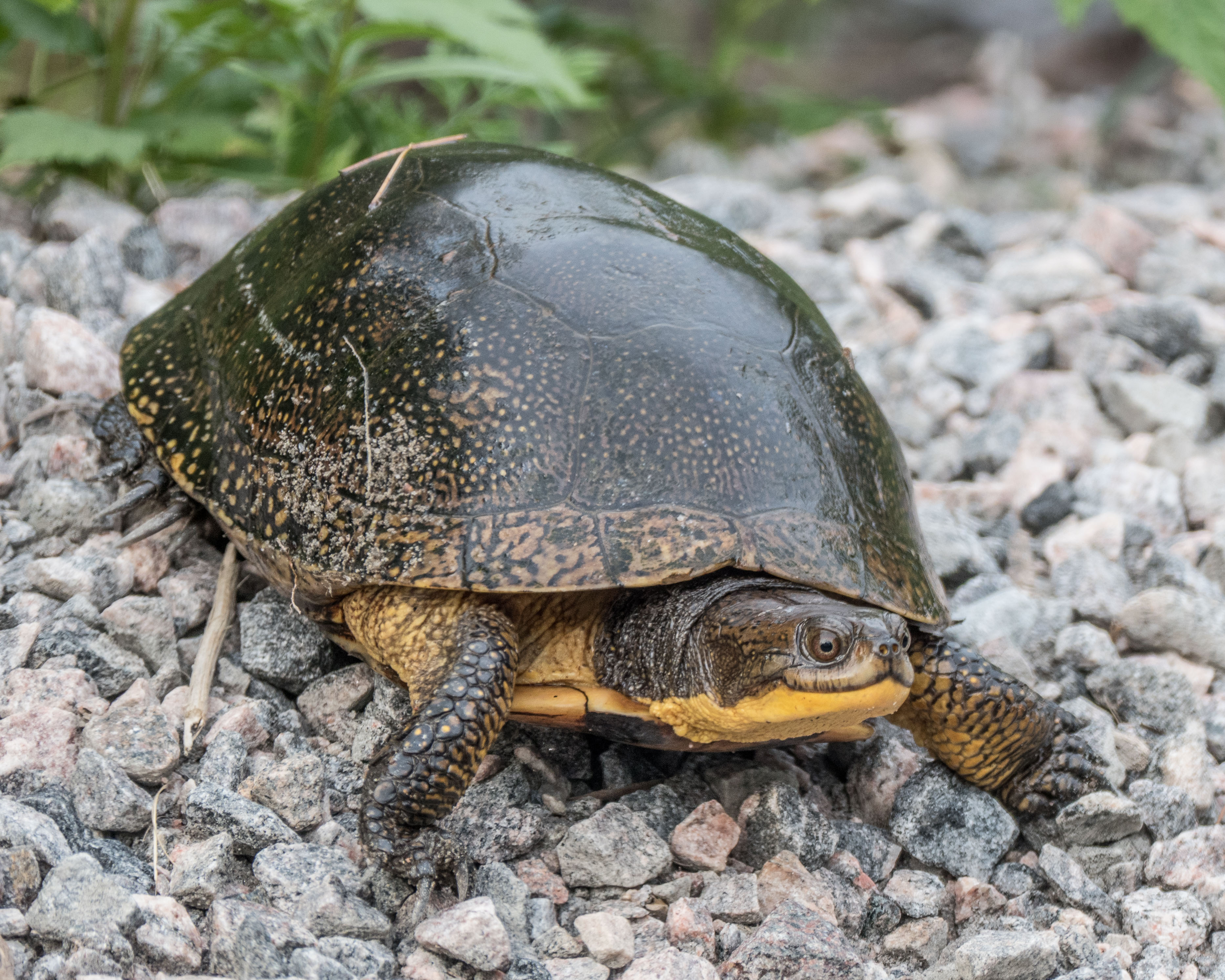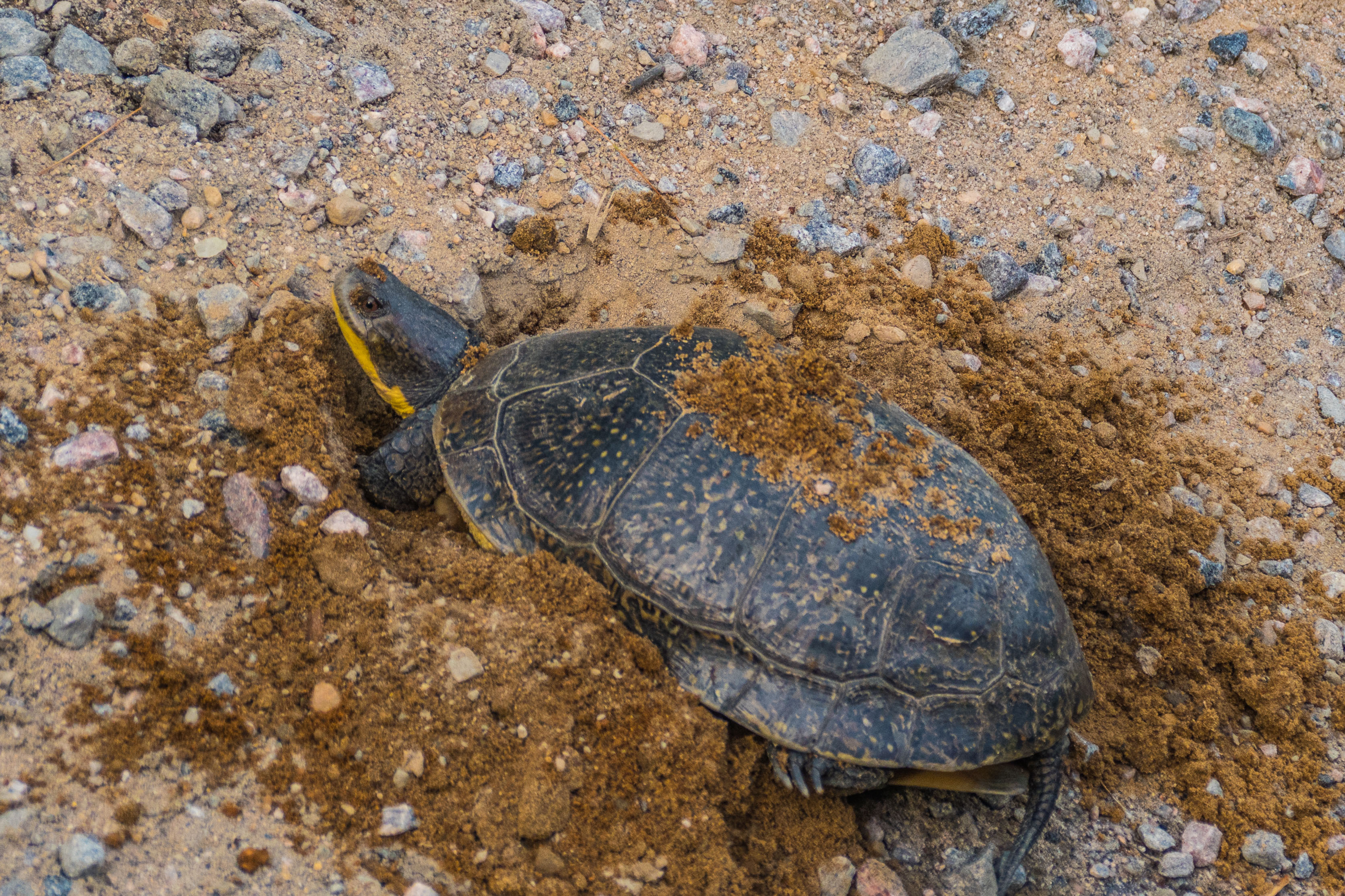These Blanding’s turtles are busy laying eggs wherever they can find some sandy gravel, usually on roadside shoulders.
