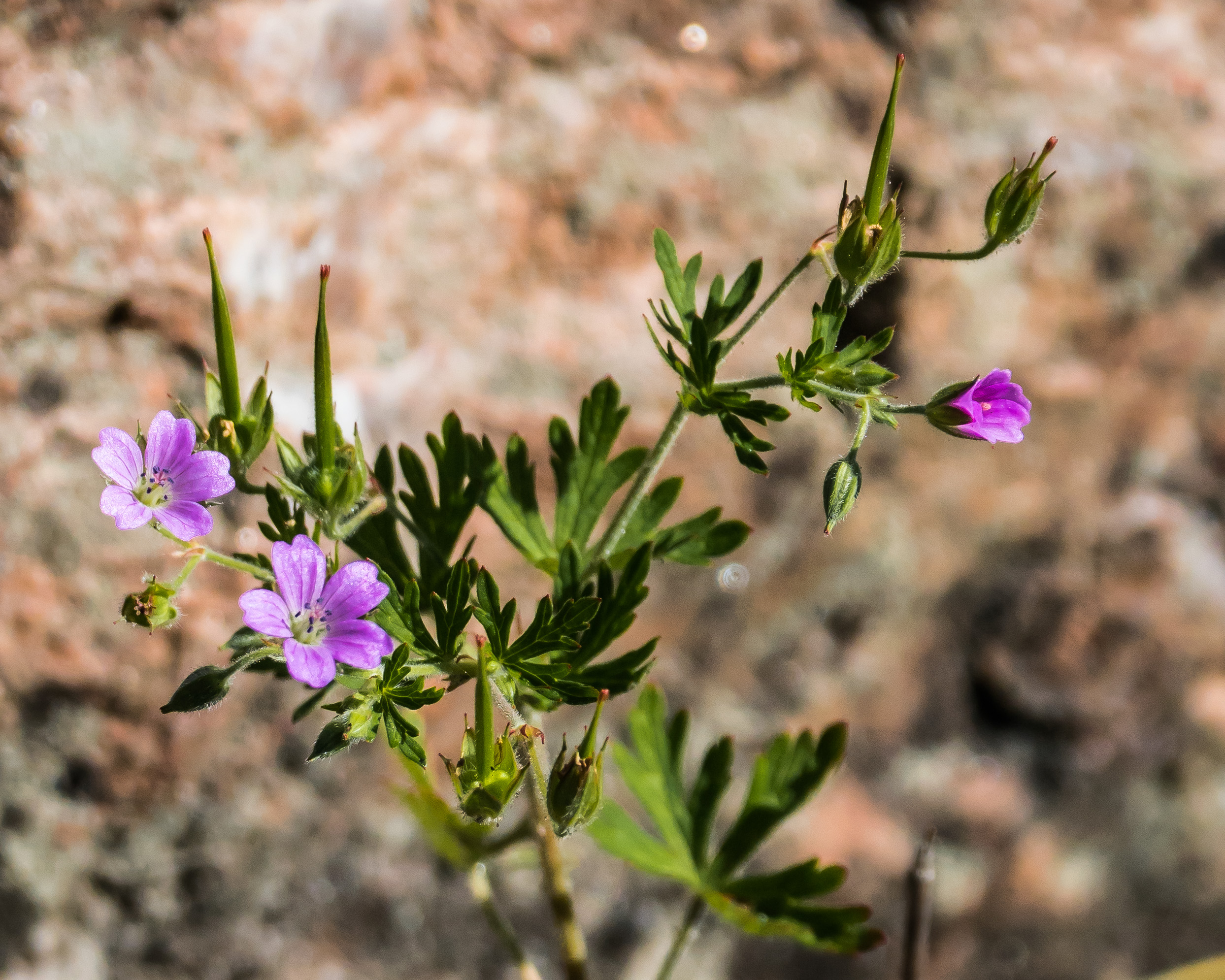 This showes why these geraniums are called cranesbills.