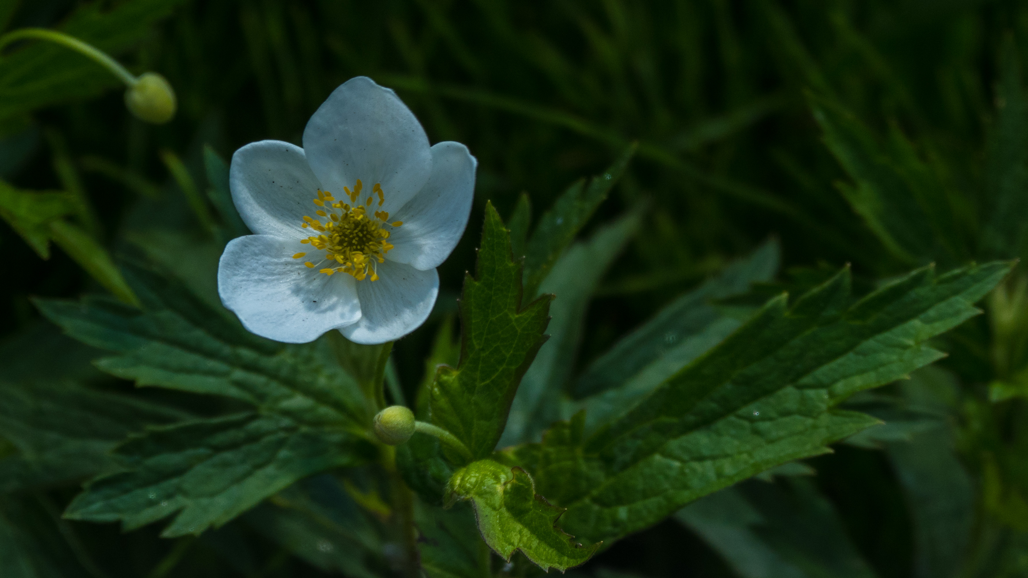 Canada anemone, crowfoot has more sharply cut leaves compared to the smaller Wood anemone.