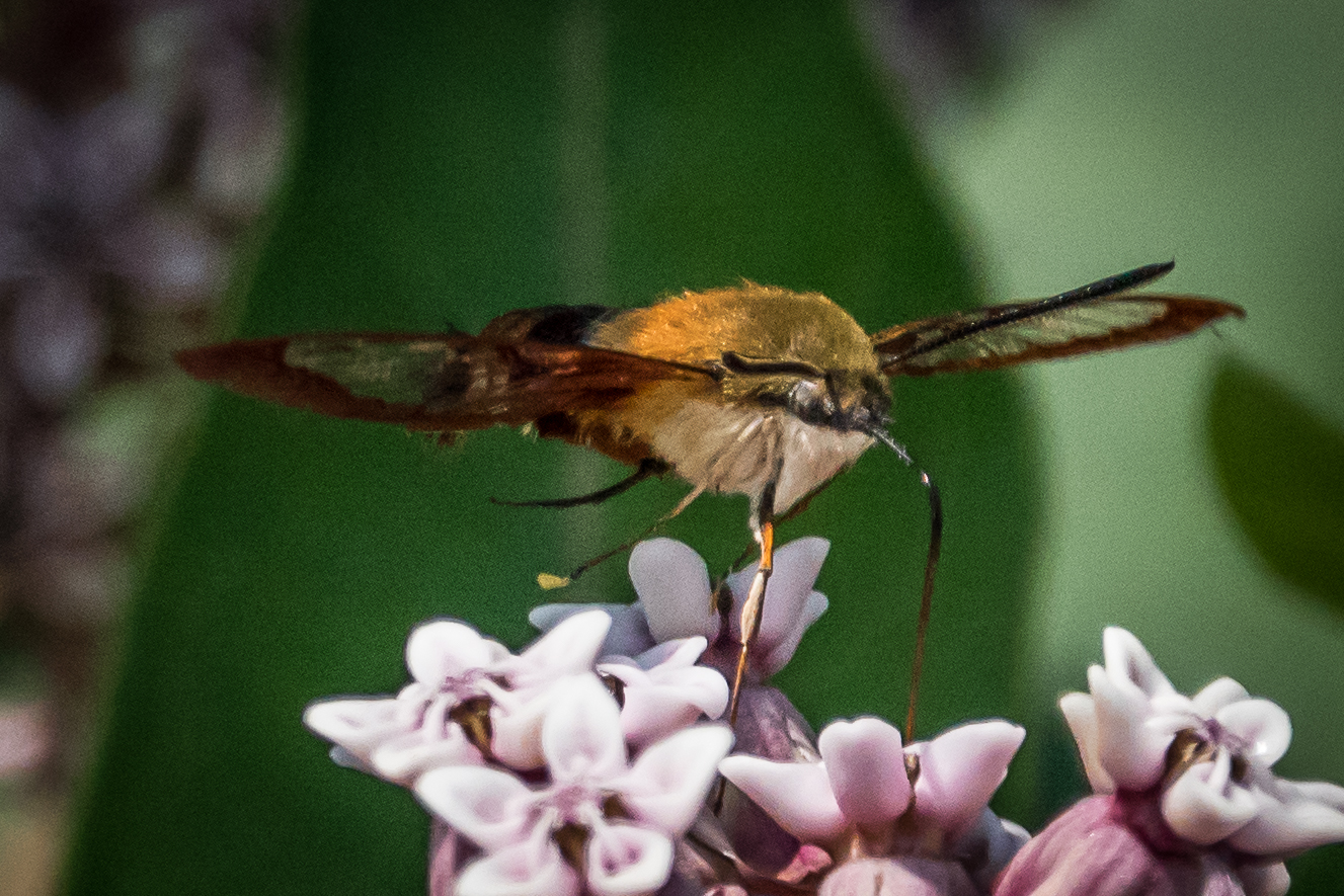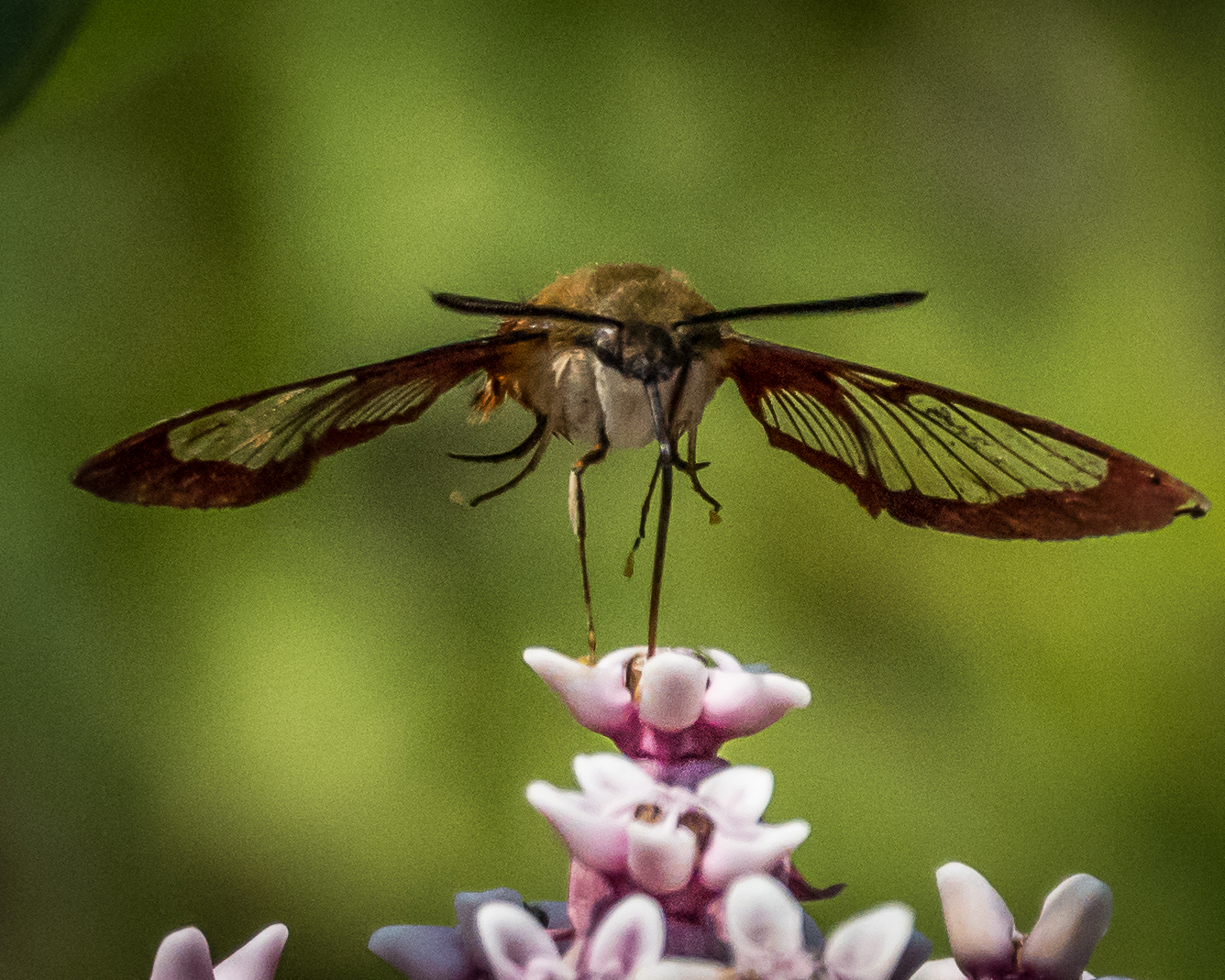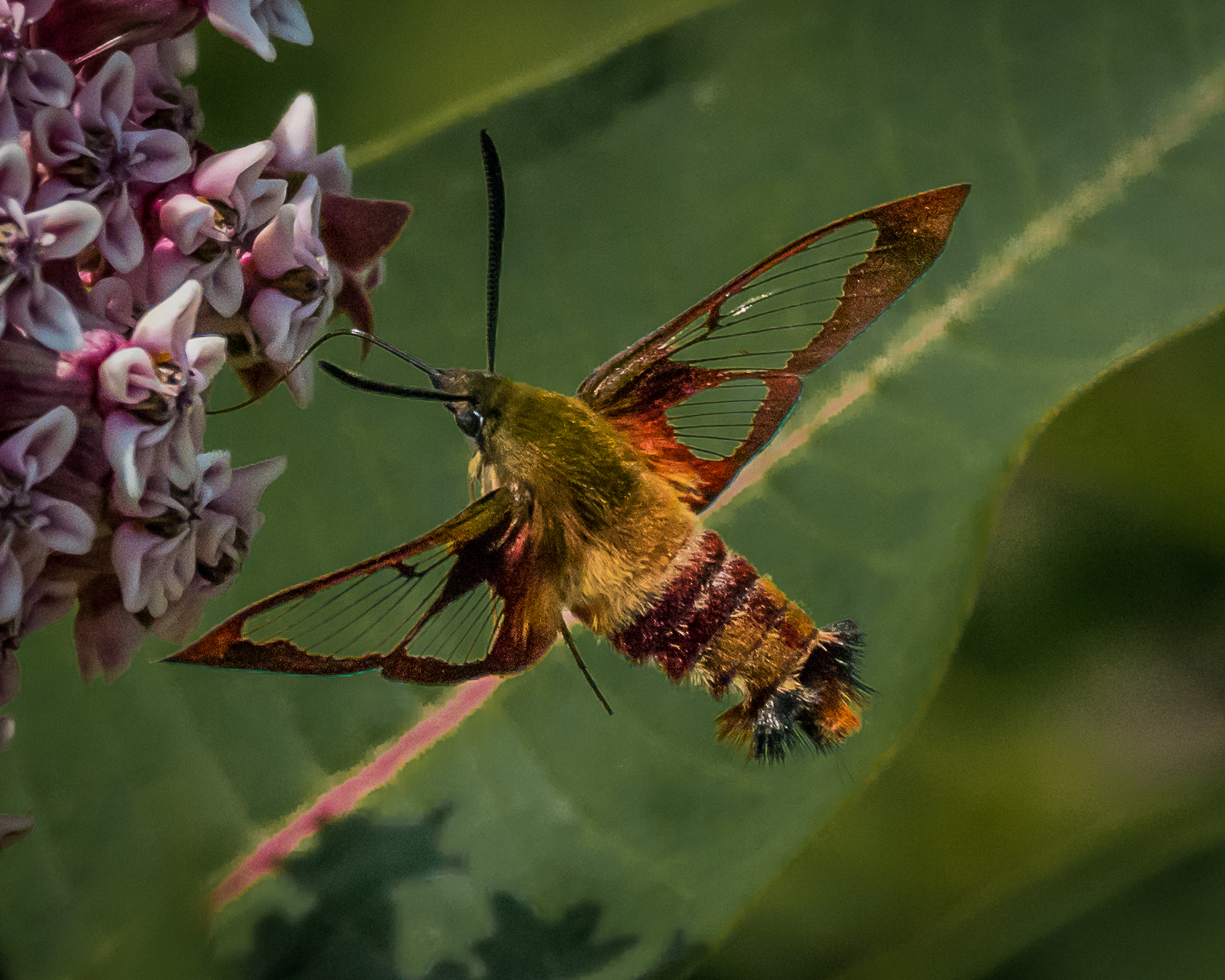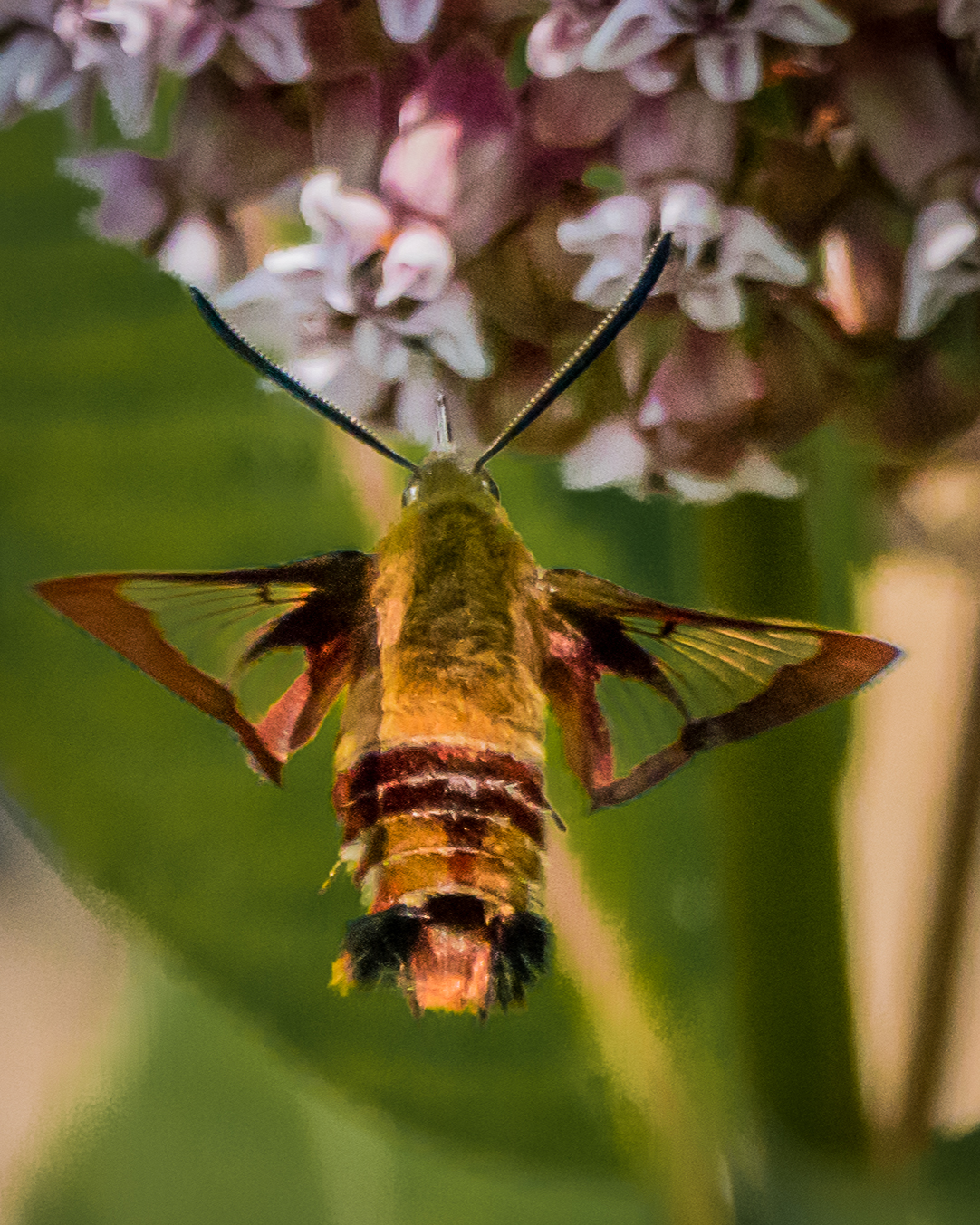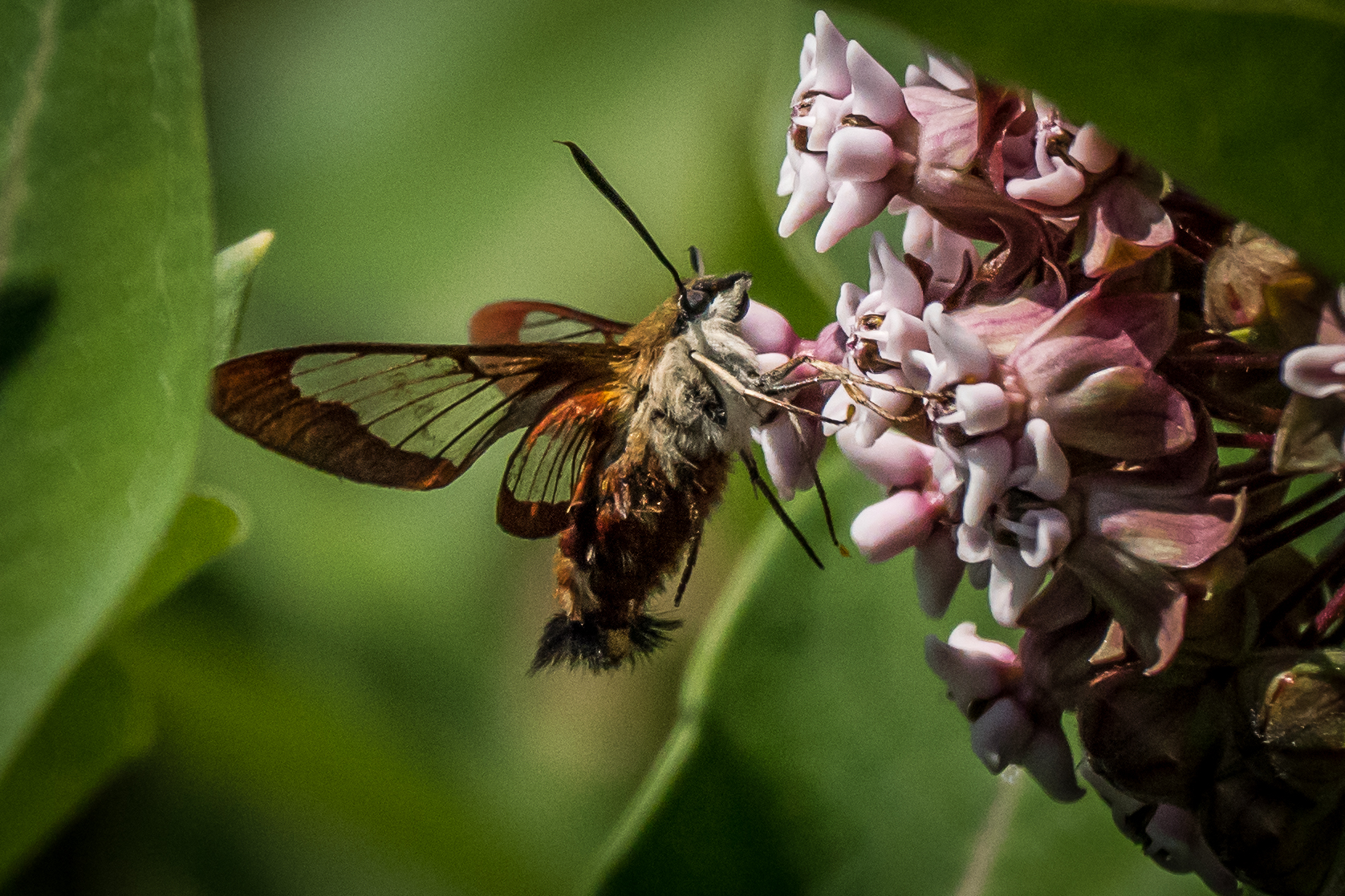 On June 30th I spent some time at the milkweed patch observing the various critters who came to feed. It as warm with no breeze so there were lots of Hummingbird Clearwing Moths and several other butterflies and beasties. Lots of images here!