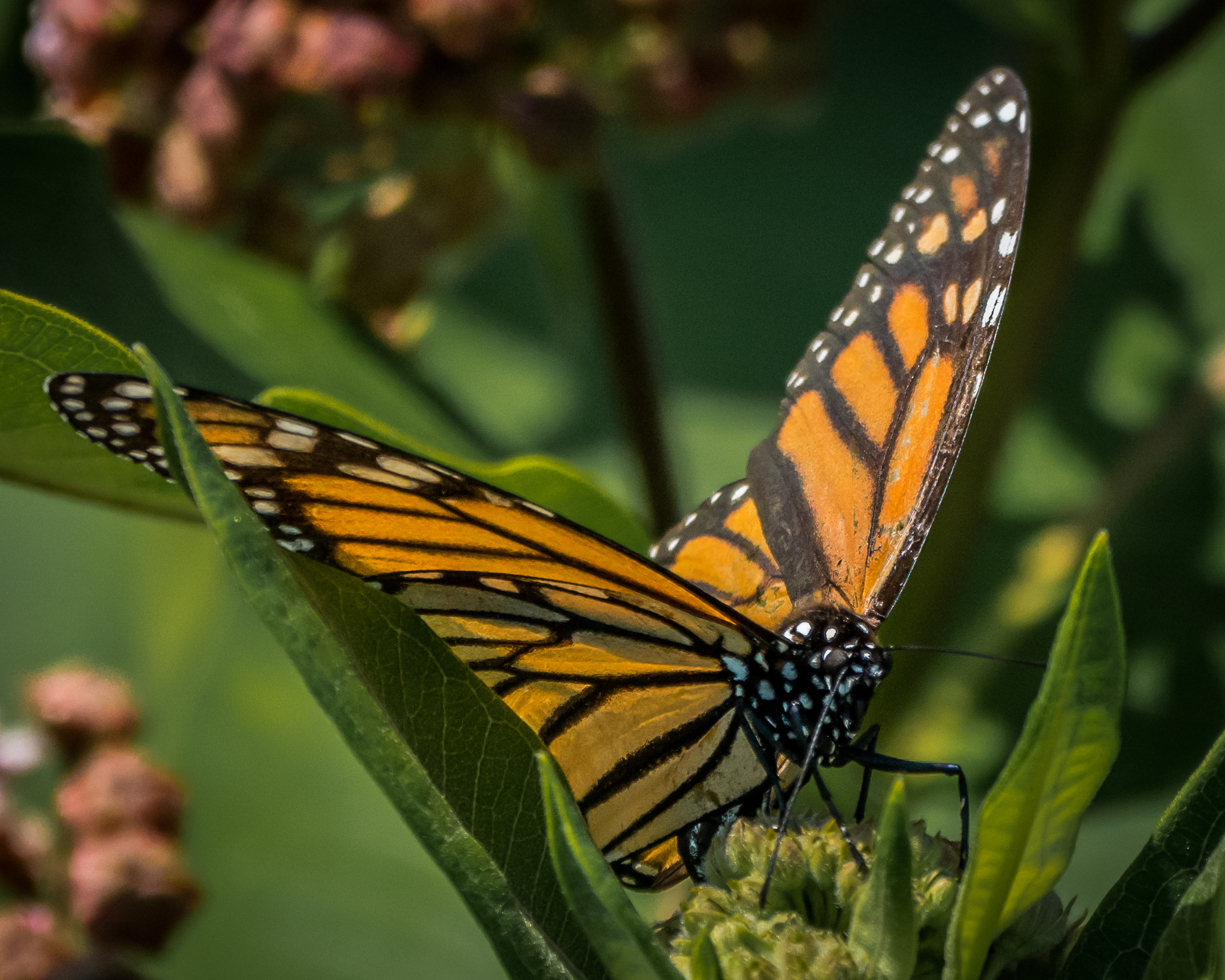 I was lucky to get the above as most of the patch has now been mowed. The mower operator told me that mowing is now prohibited on local Highways until August 15th to provide cover for turtles etc. Maybe it will be possible to educate folks about the importance of milkweed patches!
