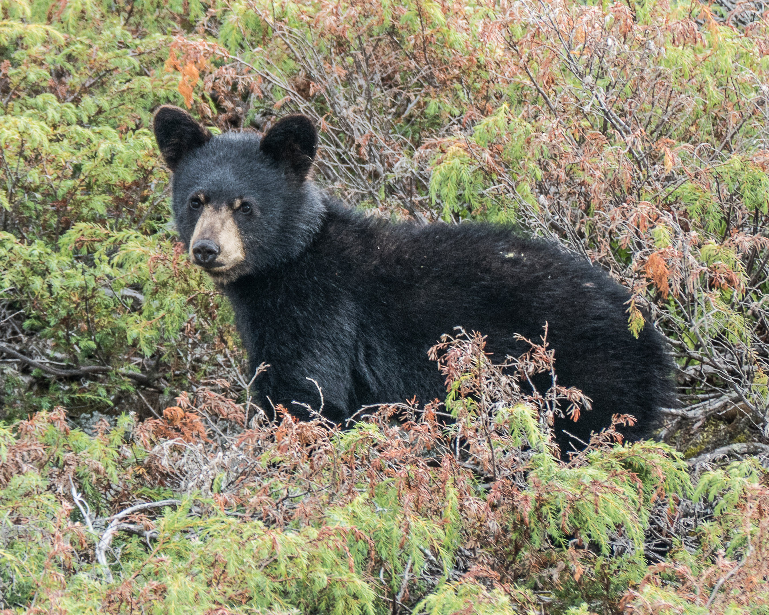 Although it was the angry clouds that caught my eye, the streaking (that can be seen in the enlarged version (click on the image) is also very interesting. The boundary between rain and non-rain can’t be that sharp! It’s the angle of the sunlight reflecting off of the raindrops that is causing those bright streaks. I’ve never noticed that before!