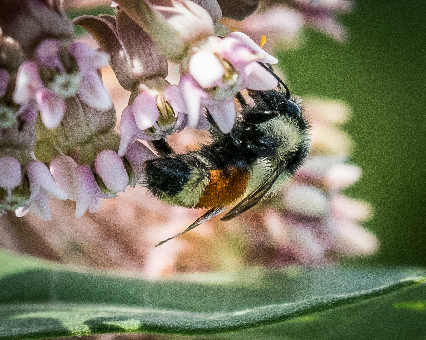 … a group of female Greater Prairie Chickens were sneaking by. These are probably remnants of birds that were earlier brought in from Canadian prairies where they are now extirpated due to habitat loss. “In May 2000, the Canadian Species at Risk Act listed the greater prairie chicken as extirpated in its Canadian range (Alberta, Saskatchewan, Manitoba, Ontario).[3] It was again confirmed by the Committee on the Status of Endangered Wildlife in Canada in November 2009.[4]” It surprises me that, with the remnants of Bison (introduced to Burwash in 1940), Elk (Replenished at Burwash in 1940 and 1998-2001), Chukar Partridge and Greater Prairie Chickens, the Burwash site isn’t an area protected from hunters. Later we saw diptera and hymenoptera loading up on nectar on thistles and milkweeds: