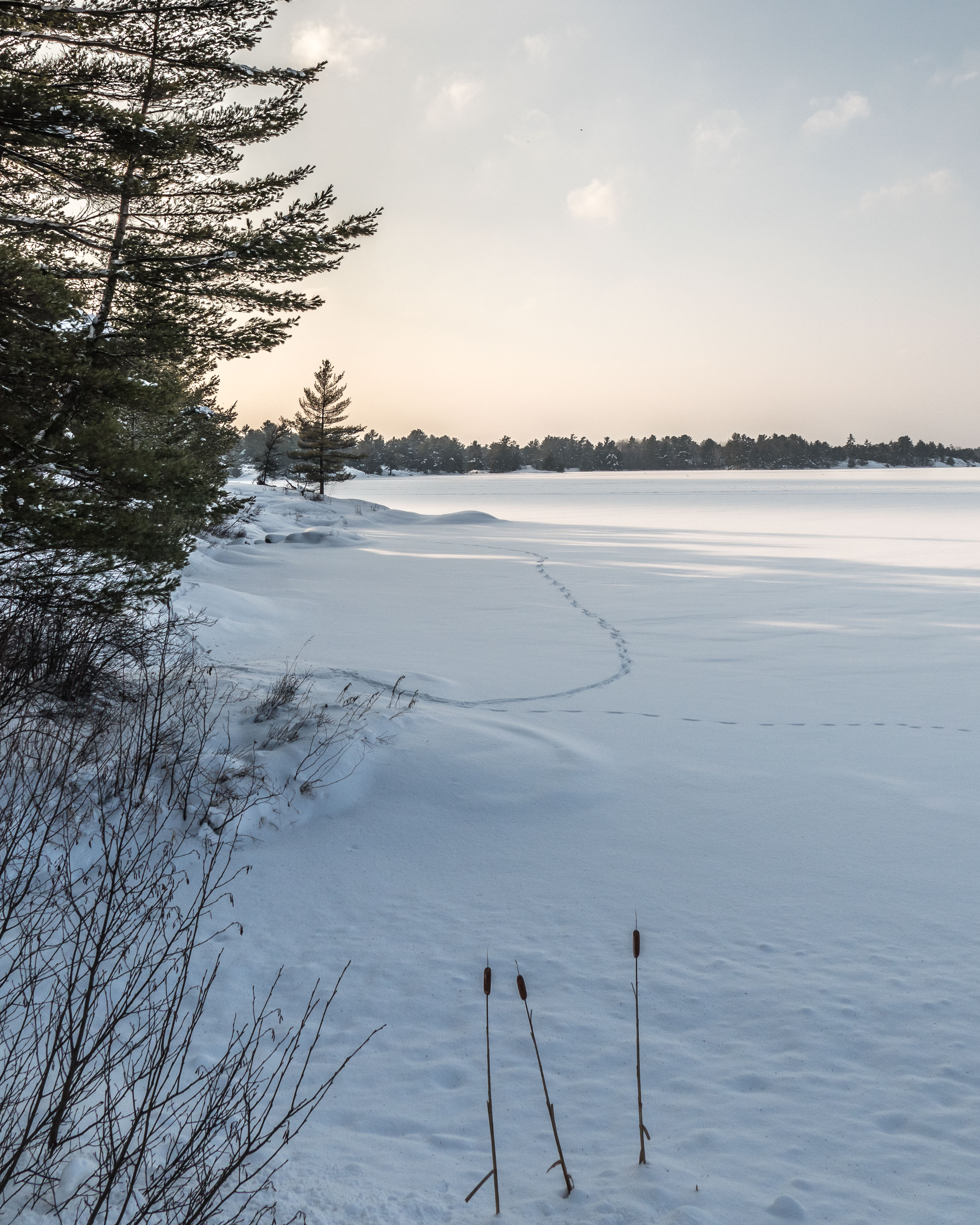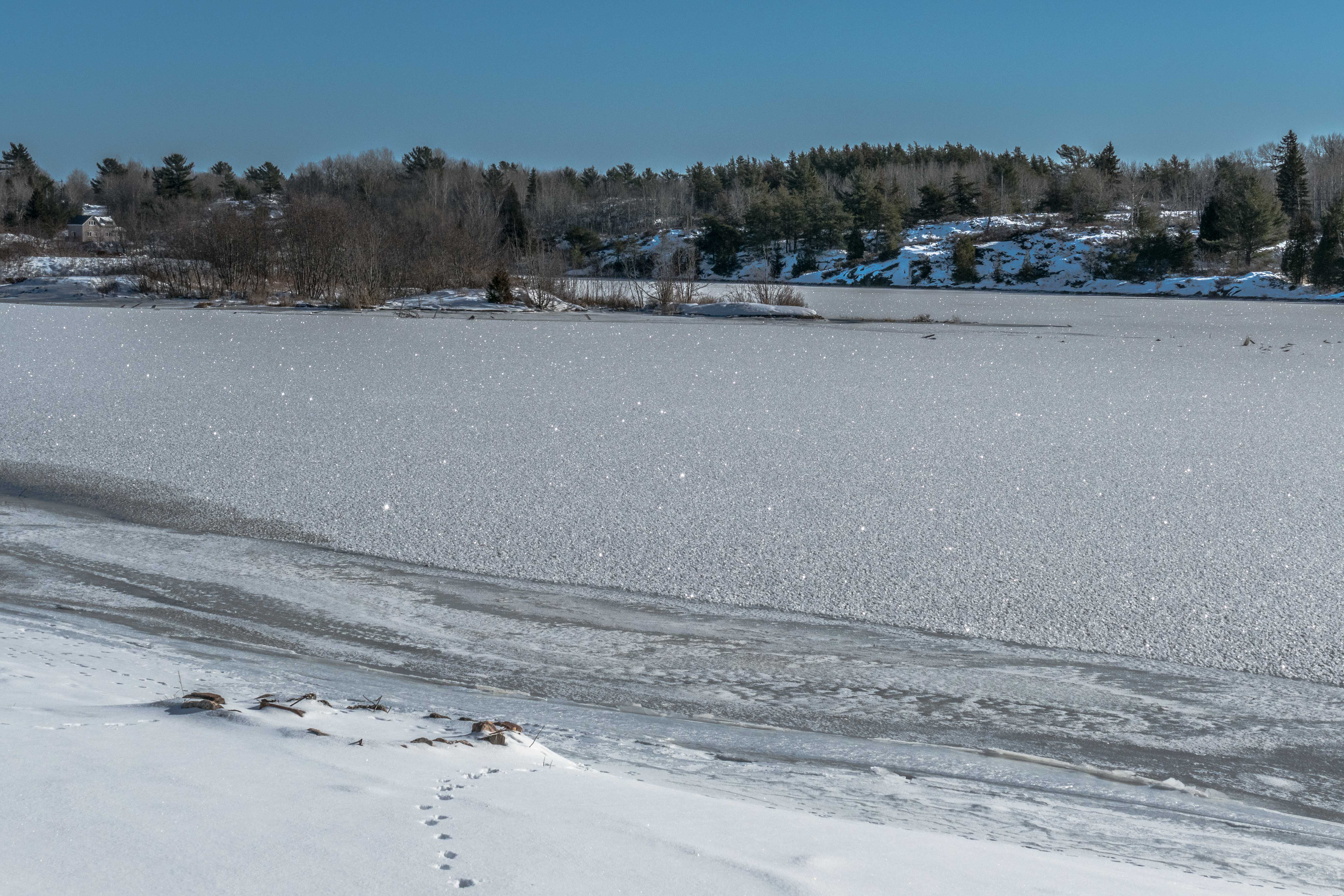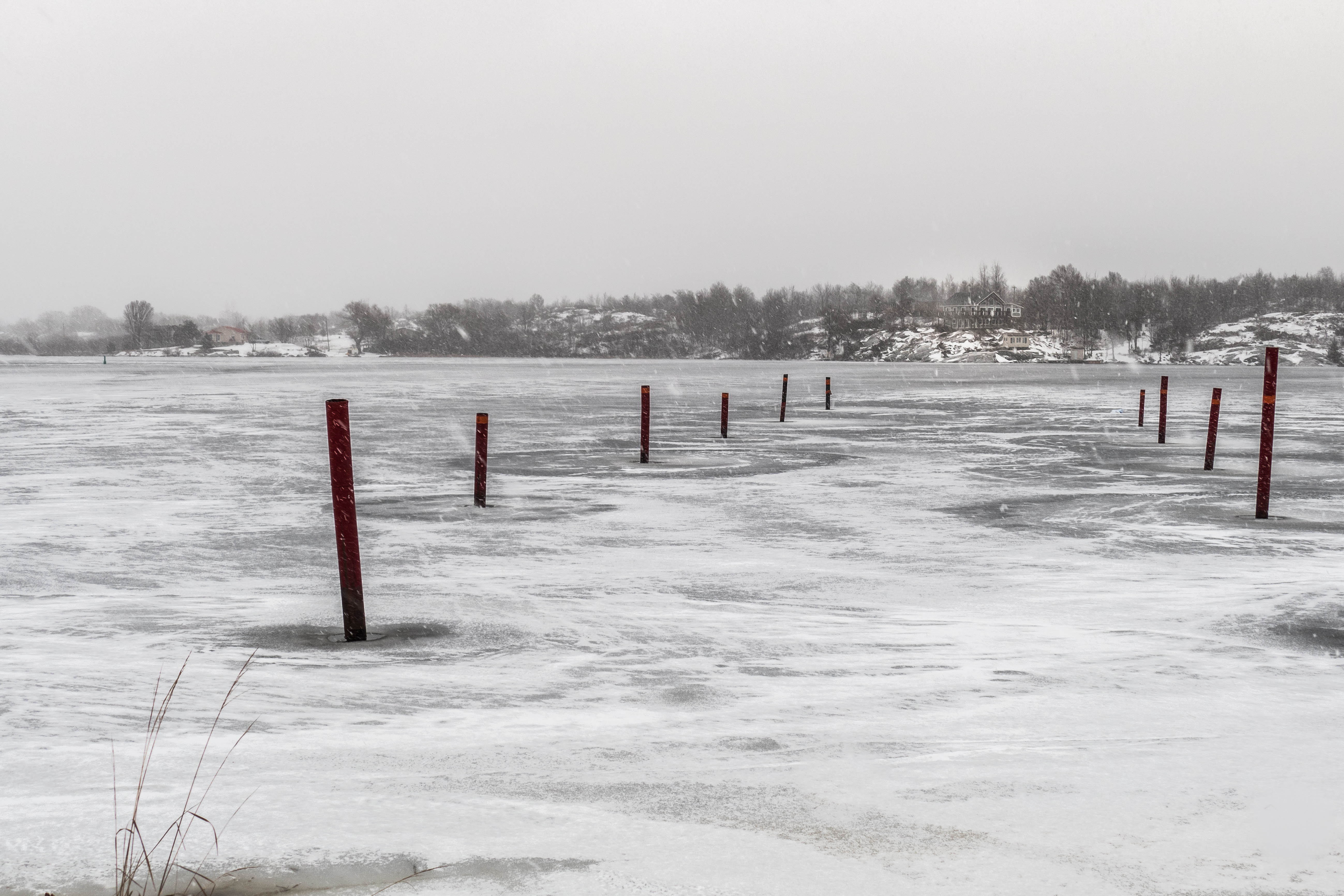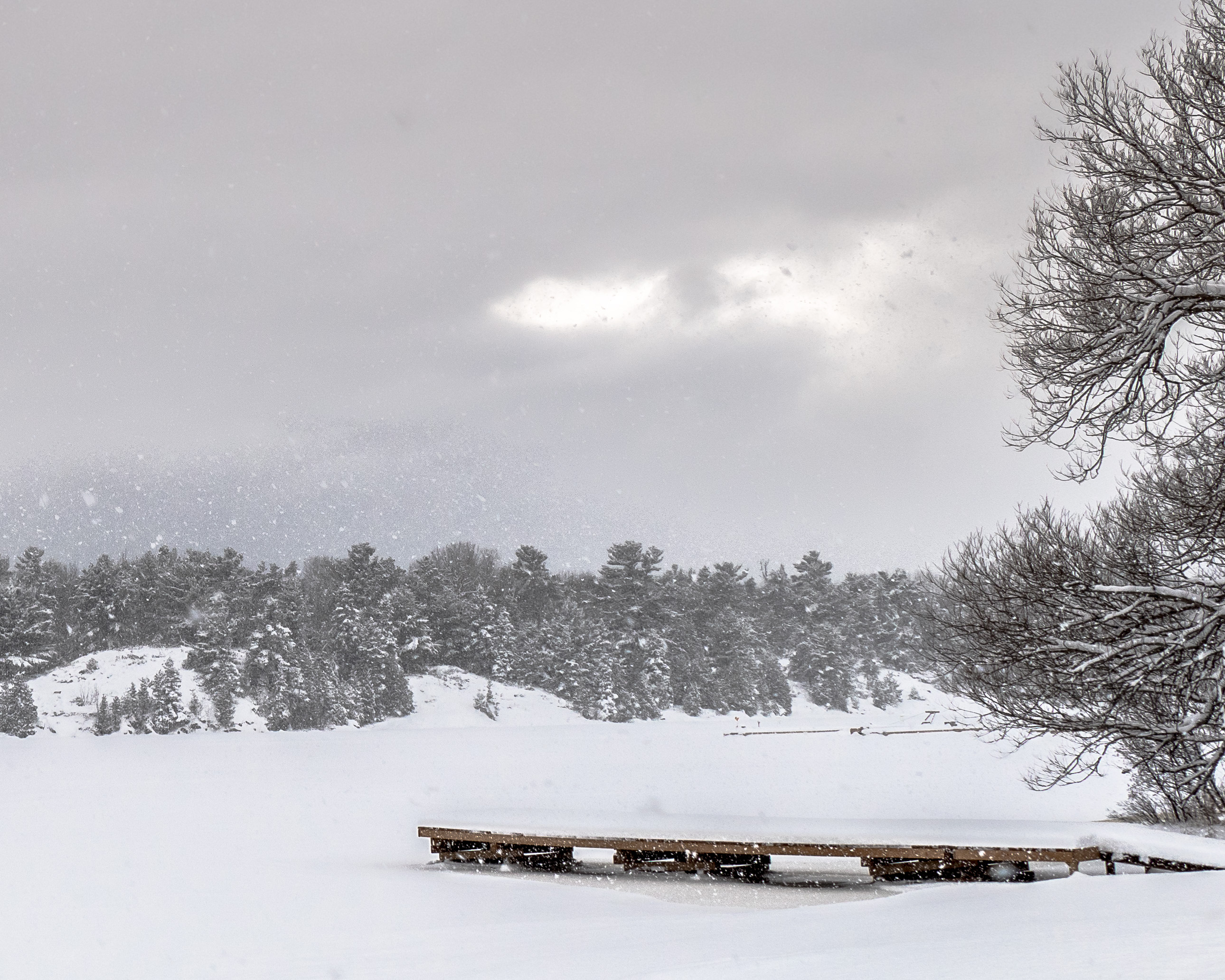 Byng Inlet froze over, locking St Amant’s dock poles into the ice, as “lake effect streamers” indicated what was to come:
