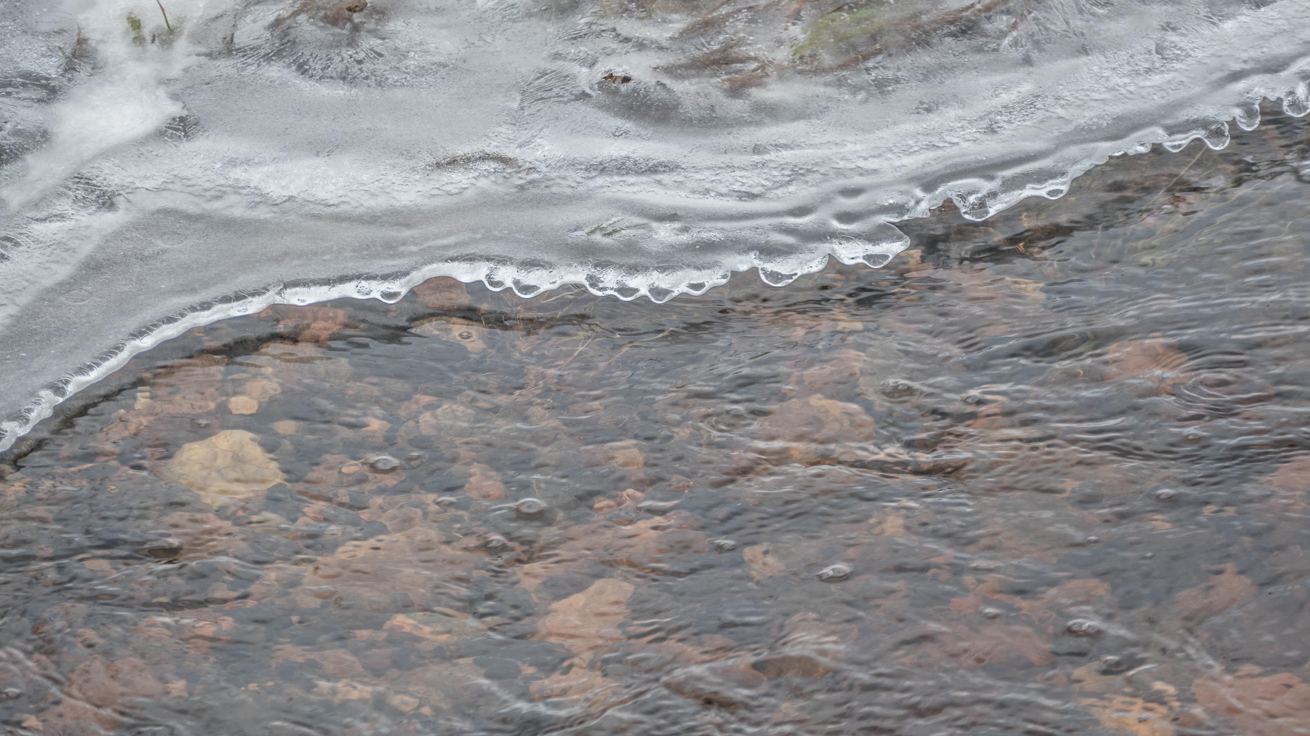 We chatted for a bit about the ragged shapes of the holes in the thin ice , above photo, and concluded that it must be the result of water erosion.