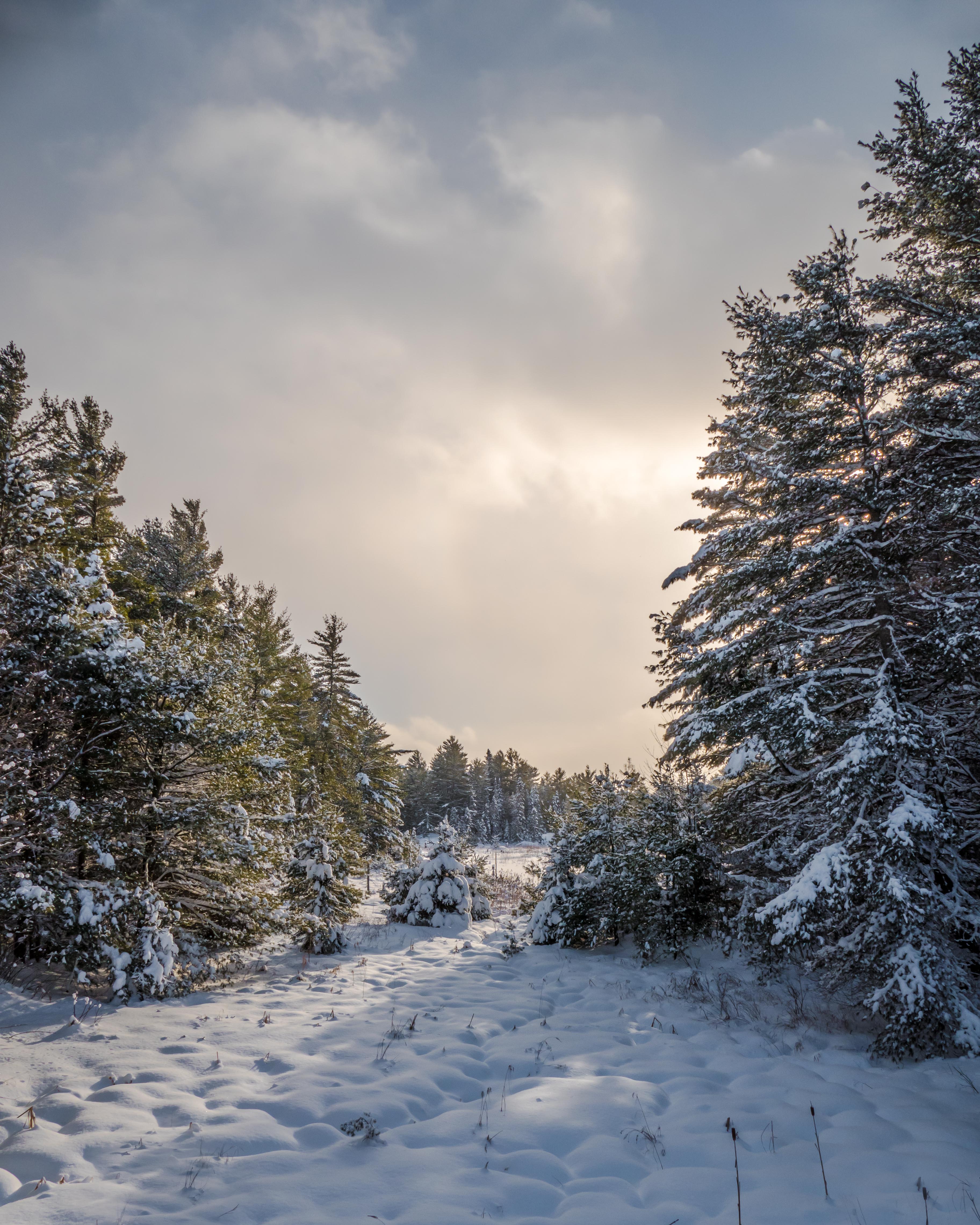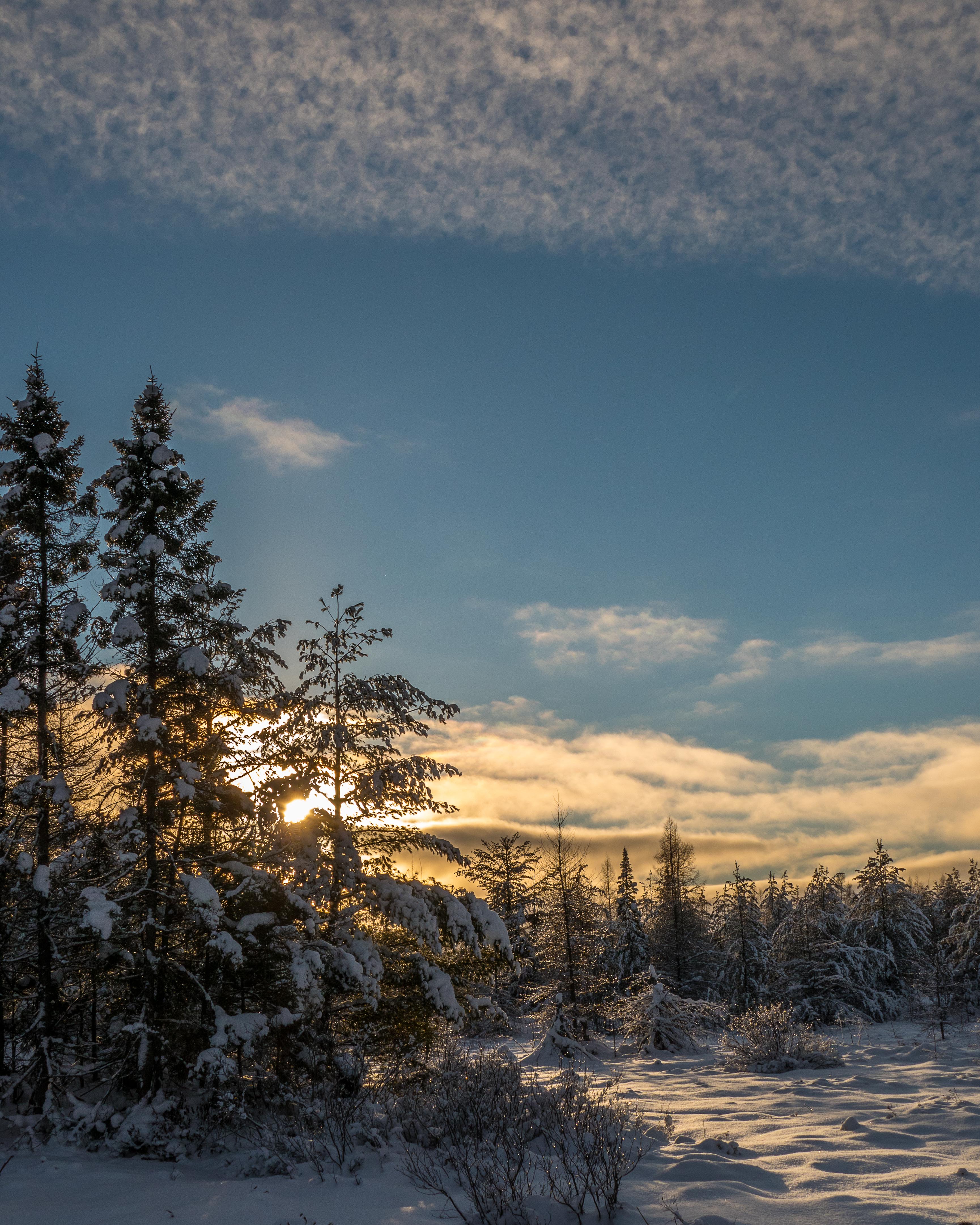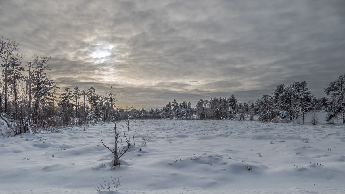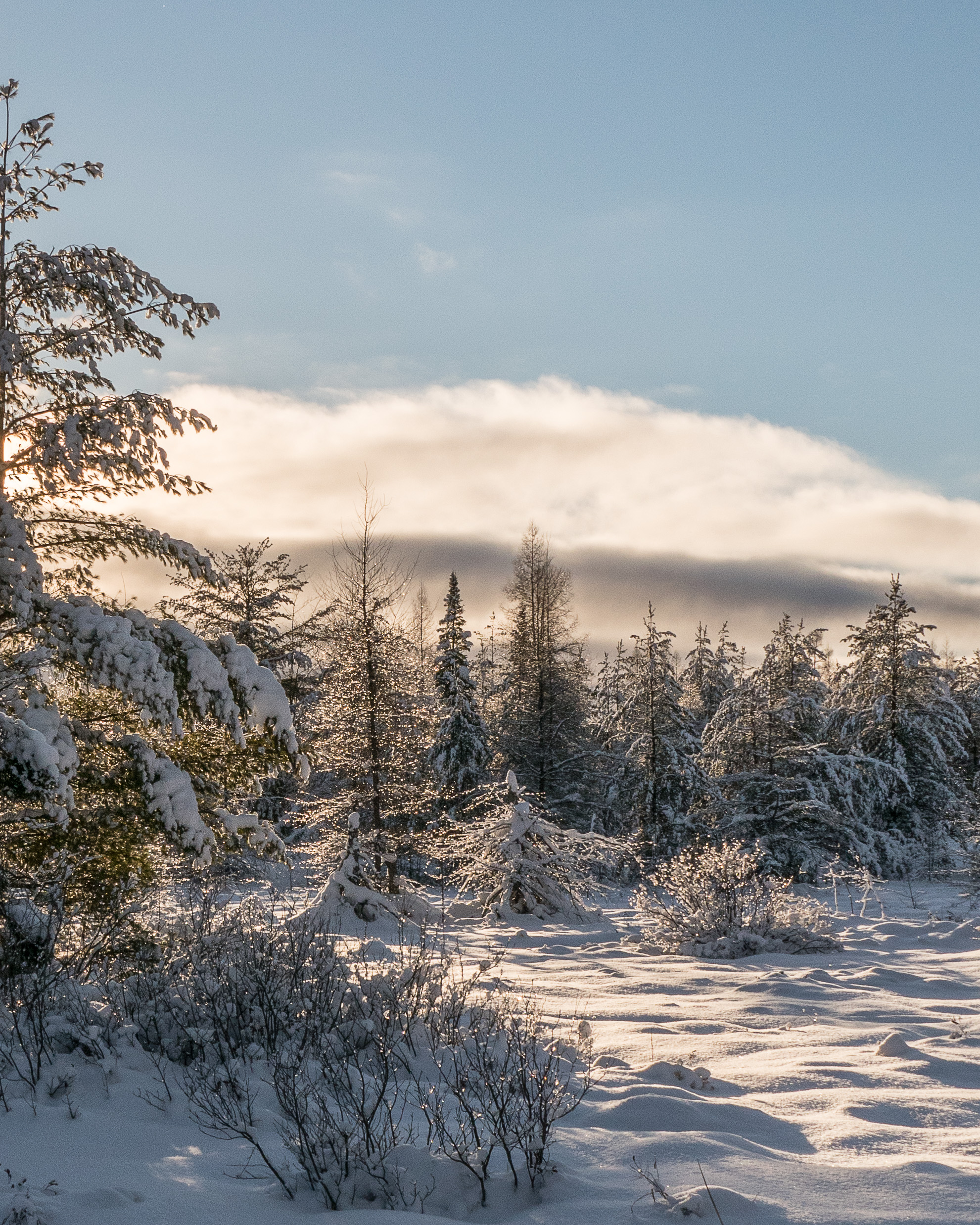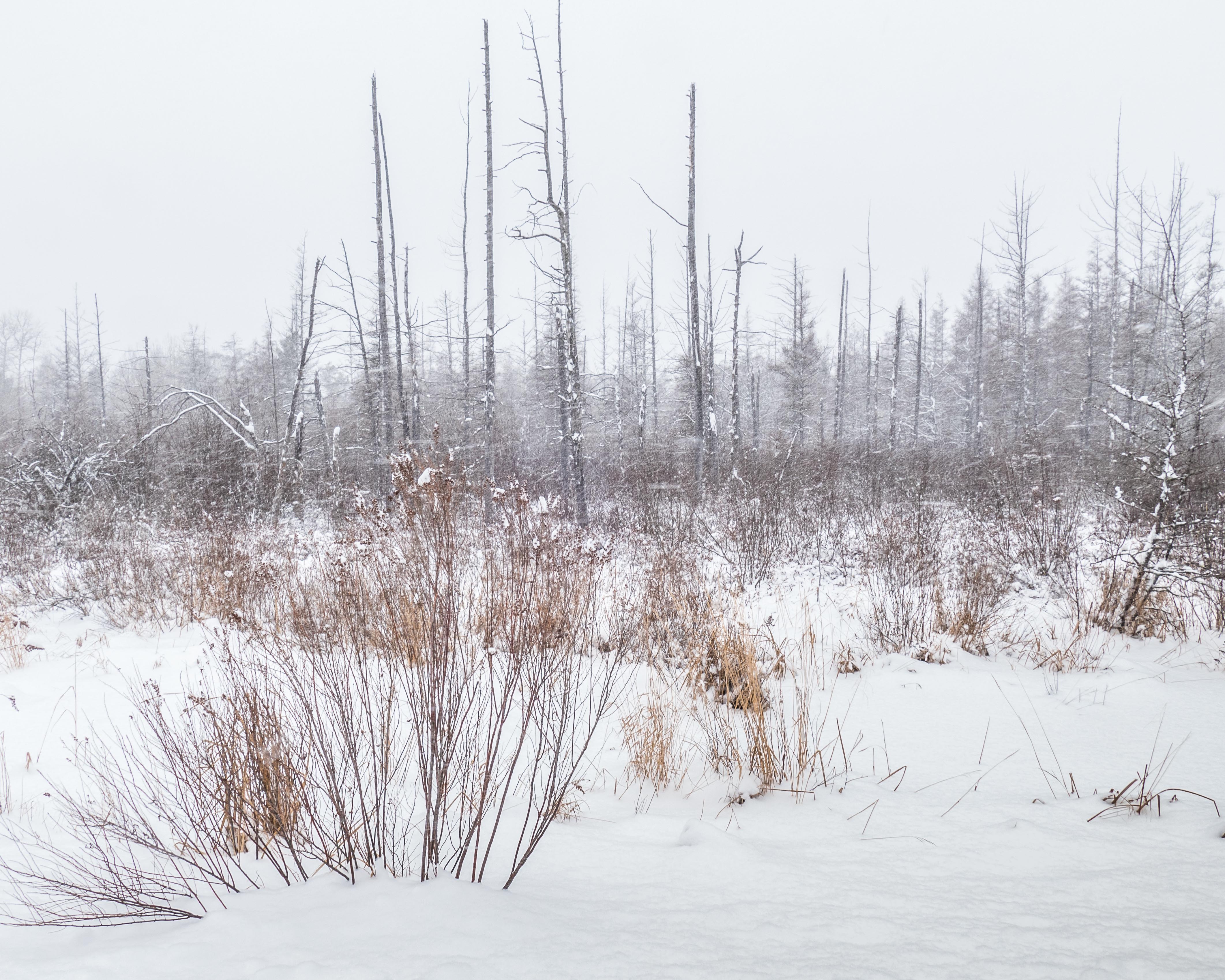 The tamarack/(dead) black spruce swamps are filling with snow.