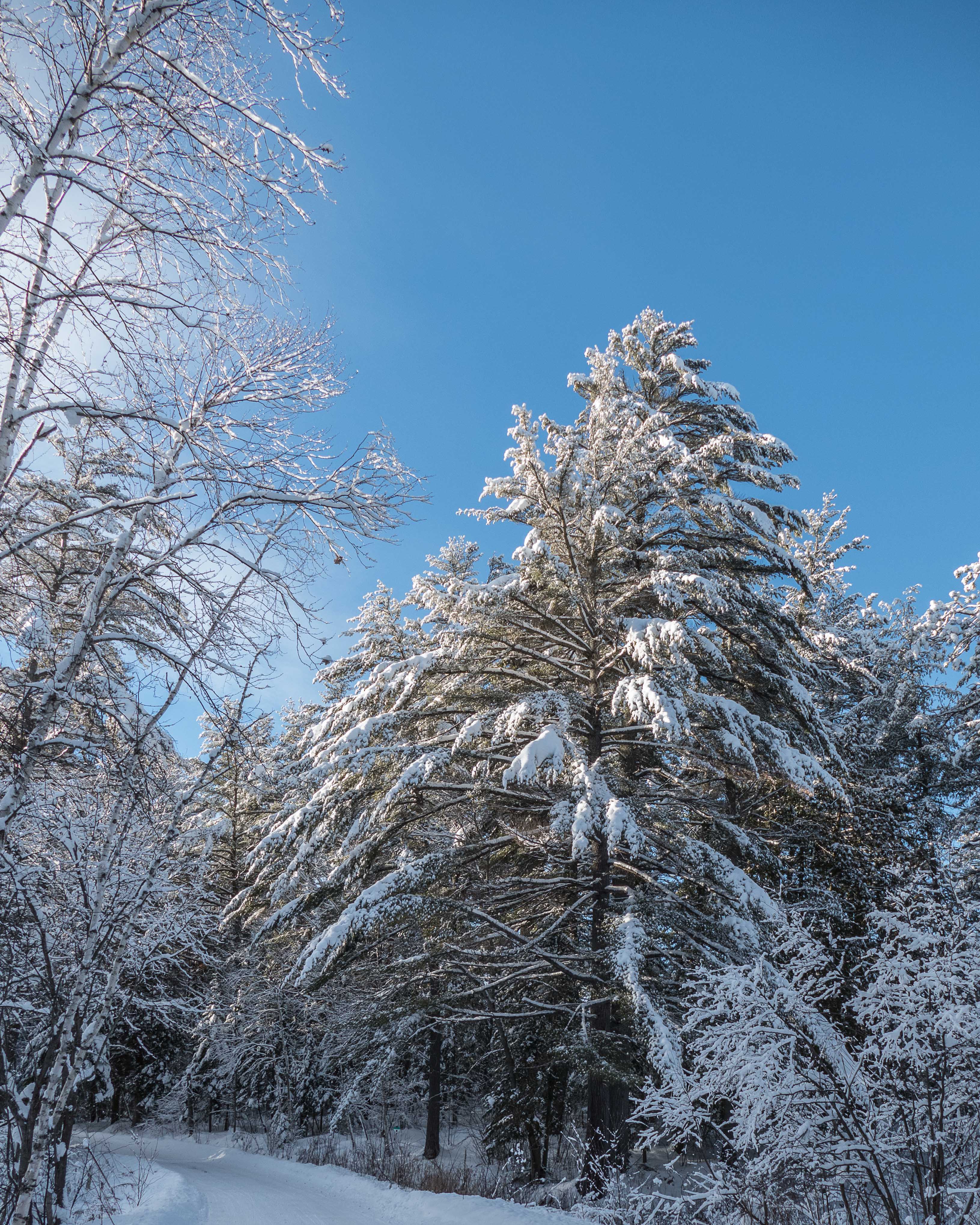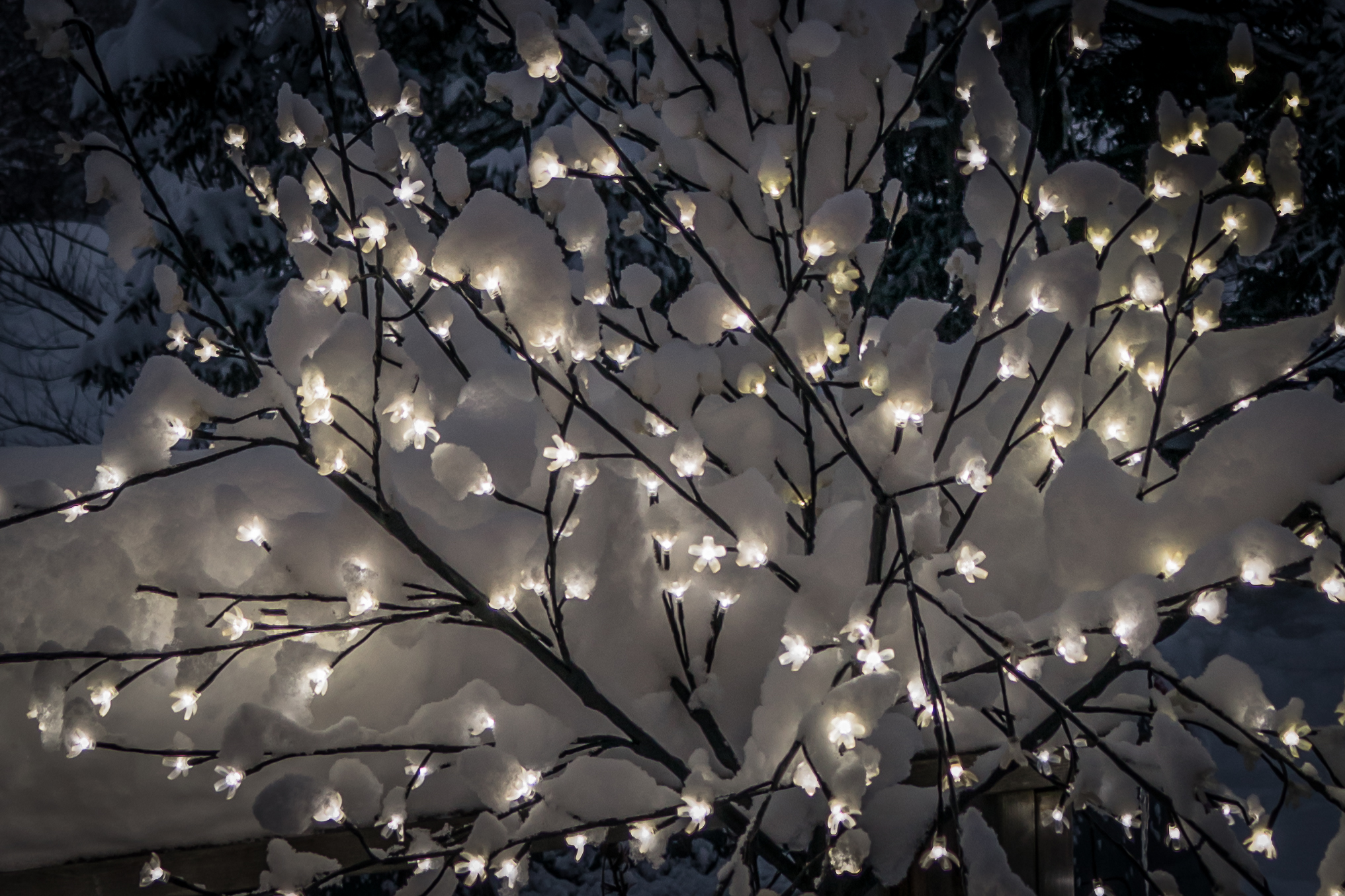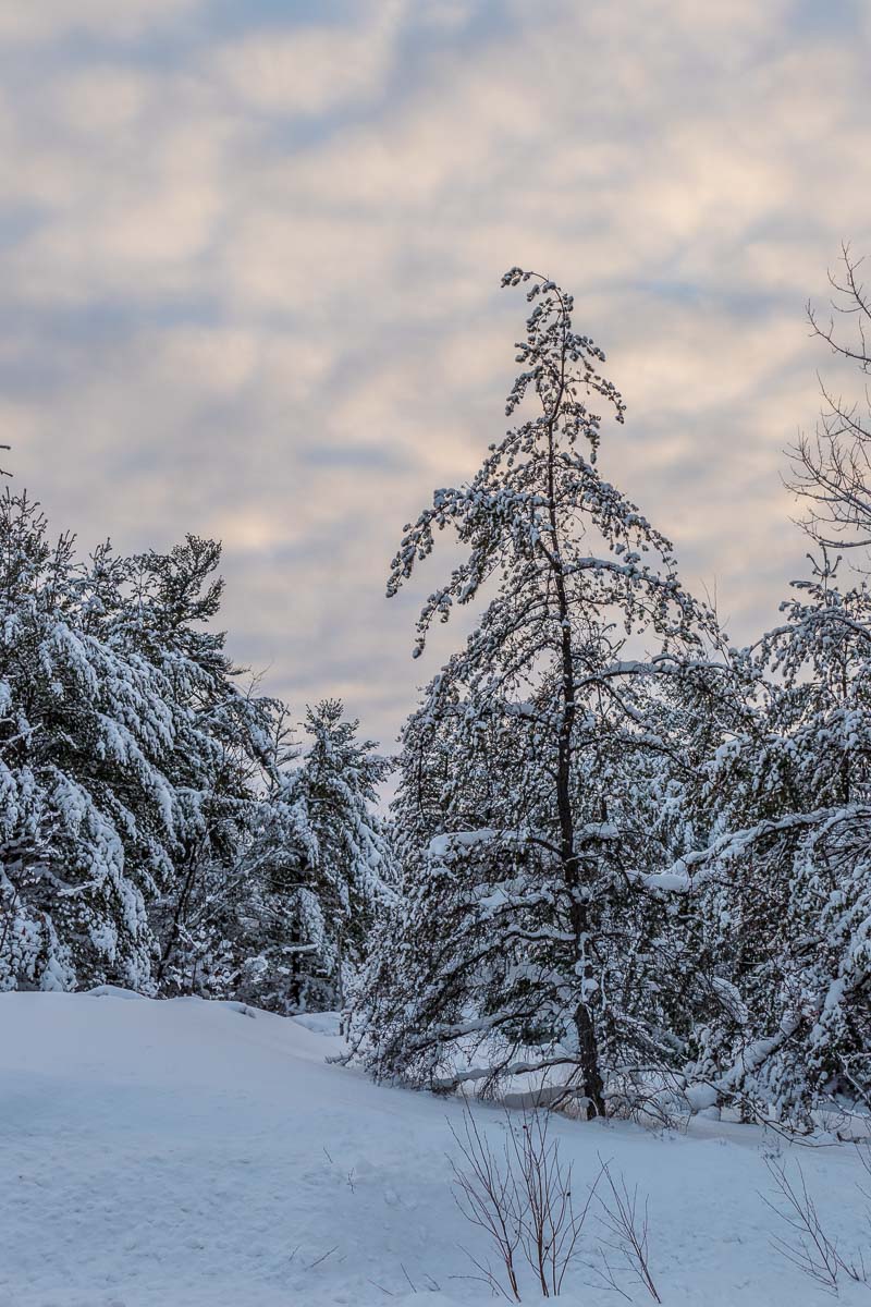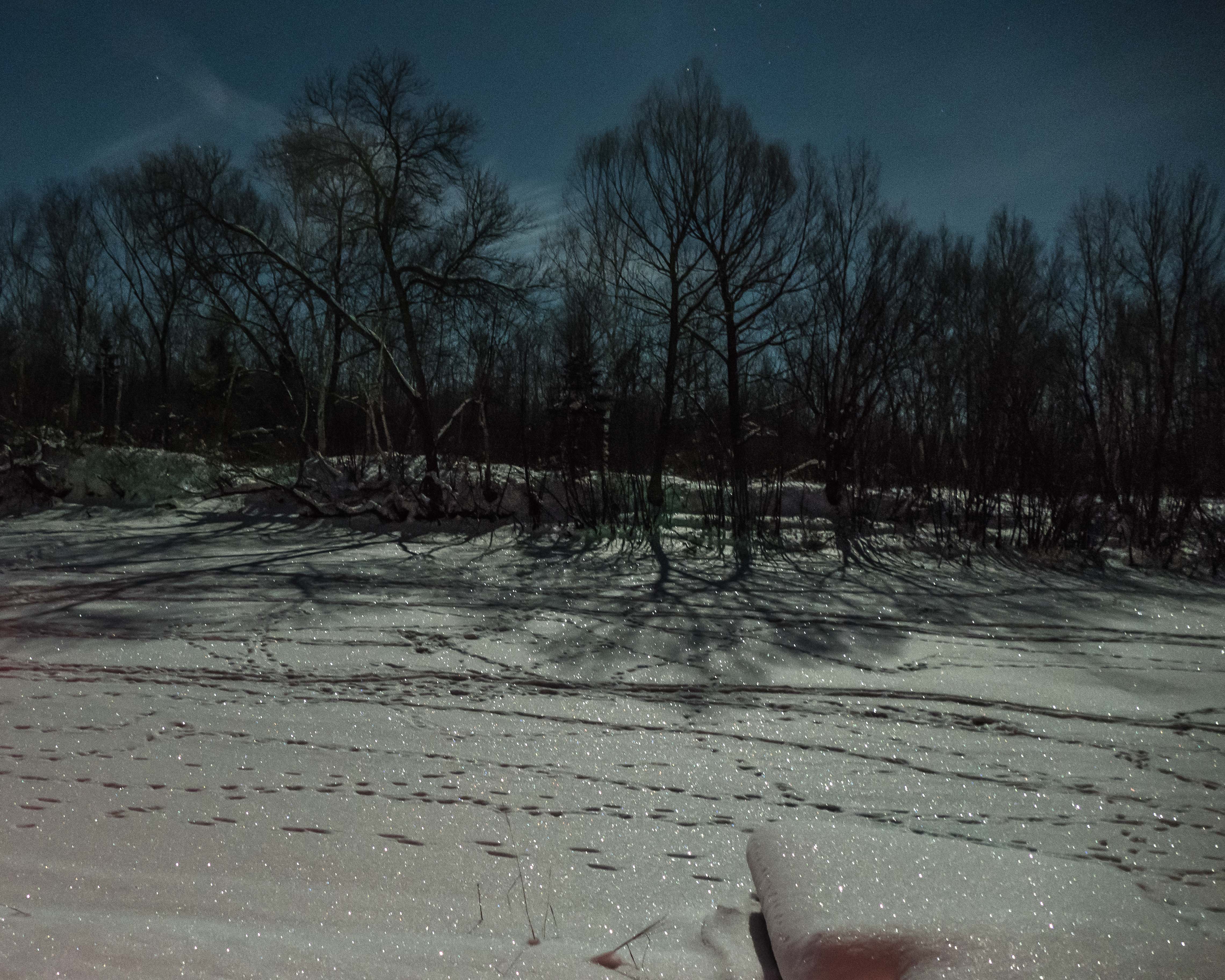 If you click on any of the four above images you’ll see the jiggle in the sparkles, the noise in the dark areas, the lens flare and the orange cast made by the car’s clearance lights. It was quite a chilly night (-20ºC) so I didn’t get the tripod out. If we get fresh snow and a clear night near Feb 22, I’ll try again using a tripod, to get exposures around 8 seconds or so. That will fix up the jiggle and improve the signal/noise in those shadow areas. In fact I just realized that a night or two ahead or after full moon, will probably be the best time to try. If you are interesting in the camera set-up, there is a technical discussion on DPR. An interesting challenge!