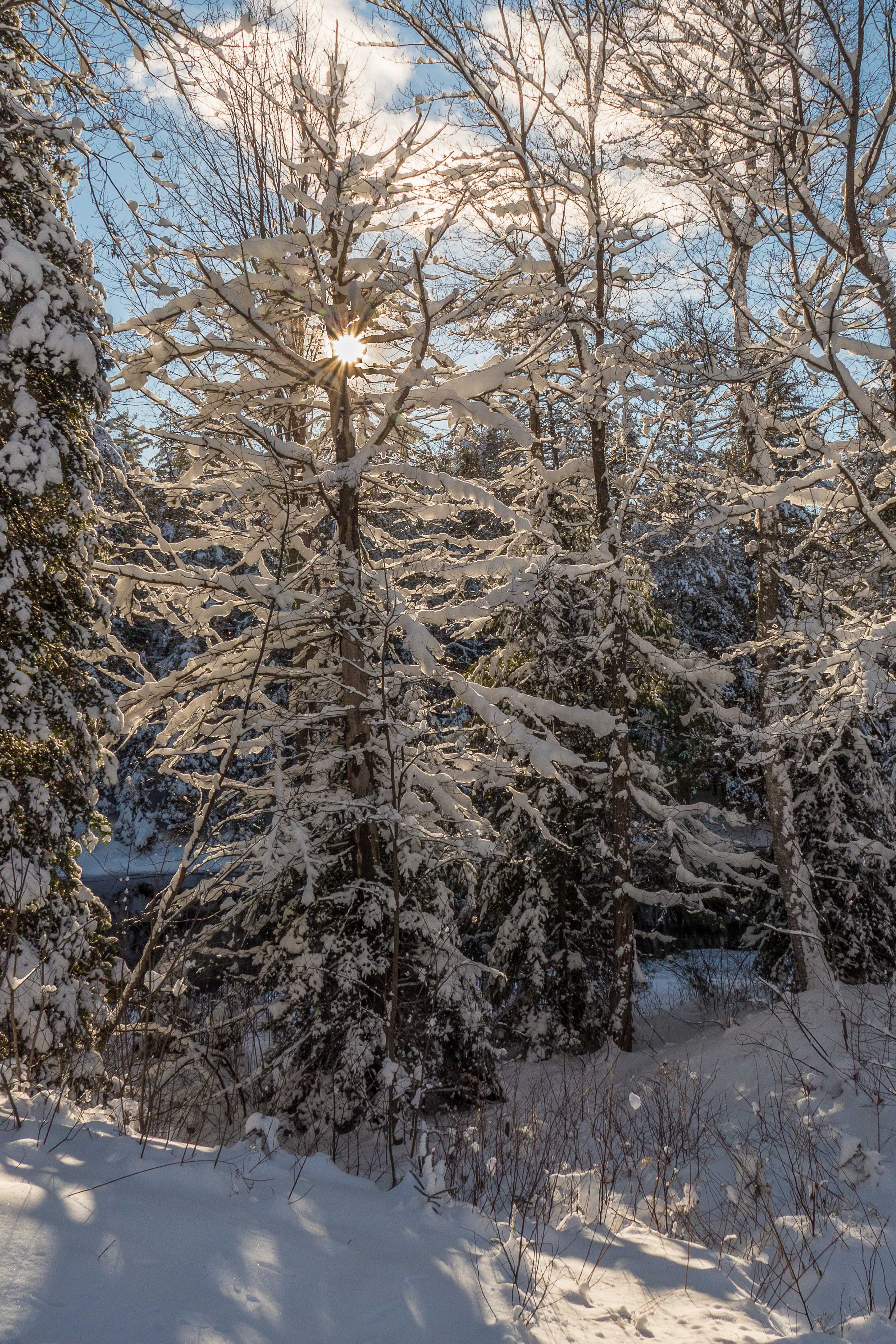 We had some interesting sunlight illuminating snowy scenes lately. Some examples:
