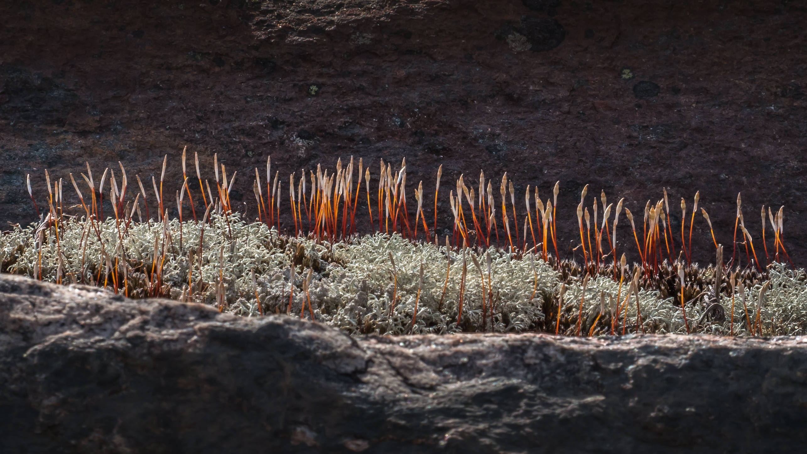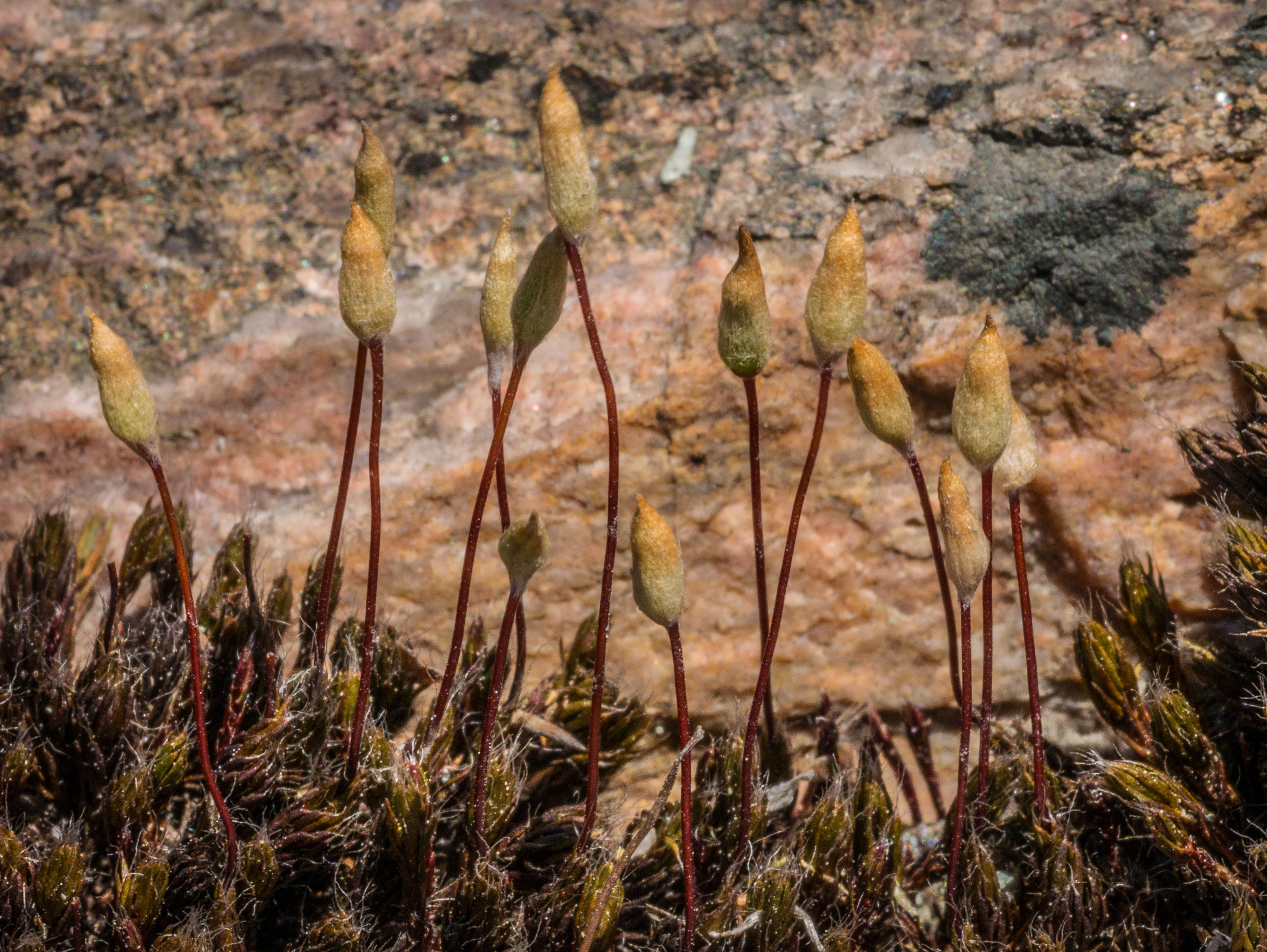 We are patiently waiting for the next stage in the development of these moss spore capsules.