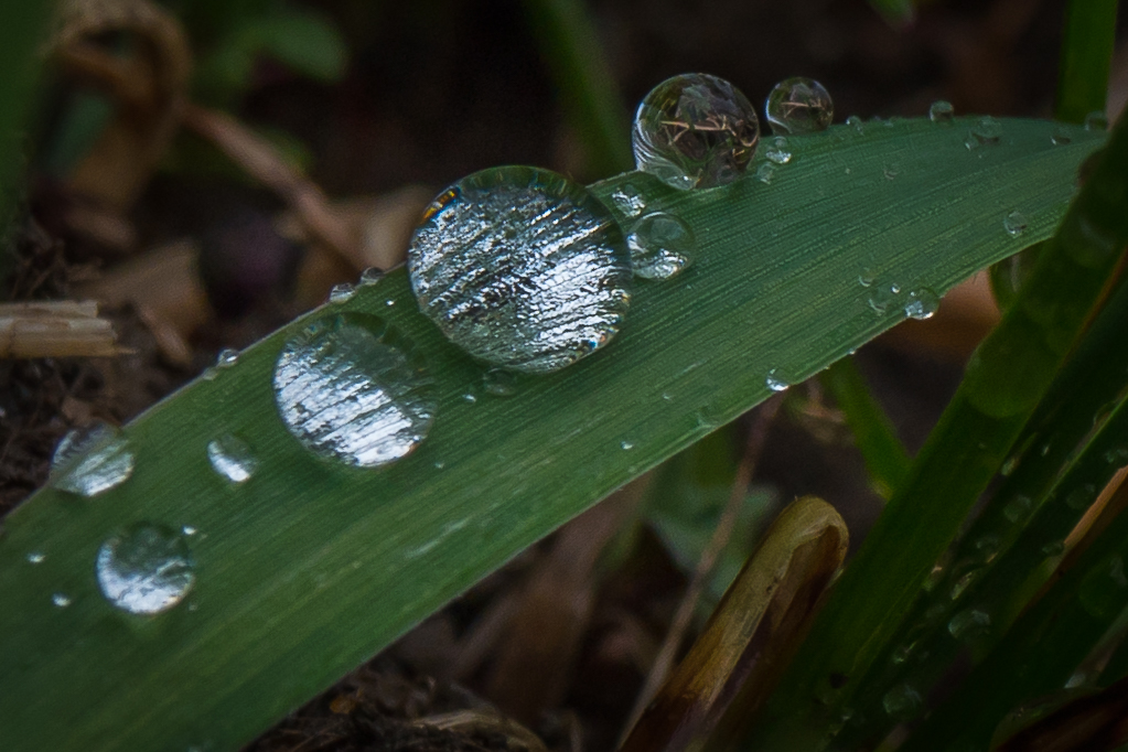 Spherical lens showing the parallel veination, typical of this (monocotyledon) leaf.
