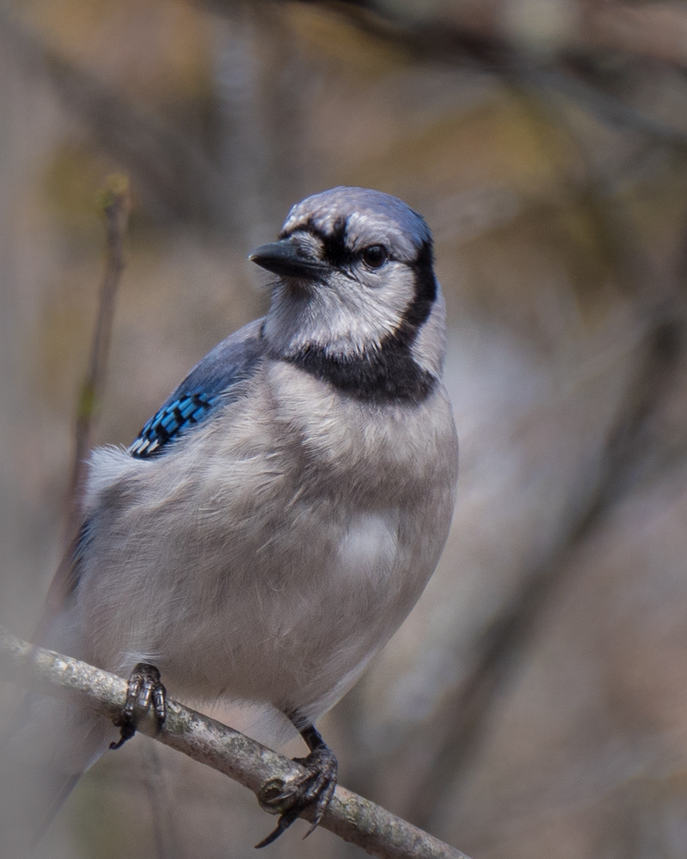 A Blue Jay around the spot where I saw a pair carrying twigs the other day — an area worth monitoring: