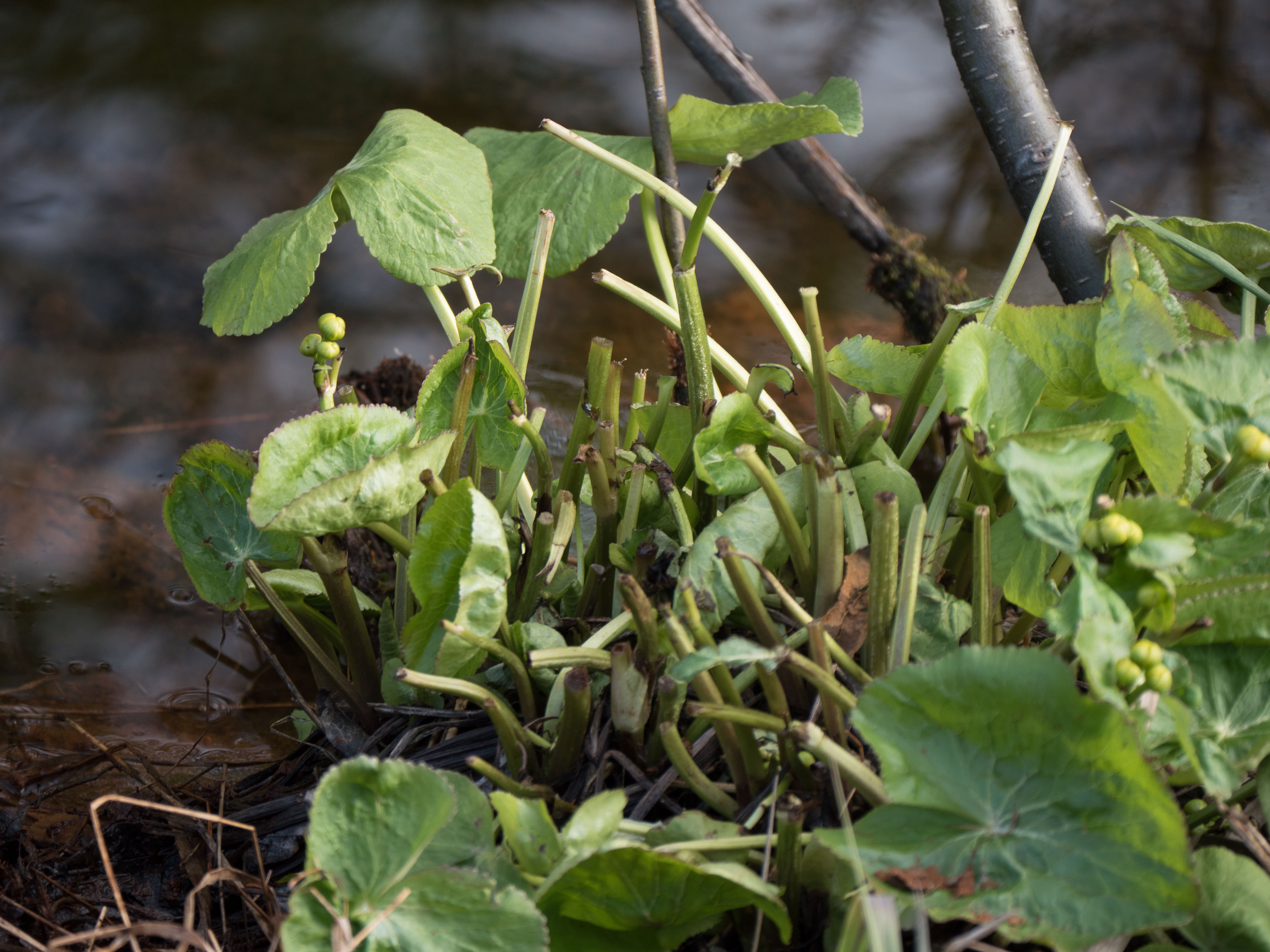 There were some heavy tracks in the grasses along this stream, so I suspect the Marsh Marigolds are Moose food.