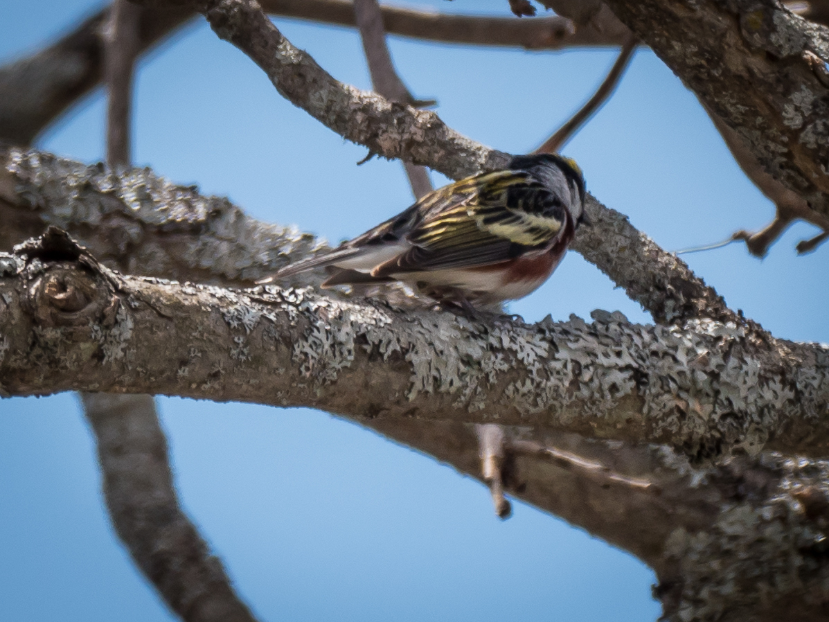 Yes! A chestnut sided Warbler flitting from branch to branch, searching for bugs in the Aspens.