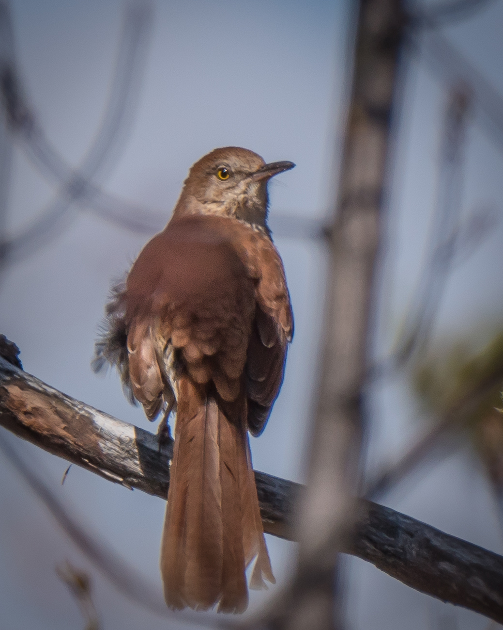 On our way home we saw this Brown Thrasher lounging around in this Aspen tree. Click on the Typical Voice on the above link to hear the variety of voices that this bird has.