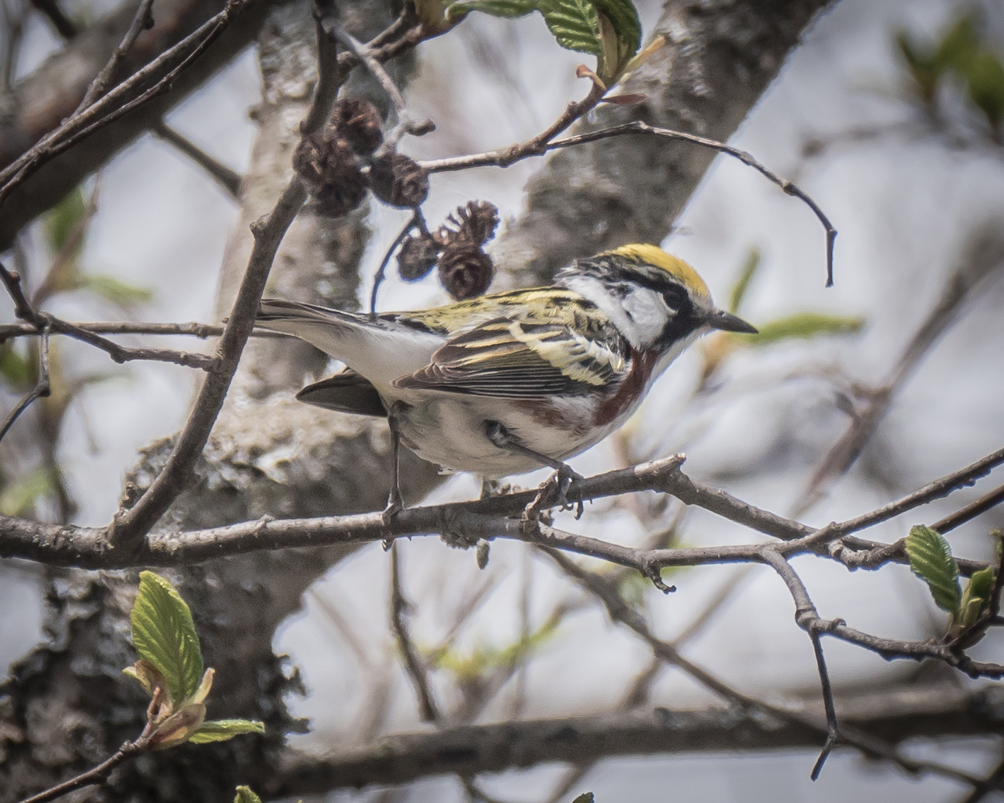 I saw a Chestnut-sided Warbler gleaning an Aspen tree, then move to an Alder Clump: