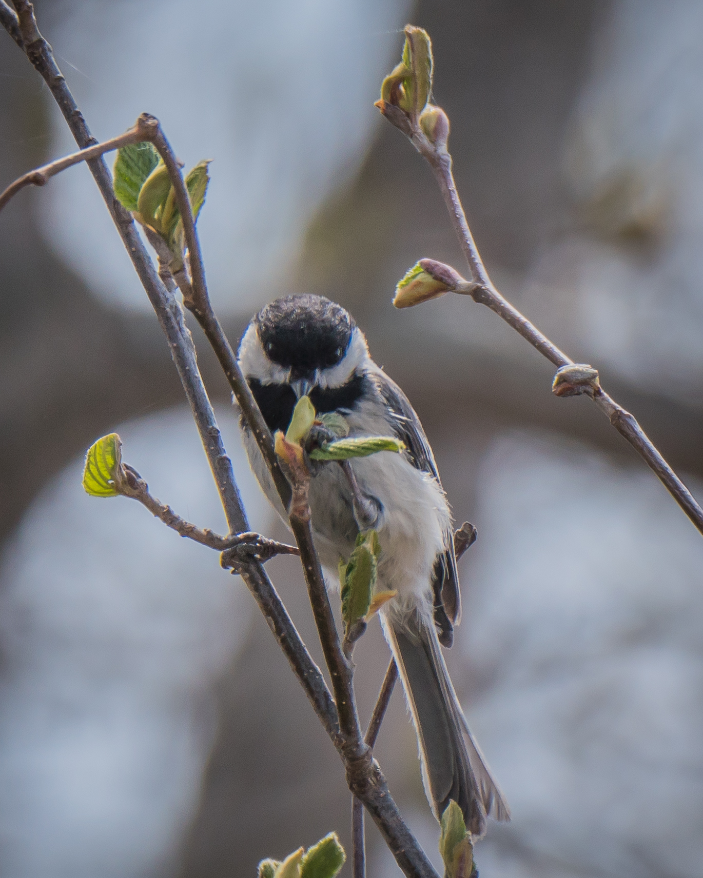 Breeding time requires lots of protein for birdies. So springtime is a perfect time to glean trees, shrubs etc for newly hatched insects (from eggs that over-winter in bud clusters.) Chickadees are omnivorous and stay around all winter, eating seeds (especially sunflower seeds at birdfeeders). Warblers are primarily, insectivores giving them a good reason to migrate, annually removing “pests” from vegetation all the way from South and Central America to Northern Ontario.