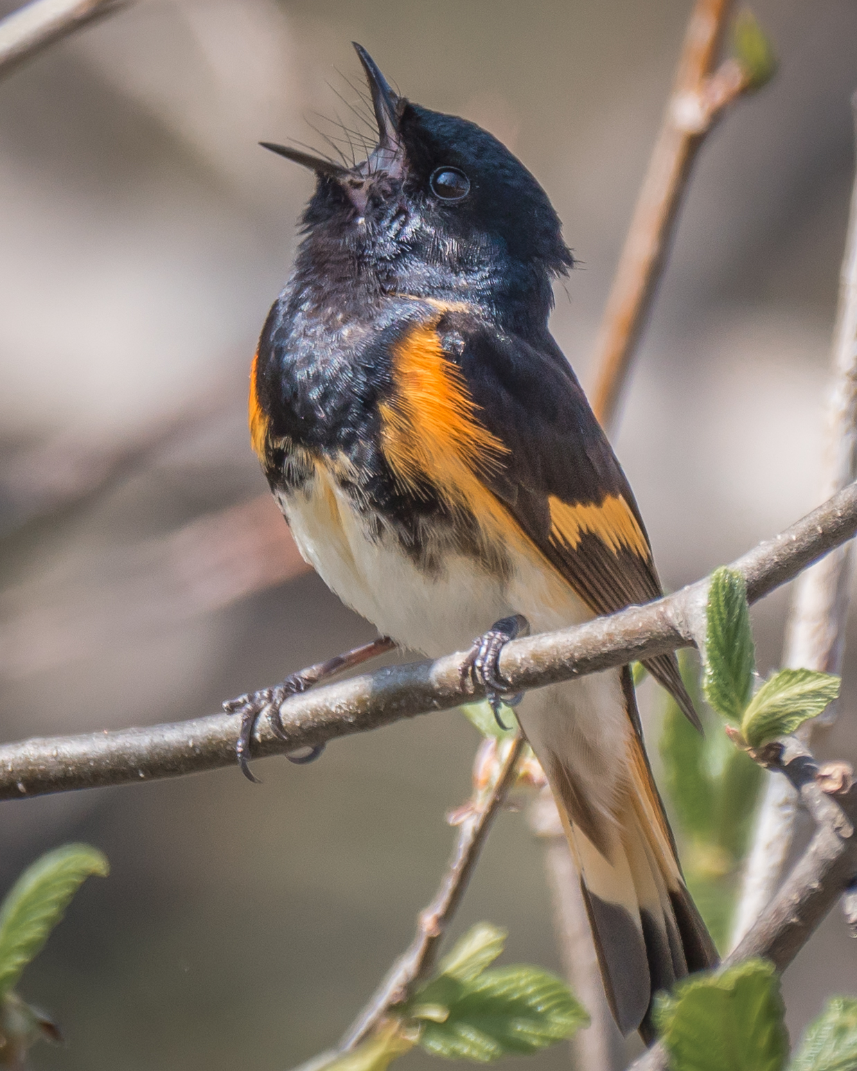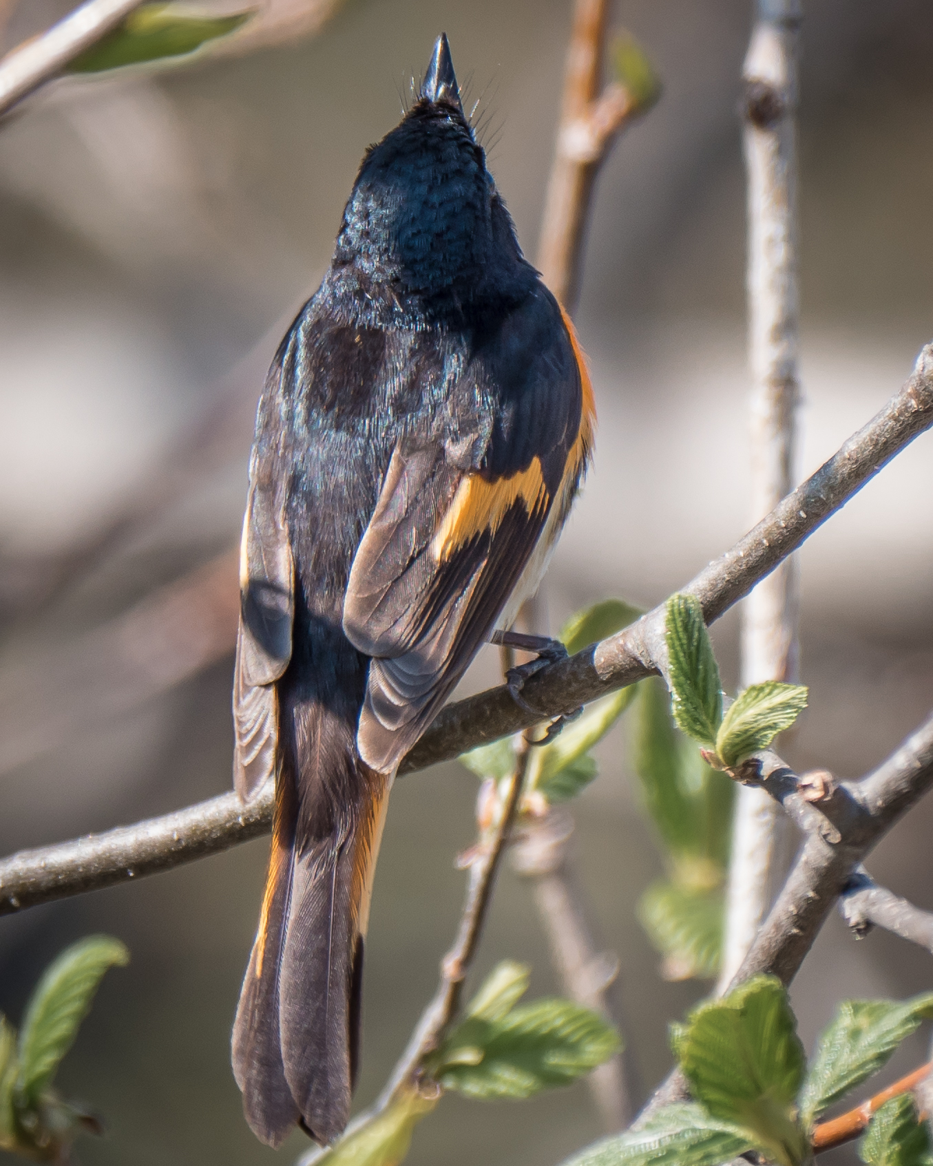 The warm sunshine is pushing the spring ephemerals right along so we spent some time enjoying some of our favourites yesterdays. Along the way we saw a pair of Spring Azures and other pollinators. We were lucky to see a singing American Redstart who did his stuff in front of us. Rictal hairs, remember?