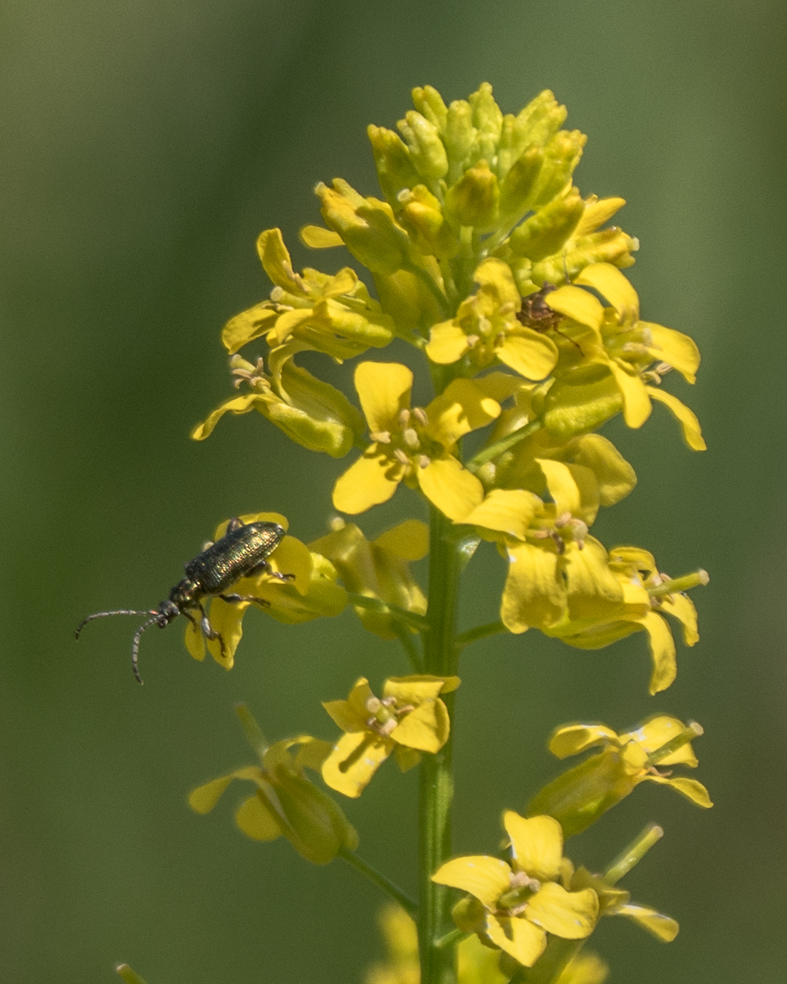 The wild mustard was blooming profusely at Burwash.   This bloom’s visitor looked ready to leap!