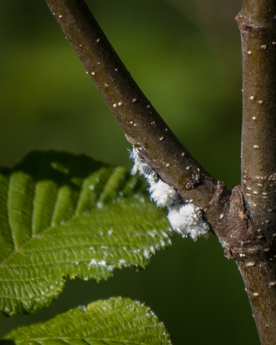 The grey body enveloped by the white fluff is a Wooly aphid, unpopular with gardeners and horticulturists.