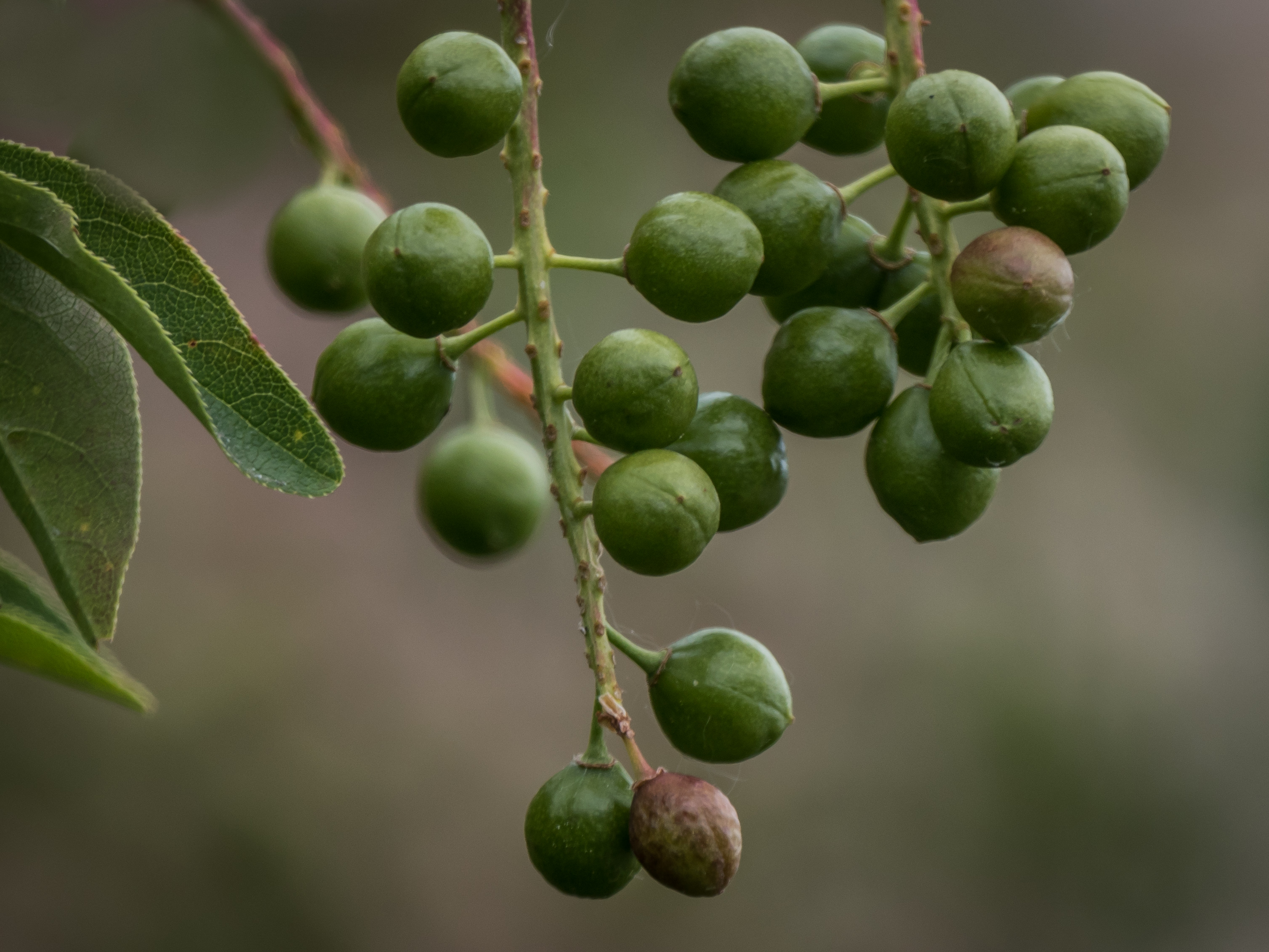 “The pale yellowish-green flowering clusters of the male plants can reach about 30 cm long. They are much bigger, by half again, than the greener and more compact clusters of flowers of the female plants. Flowering starts in May and continues into June, and the fruits are ripe from July onwards. The flowers are highly attractive to a diverse array of insects that serve as pollinators. Many kinds of bees, wasps, flies and beetles can be found visiting the flowers. Staghorn sumac is a valued source of nectar for honey production. It is interesting that the flowers of the male plant provide both pollen and nectar to pollinators mostly in the morning, and the female flowers provide just nectar in the afternoon. Thus, the pollen is removed from the flowers of male plants in the morning, but after they stop secreting nectar, the insects switch their attention, and transfer pollen, to flowers of female plants when they secrete their nectar in the afternoon.”