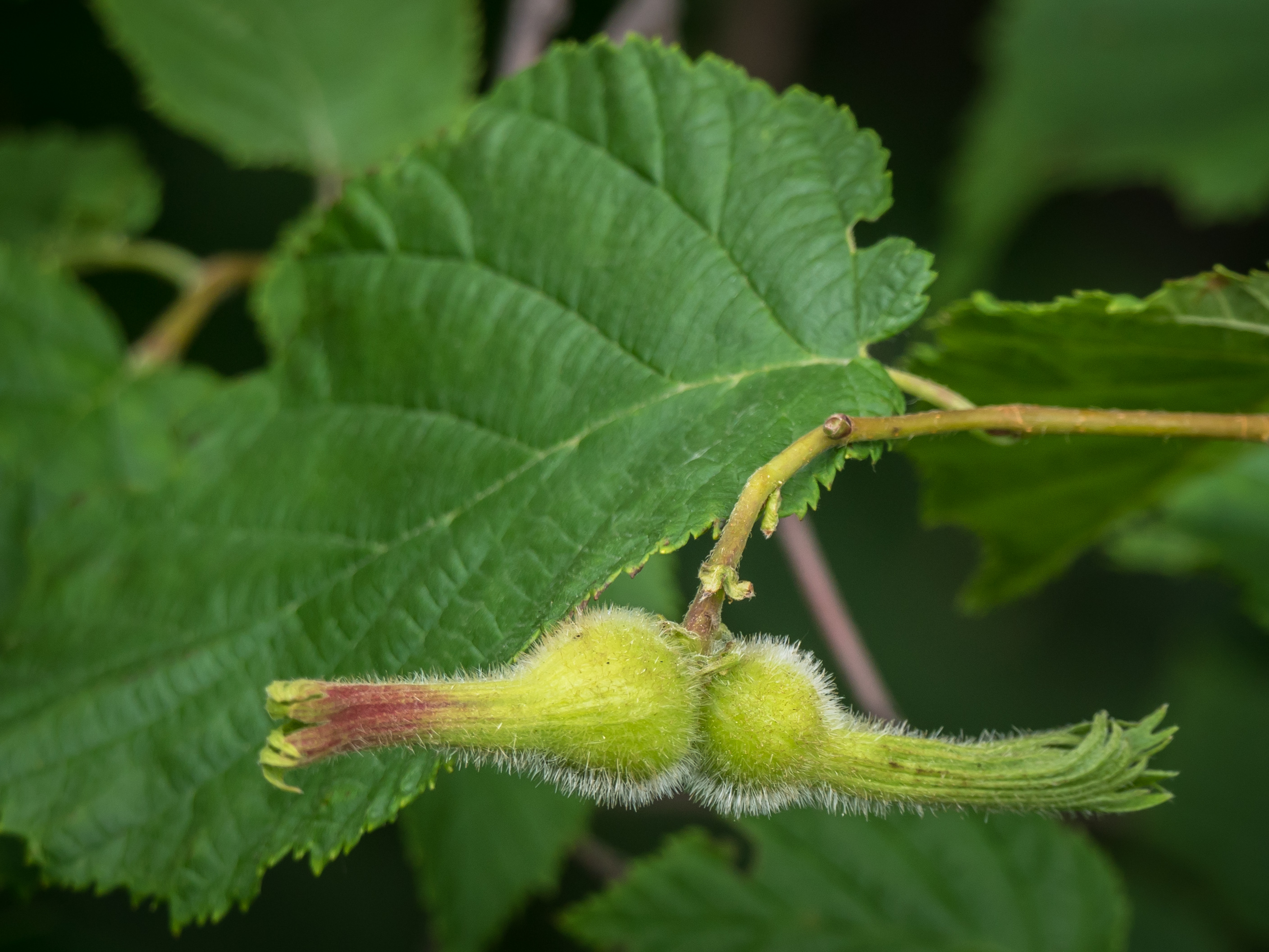 Two hazelnuts in their husks are maturing from those blossoms we saw in March /April.