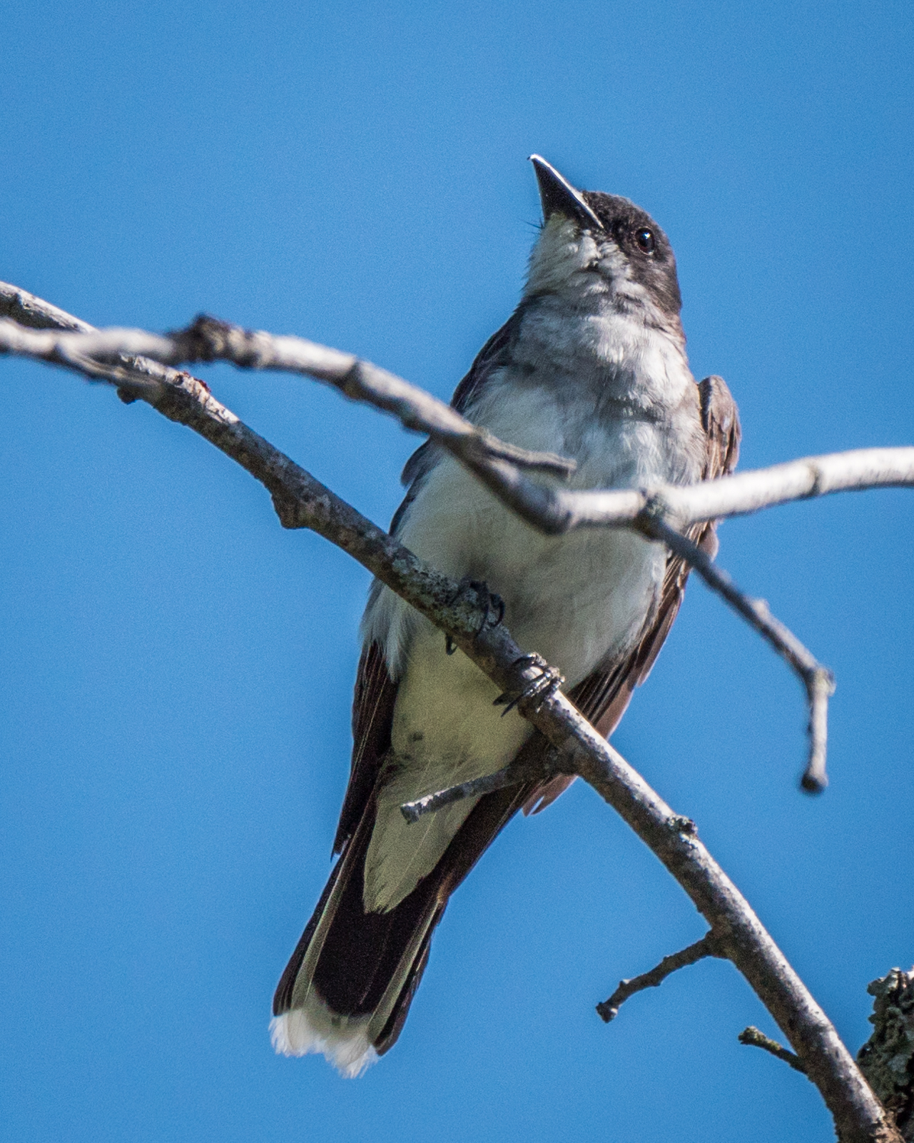 Rictal hairs …. a giveaway to an insectivore used to catching prey in the air… An Eastern Kingbird.