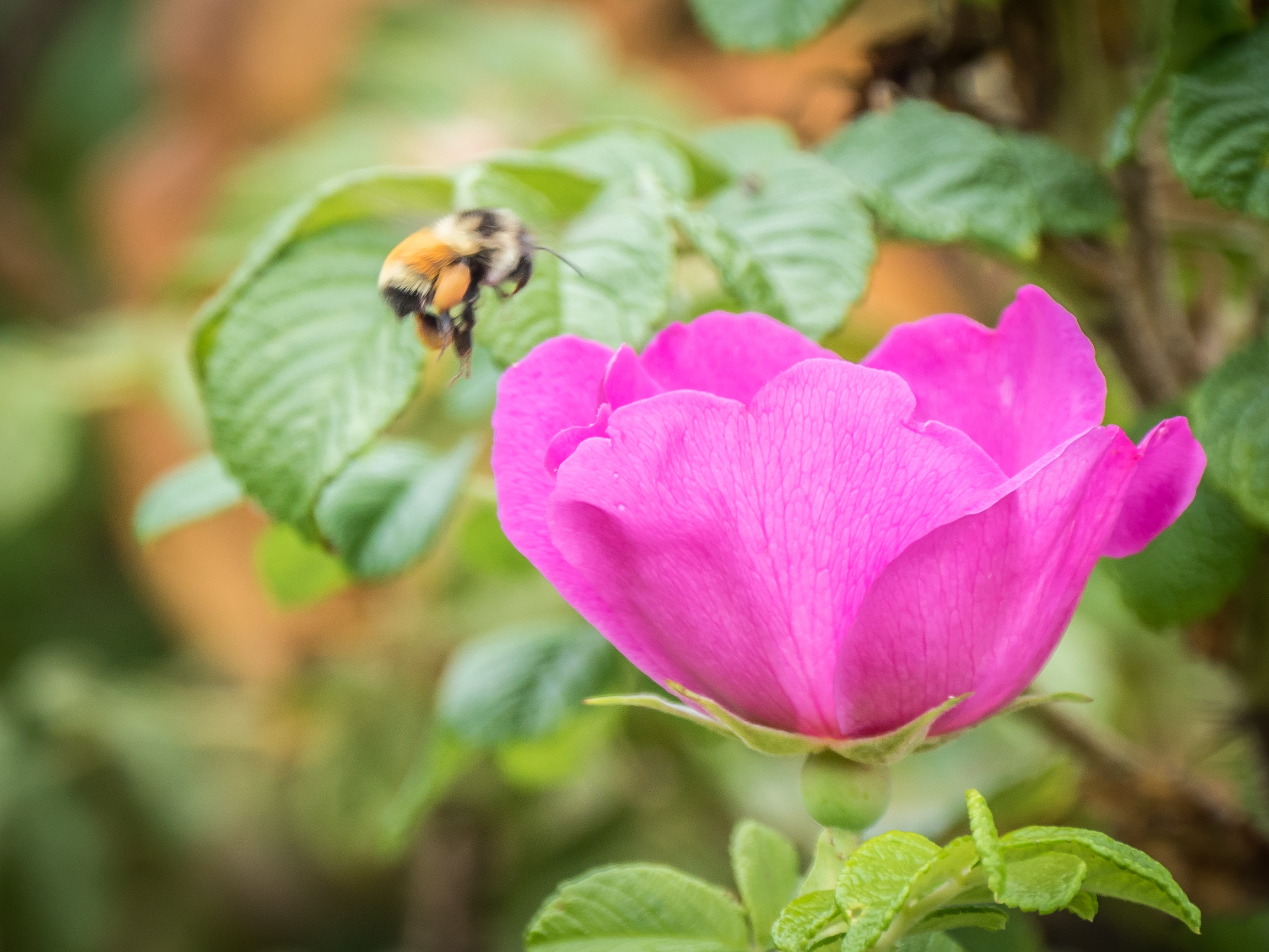 Bumblebee coming in for a landing on the last of the wild roses …