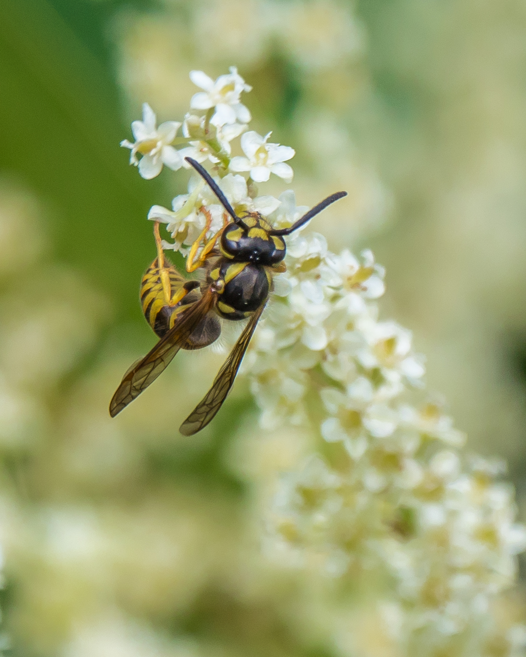 Wasp on cultivated goatsbeard blooms.