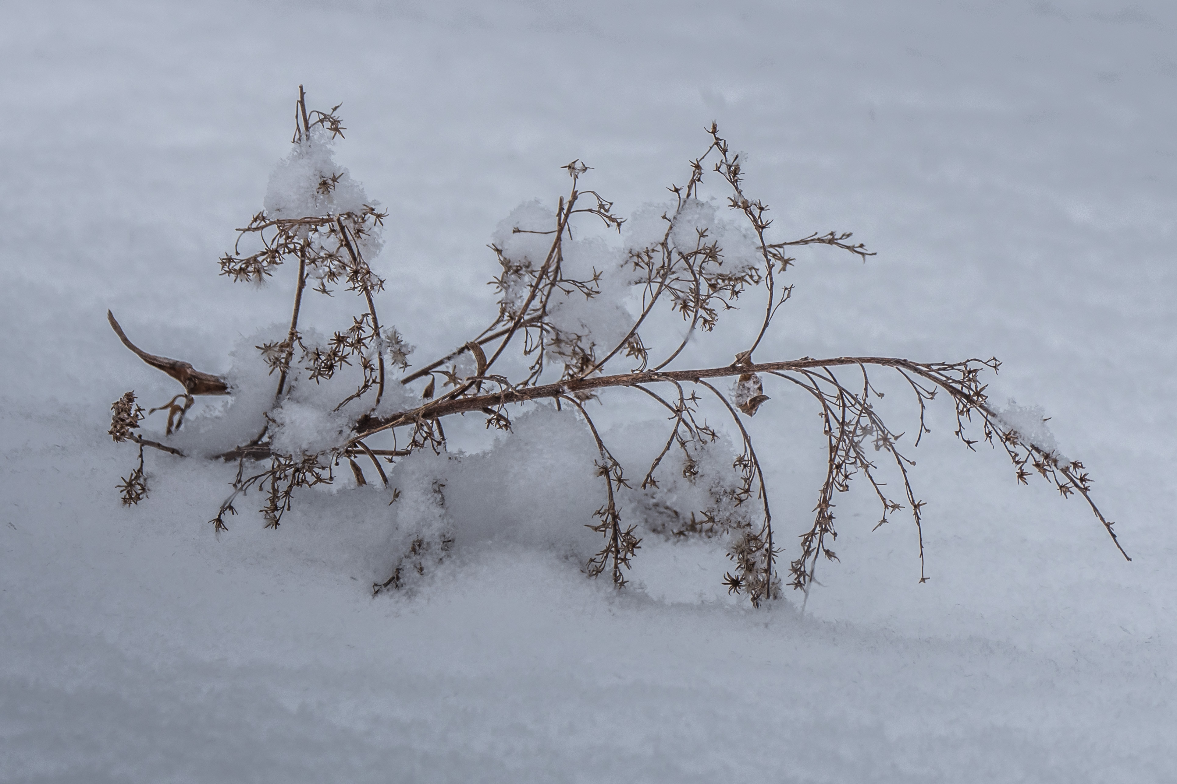 Remnants of a freezing rain episode reflecting light from the “sunburst” — which is caused by light diffracting from the 5 bladed iris controlling the aperture in the Voigtlander manual lens. If the number is blades is odd, the number of spikes is twice the number of blades. If even, the number of spikes is equal to the number of blades. See diffraction spikes.