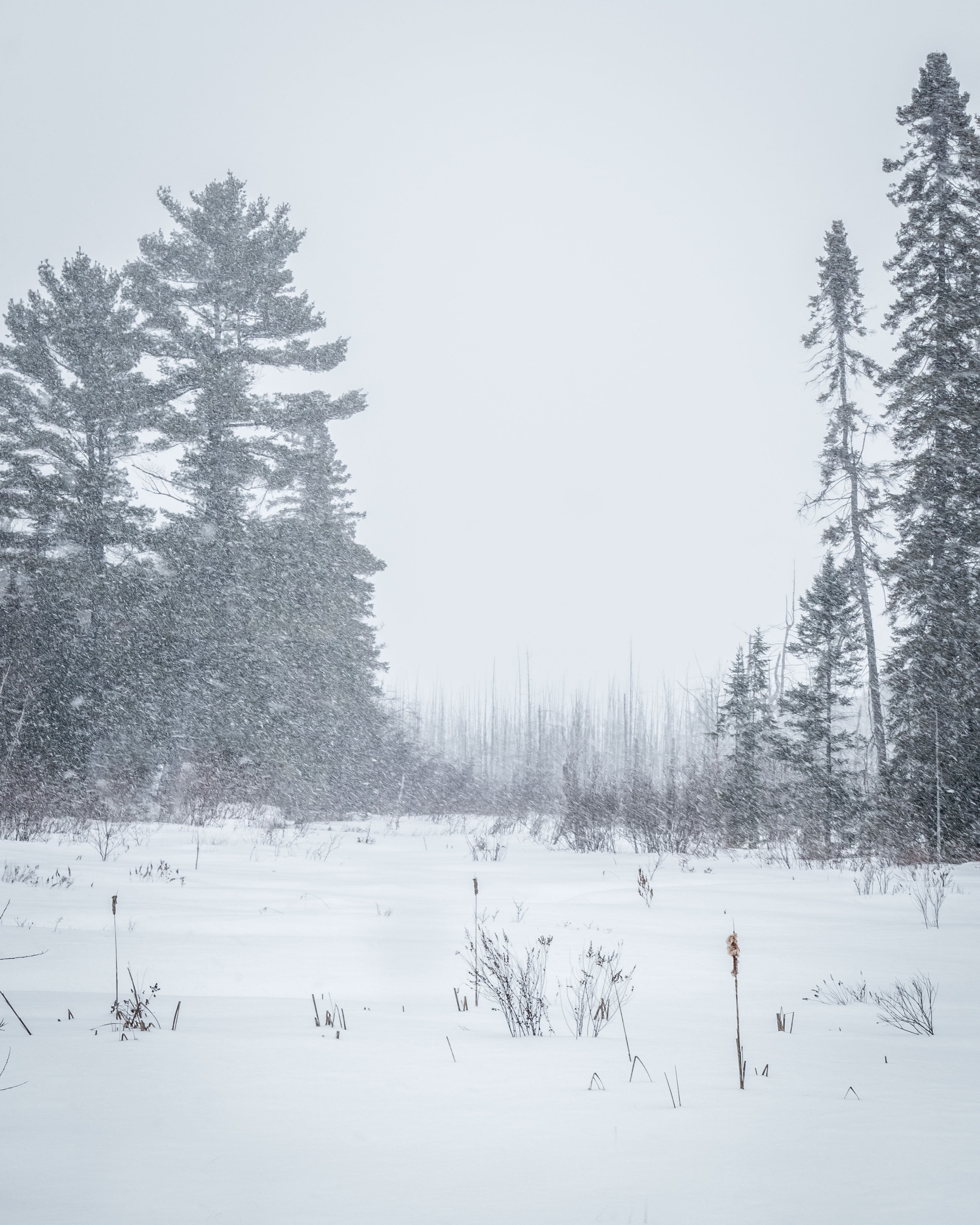 Snowstorm along Hwy 529, just south of the road to Byng Inlet.