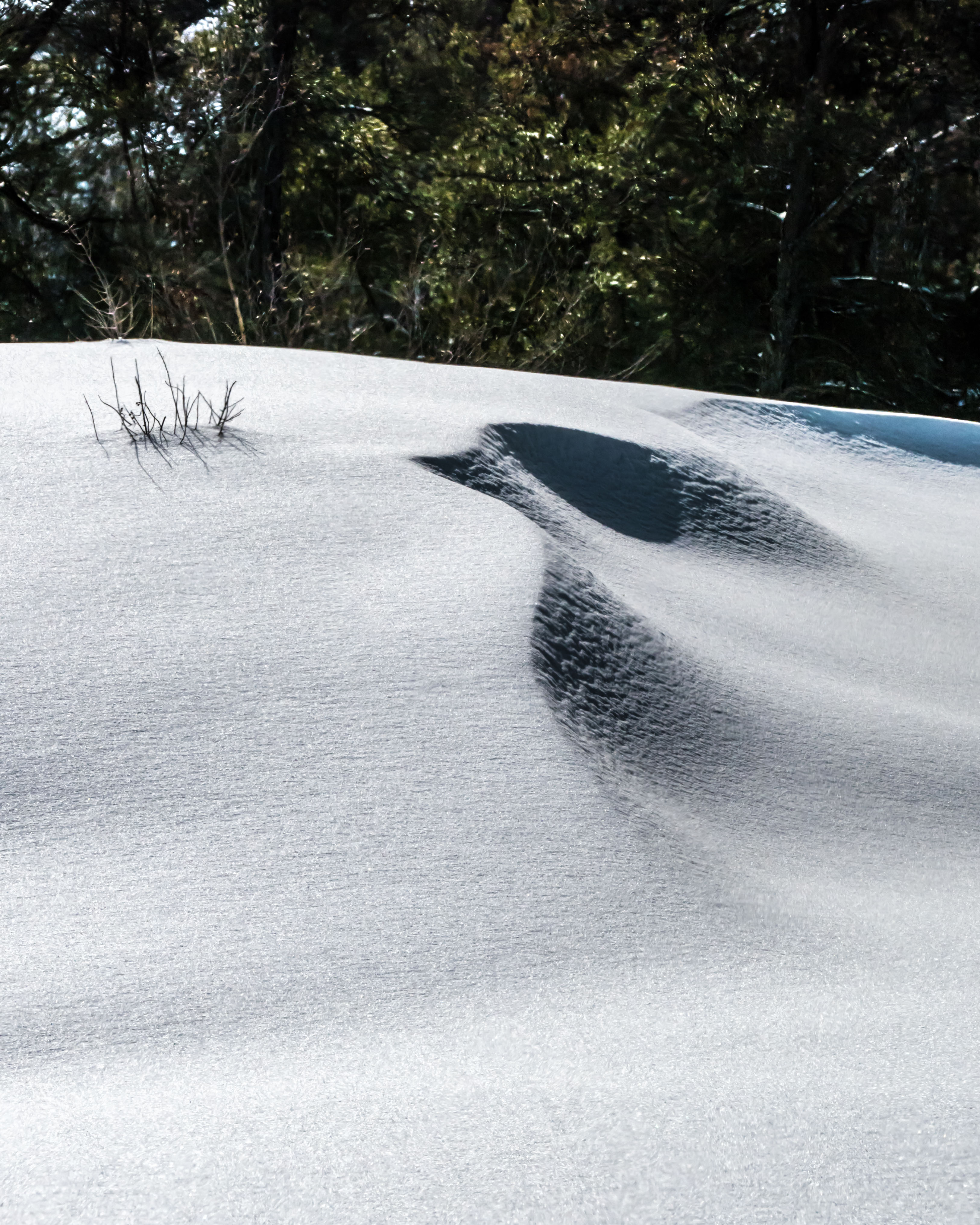 A couple attempts to capture some of the many examples snow textures that seem to change daily, in some cases hourly;
