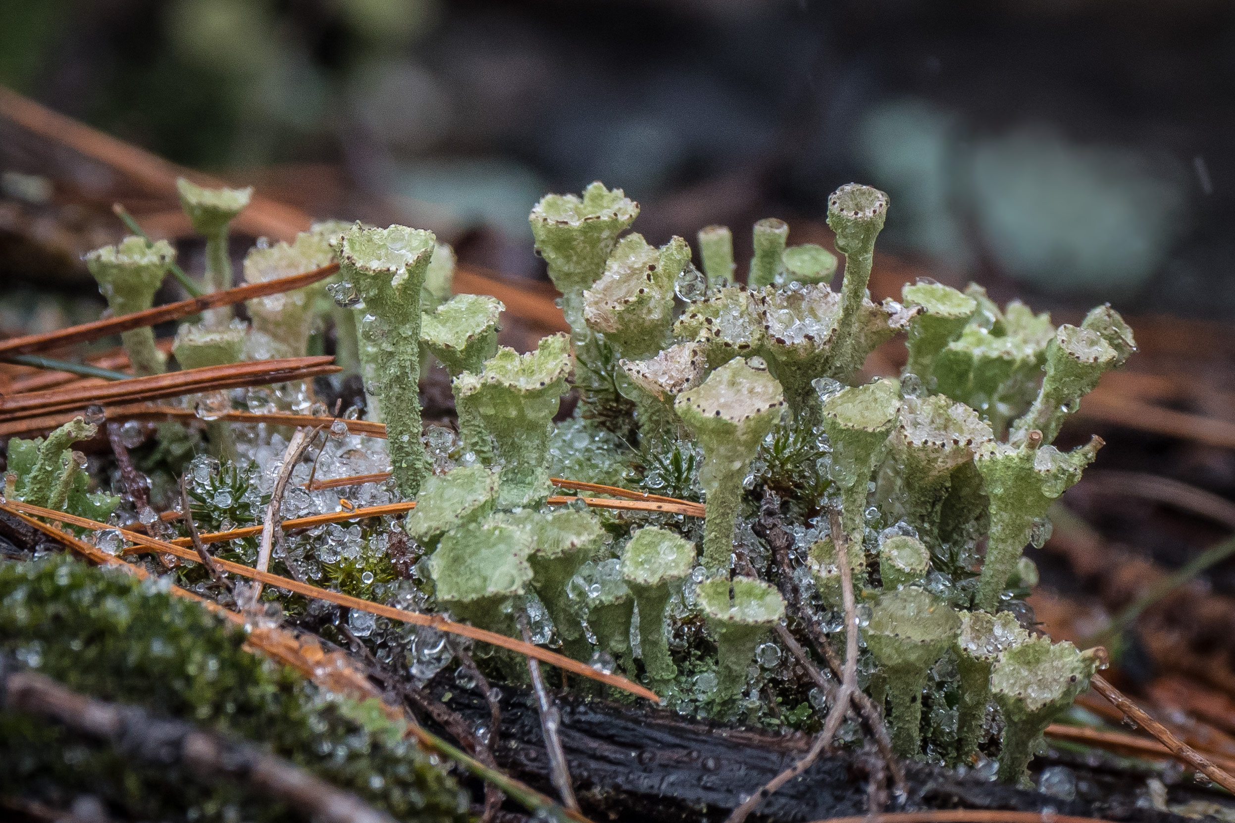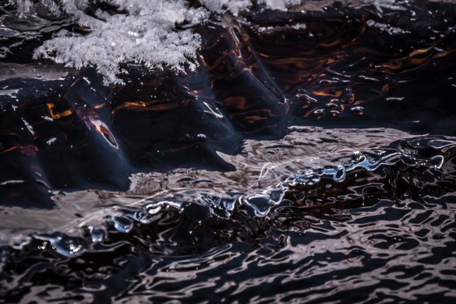 The water dropped in this ditch as the temperature dropped … giving little flowers along the edge of the upper sheet. Water still flowed down below giving some moisture for the flowers.