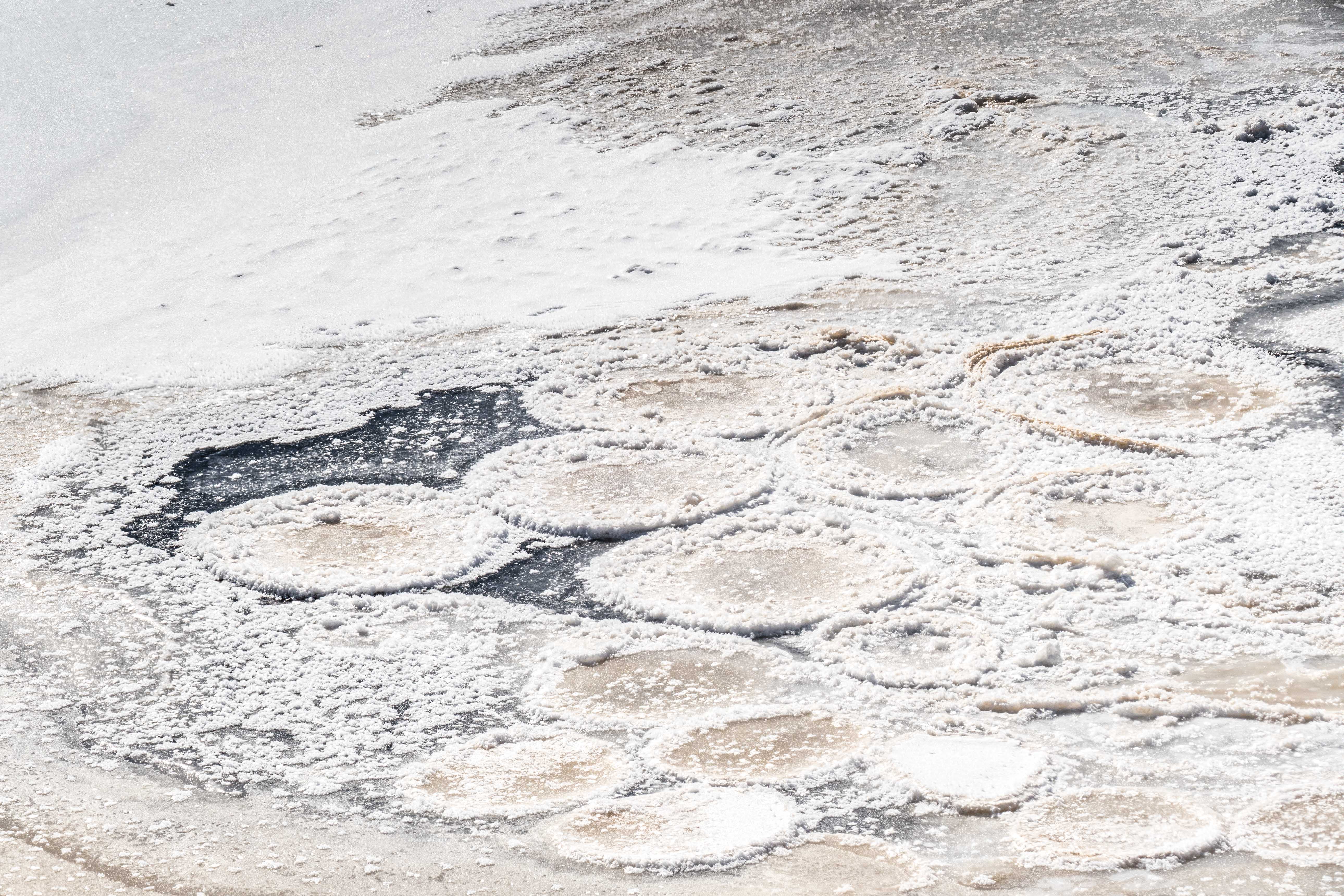 Curious pancakes of ice at the outflow of an elevated culvert into the Inlet:
