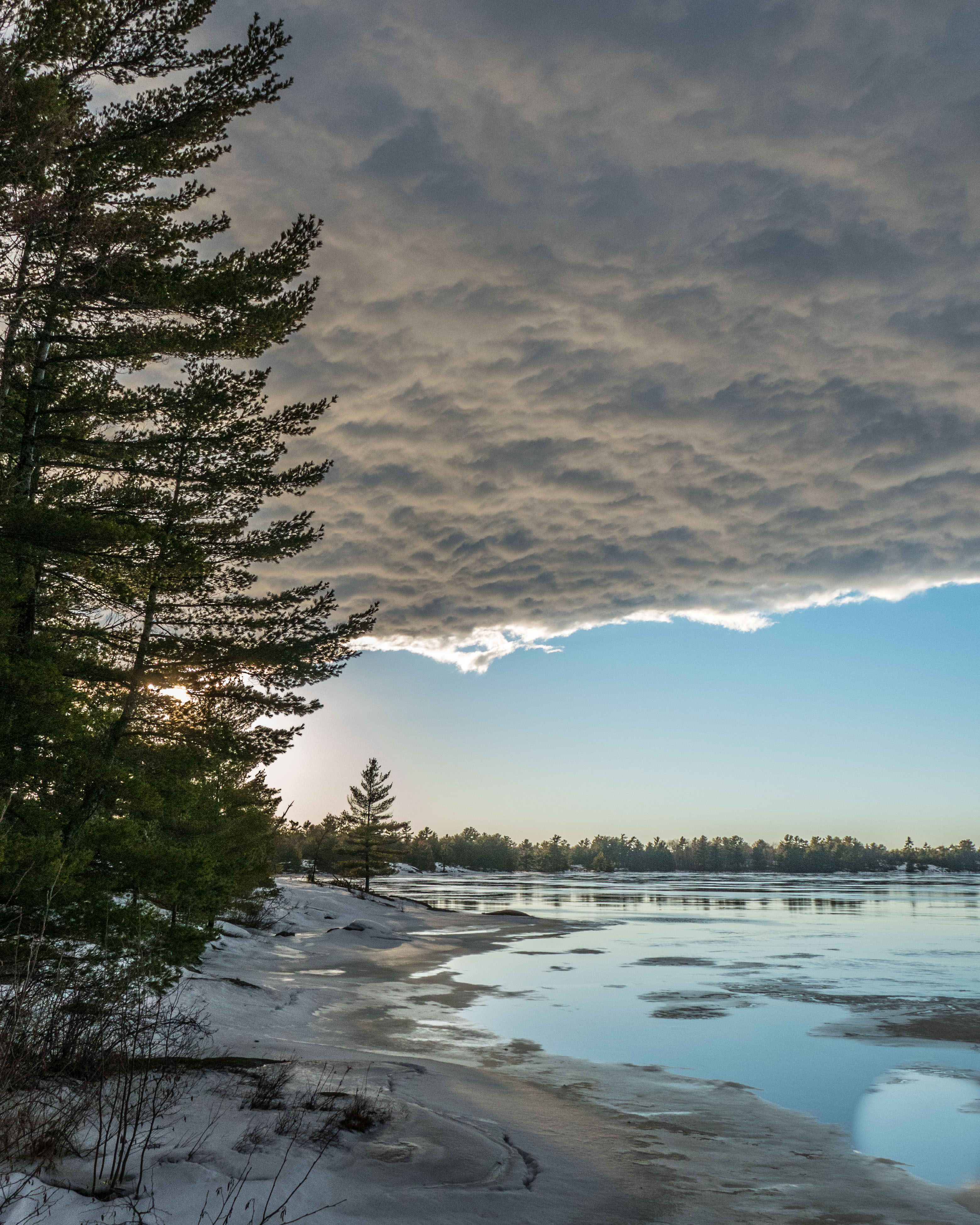 Neat evening sky at Big Lake … 3 days after this photo was taken there were ice fishers in a portable hut on the right side of this photo: