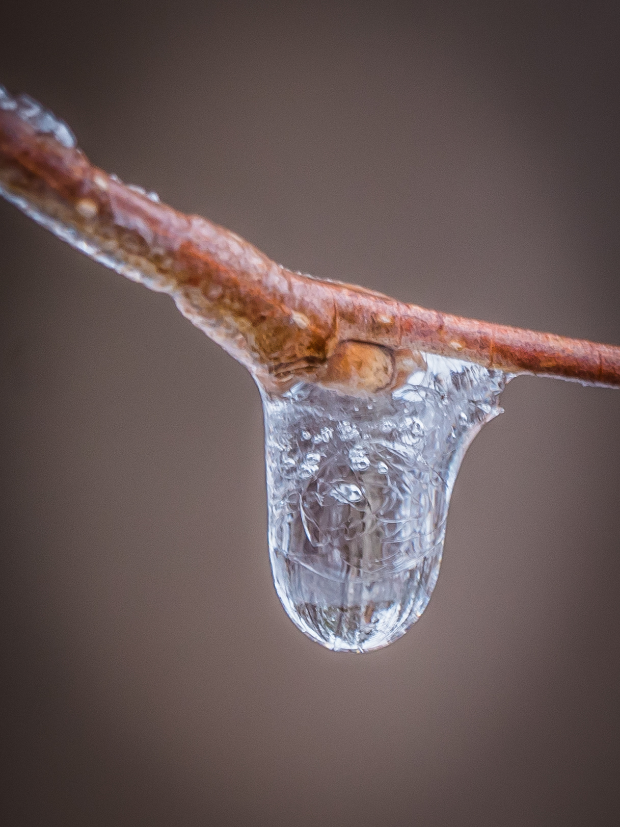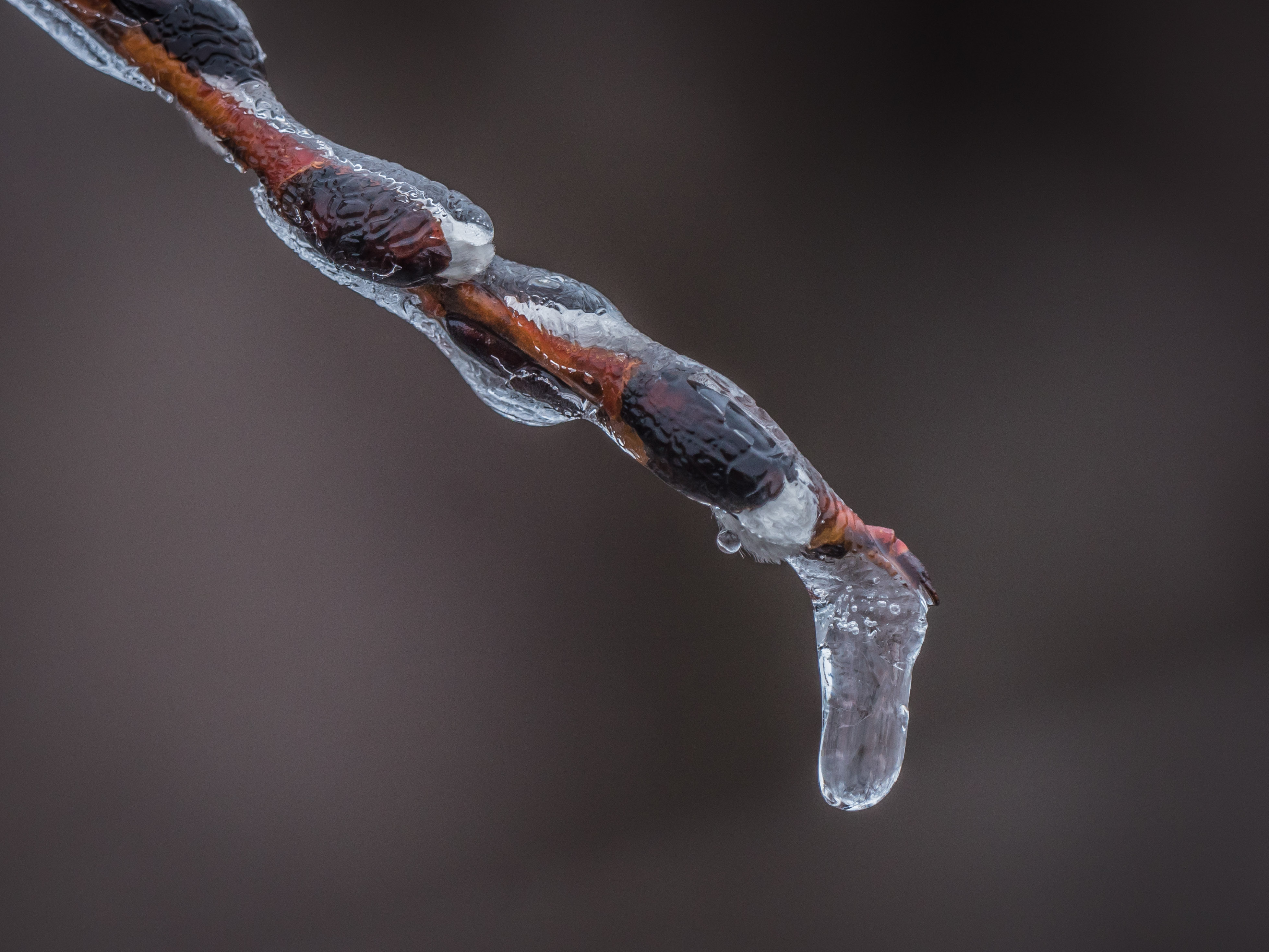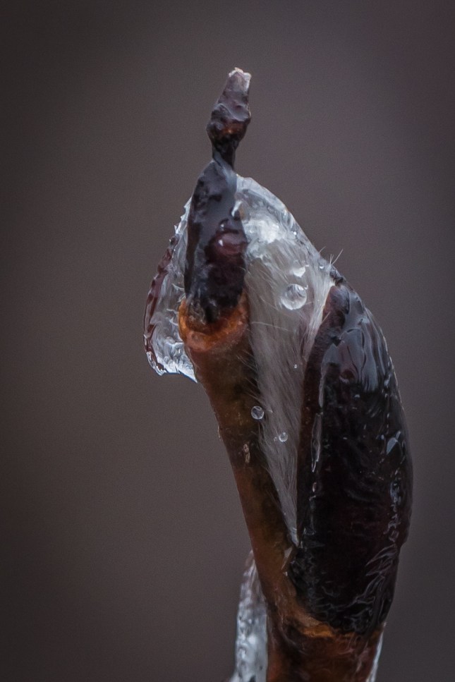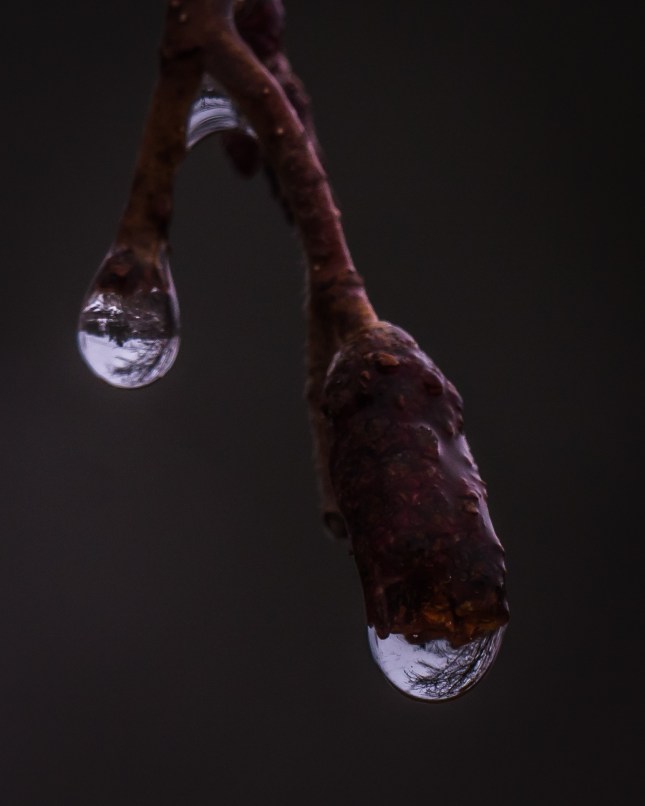 The following are photos of freezing rain drops, forming a more clear covering over buds: