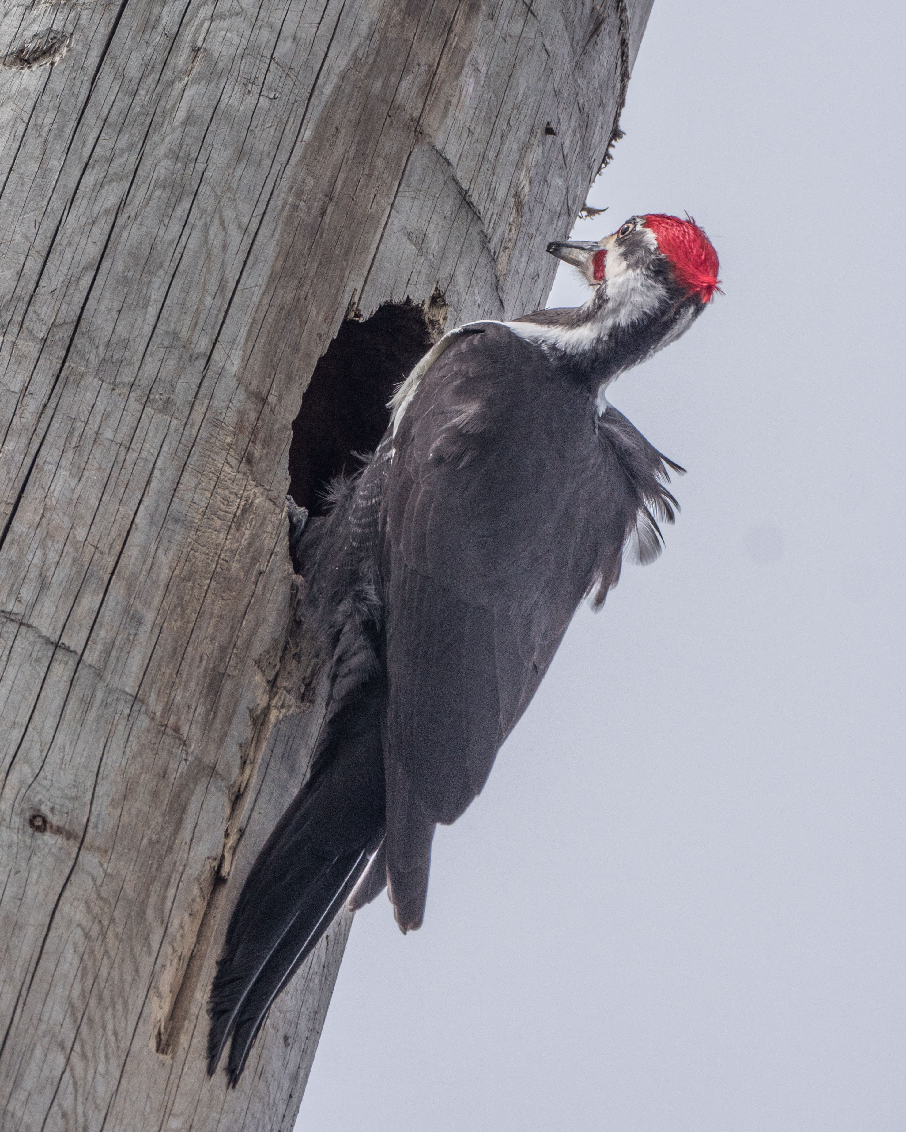 Pileated Woodpecker inspecting its new cavity…
