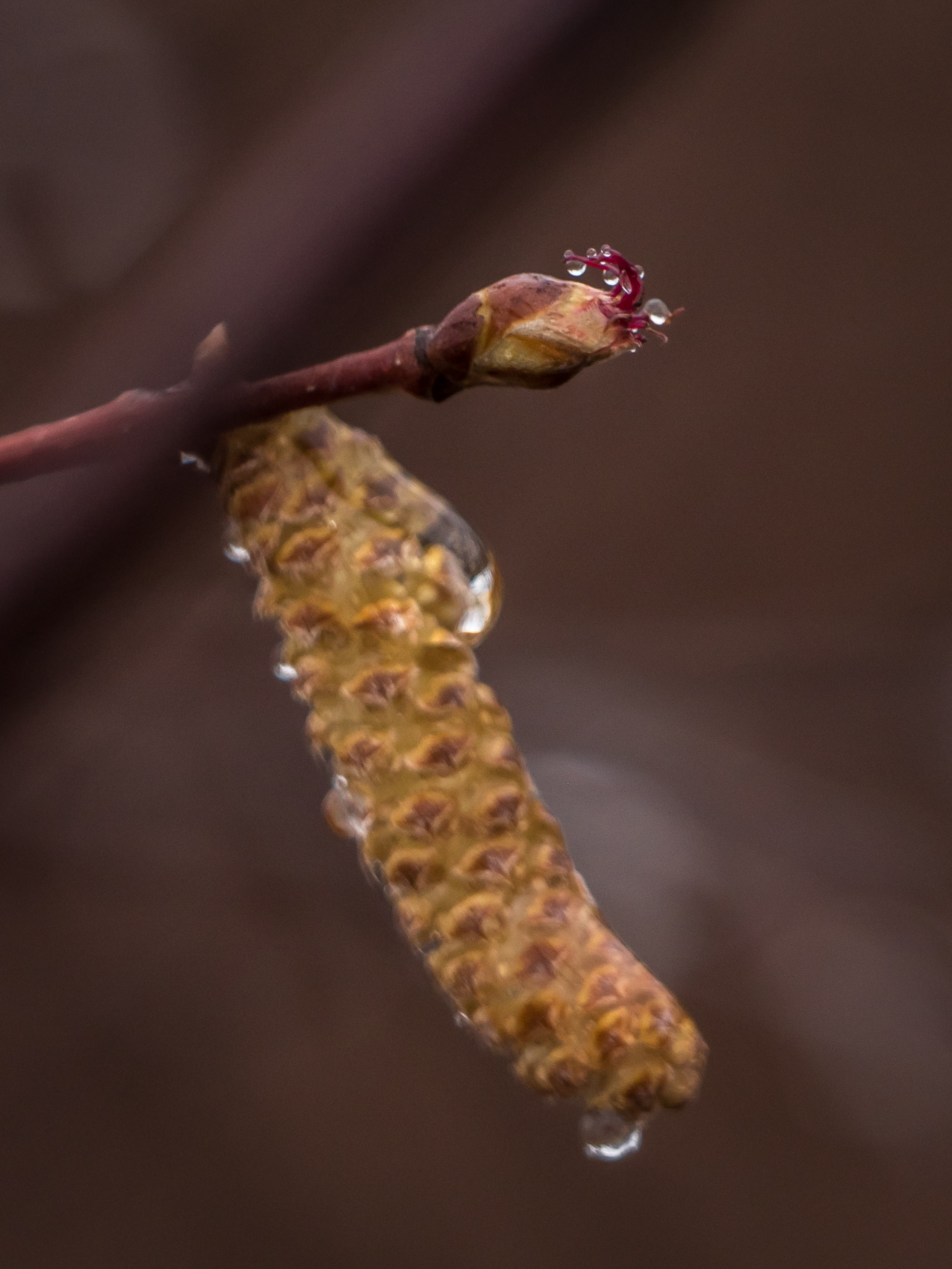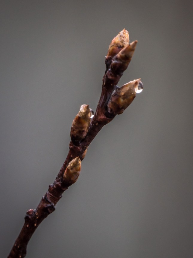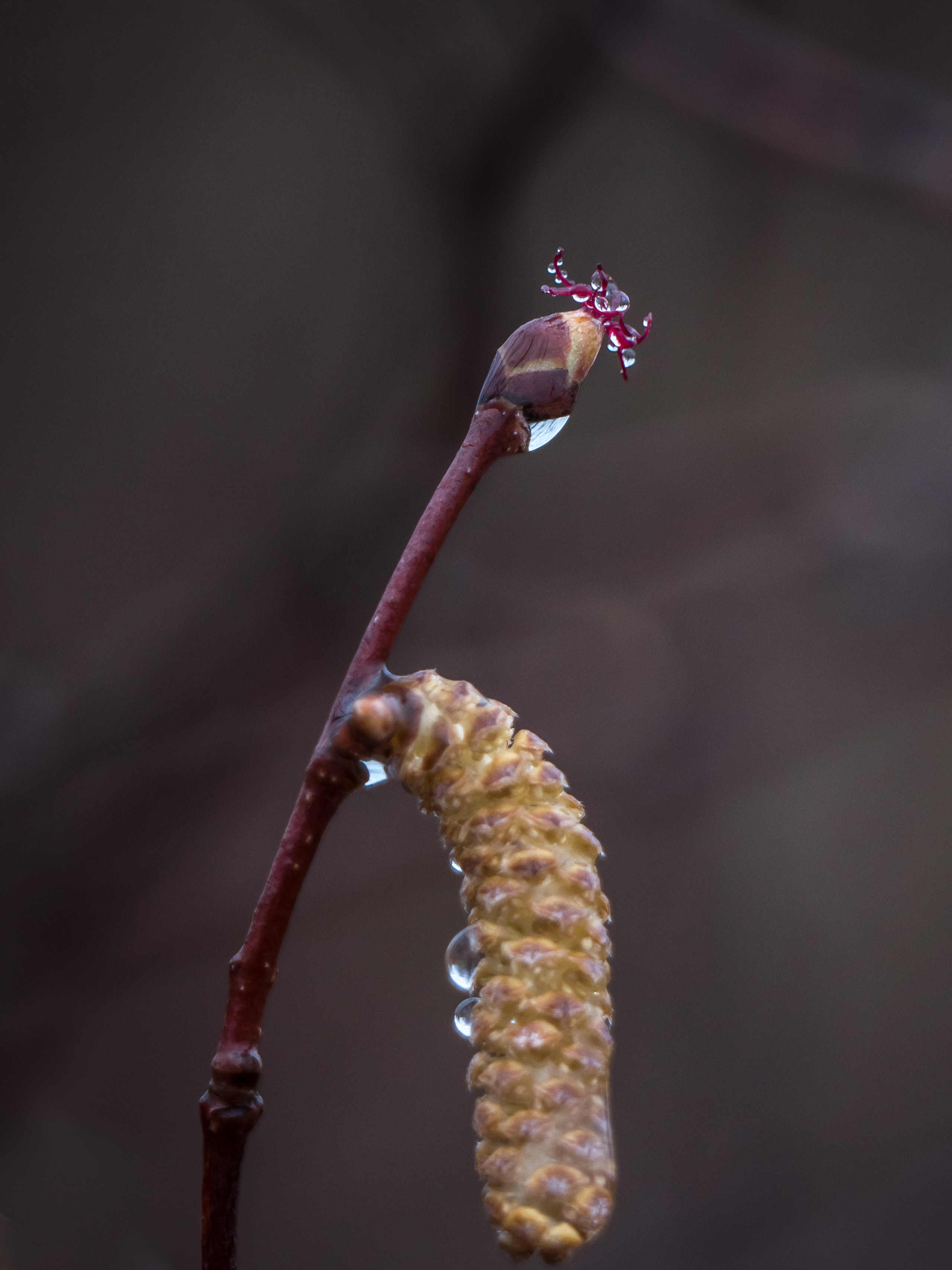 Left hand holding the branch, with the right holding the camera as I bobbed my head forward and back in Manual Focus to get a sharp one.