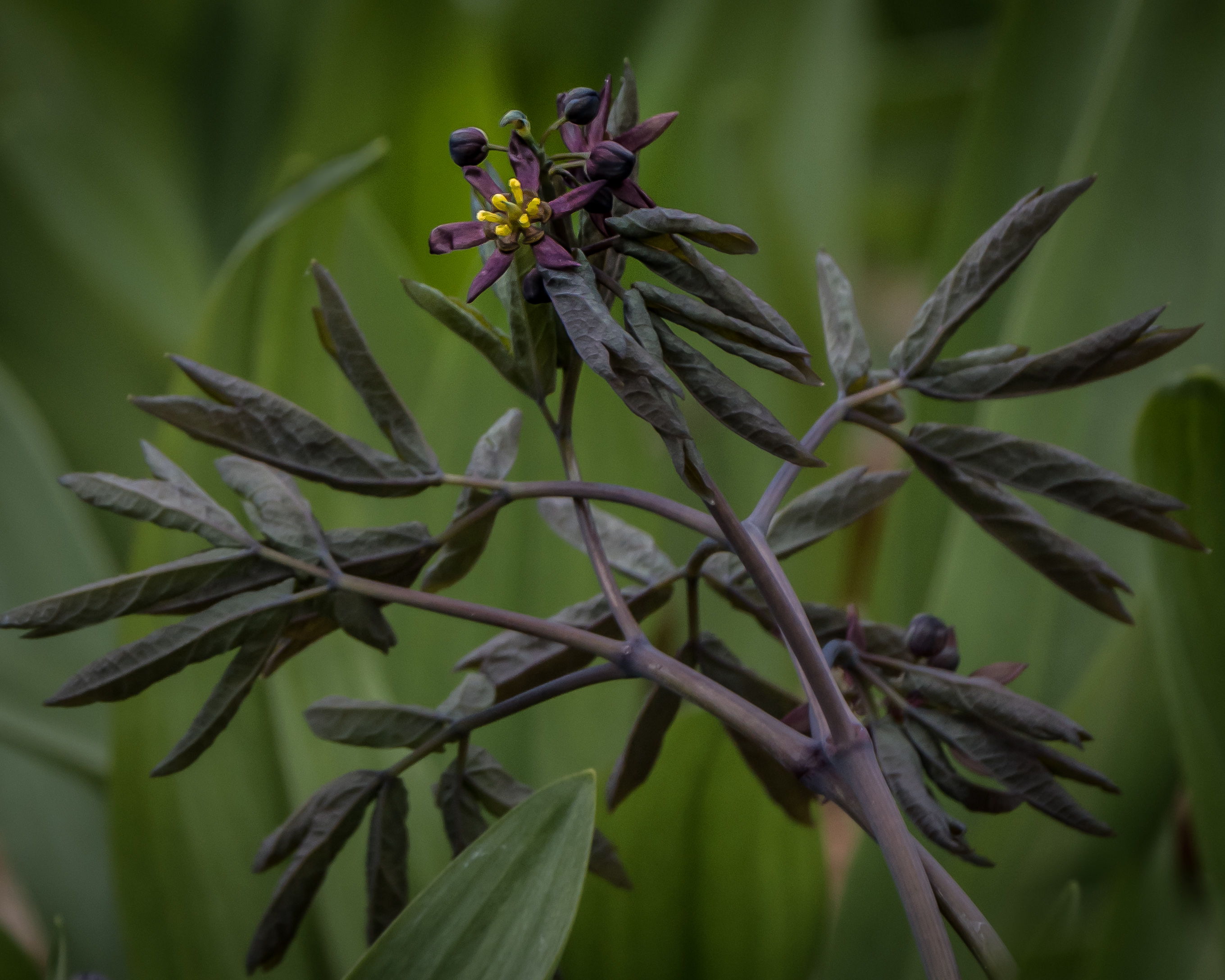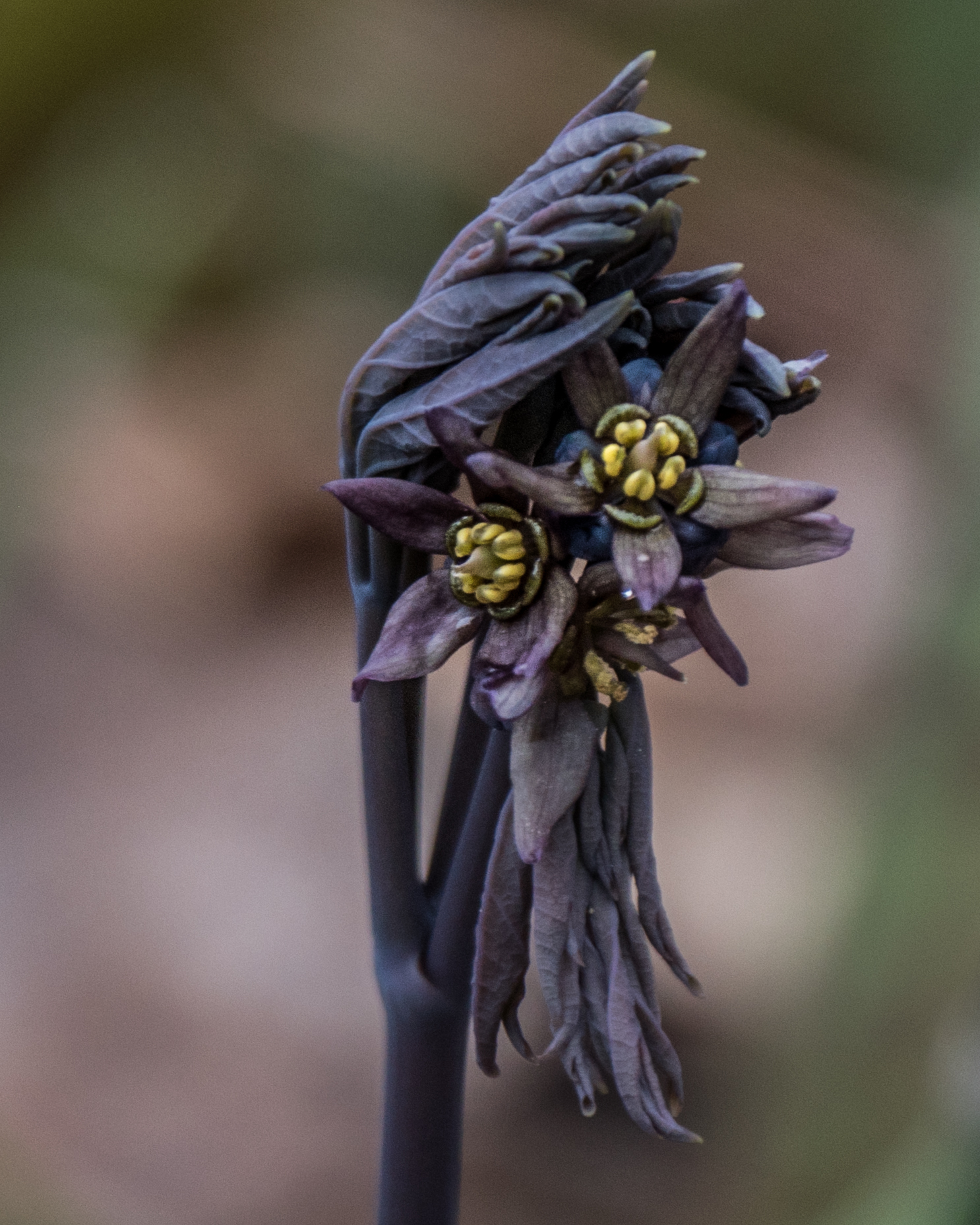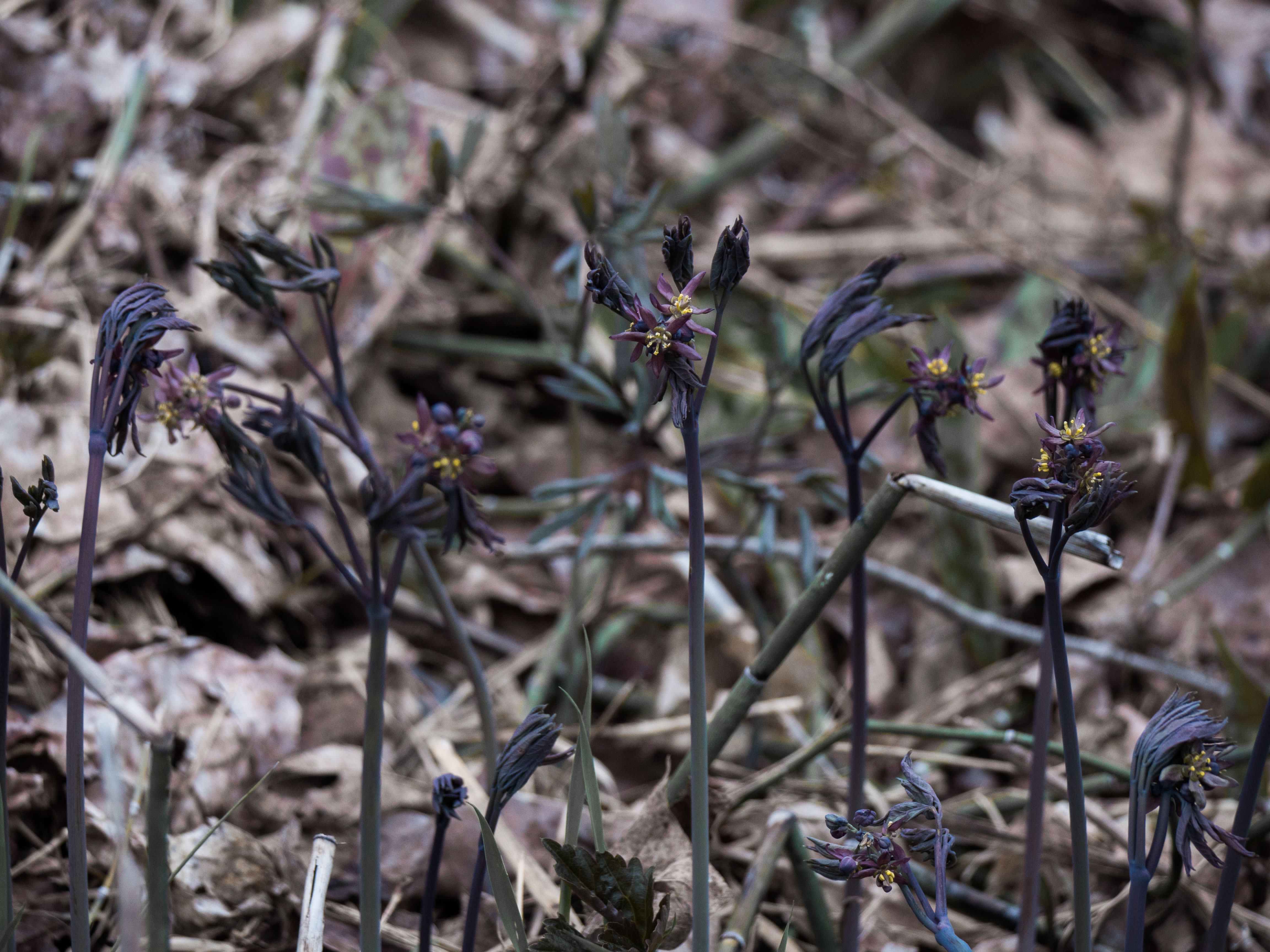 Also found in very rich soil, with Breeches, Wild Leeks (Ramp), Ostrich fern, Jack-in-the-Pulpit is this uncommon Blue Cohosh: