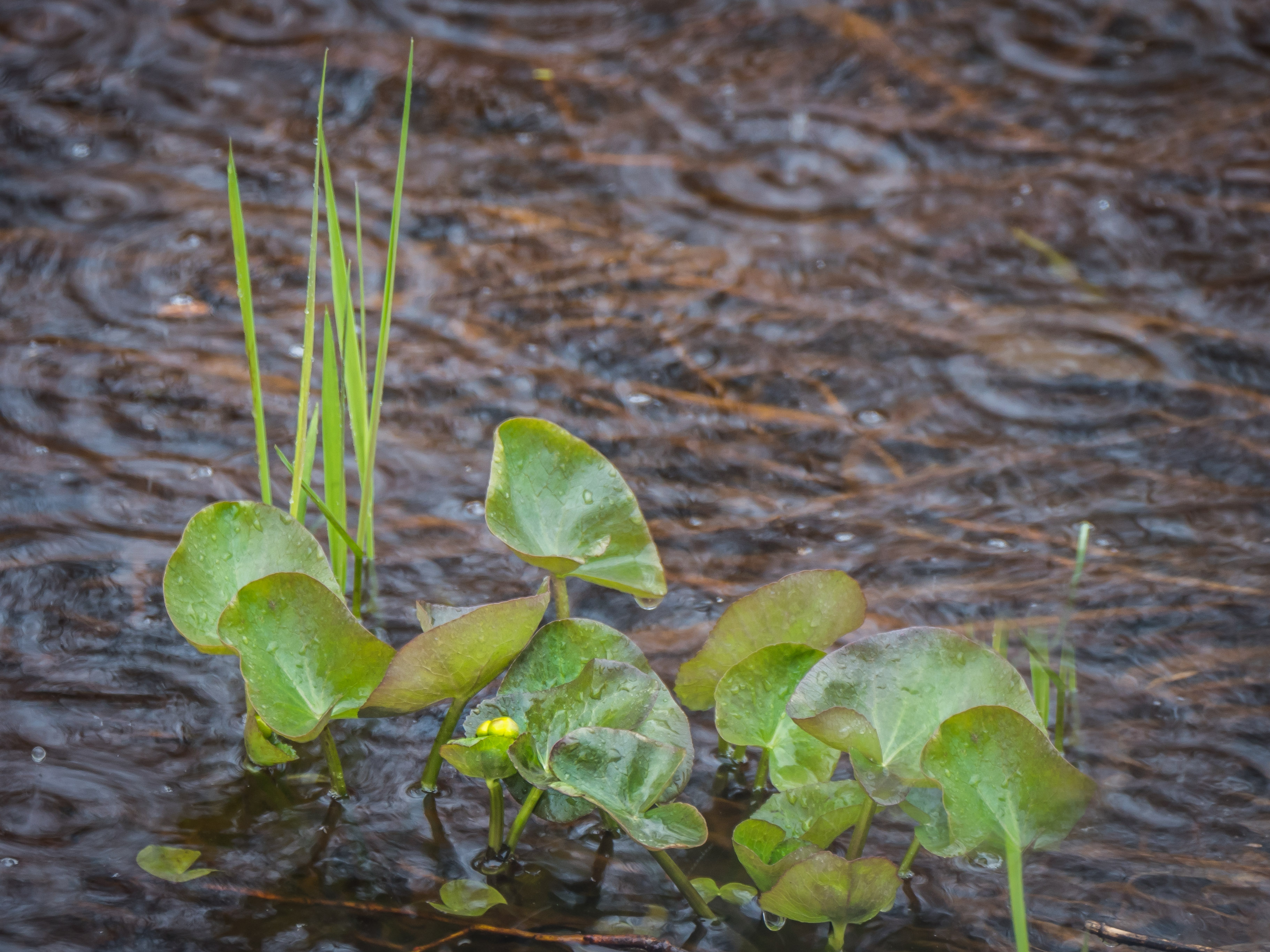 The Caltha palustris near Grundy Lake Provincial Park are ready to bloom in the rain.