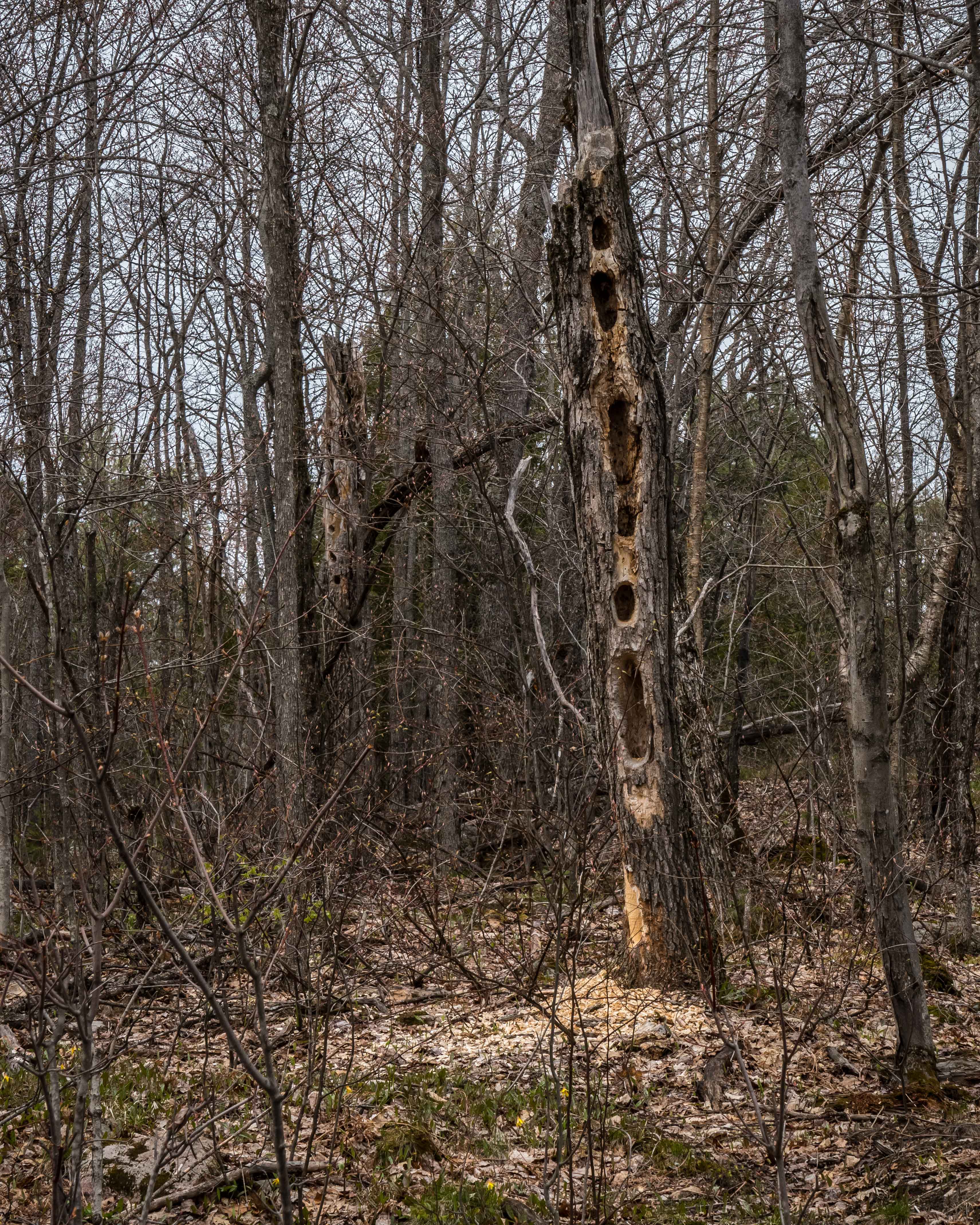 Woody woodpecker has been at work along Old Still River Road, where these Elm trees died about 5 years ago.