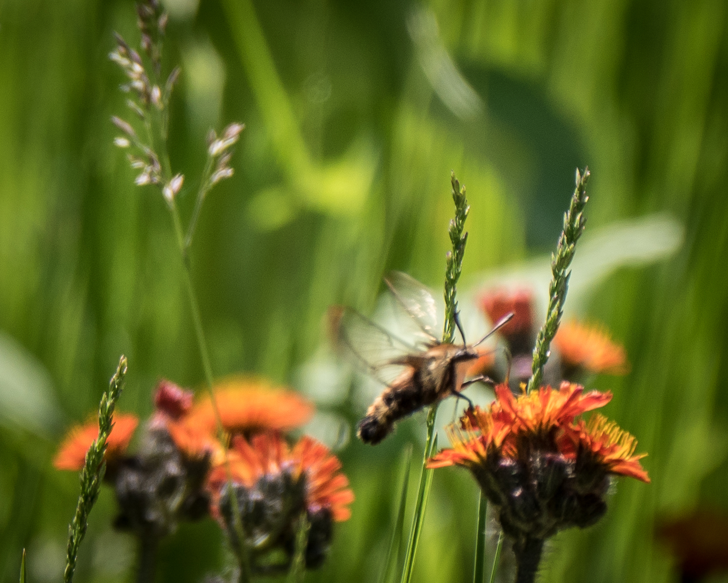 Hummingbird Clearwing Moth —- First time I’ve seen one on a Viper’s Bugloss.