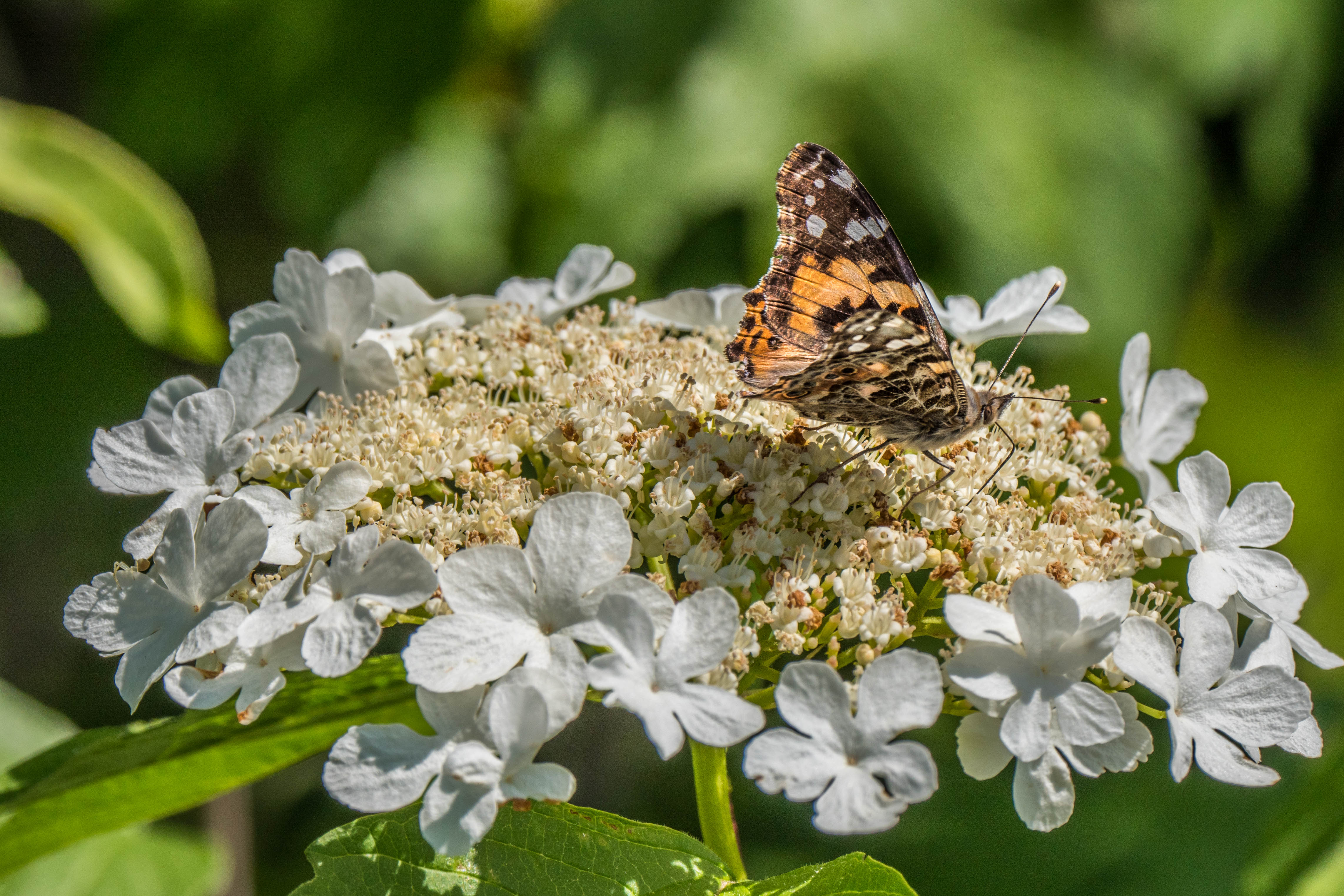 A crab spider (?) lying in wait on the top of a Cow Parsley blossom: