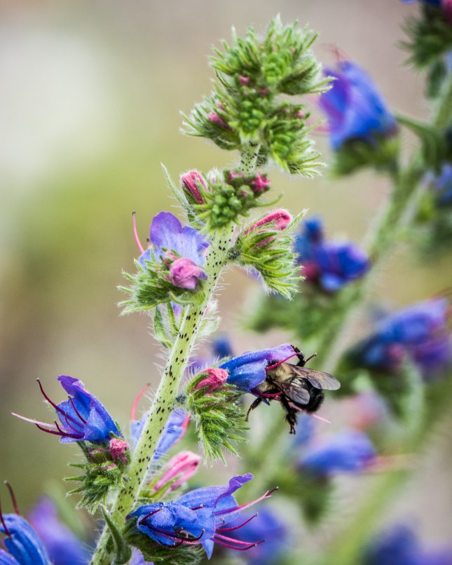 Another Bombus nectaring at a Viper’s Bugloss blossom.